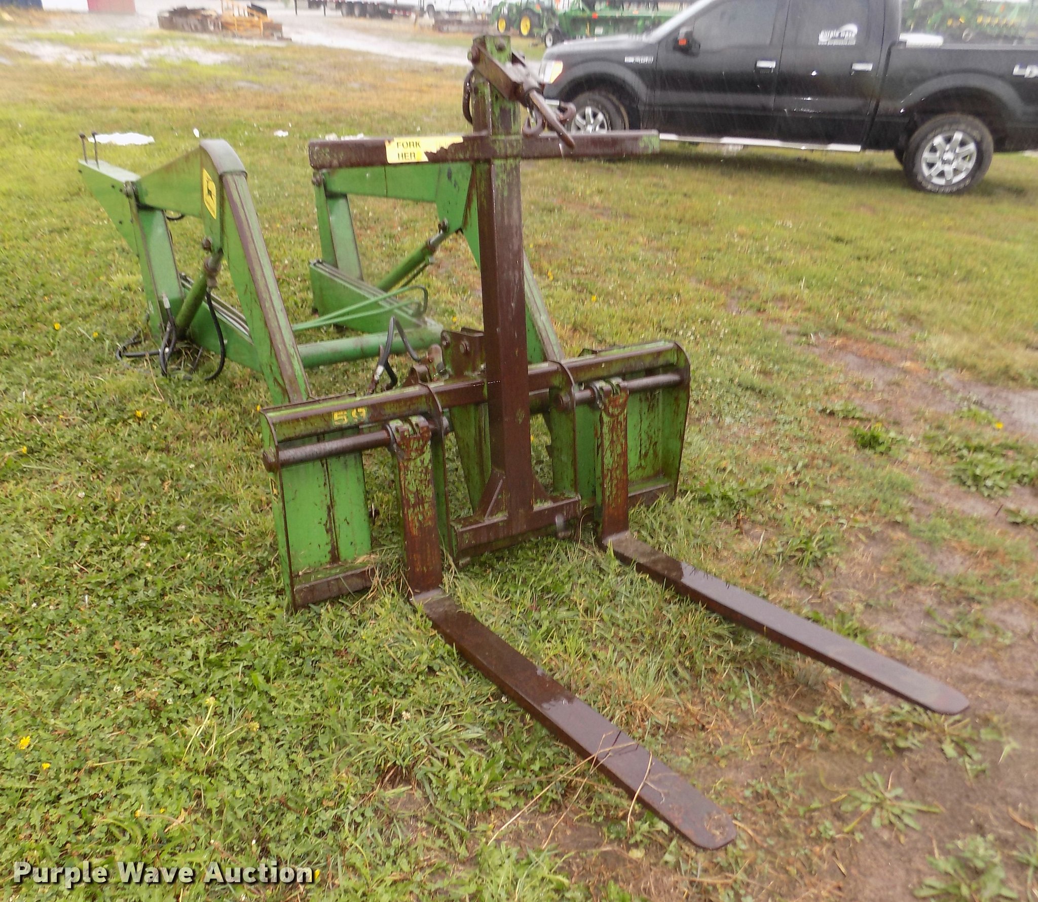 Purple Wave is selling a used Ag Tractor Loader or Attach. in Iowa. This item is a John Deere 48 loader with forklift/boom attachment with the following: 53"W backrest, Model 58, 5' extendable boom, 46" x 4"W forks, Two-lever controls, Unit# 9981
