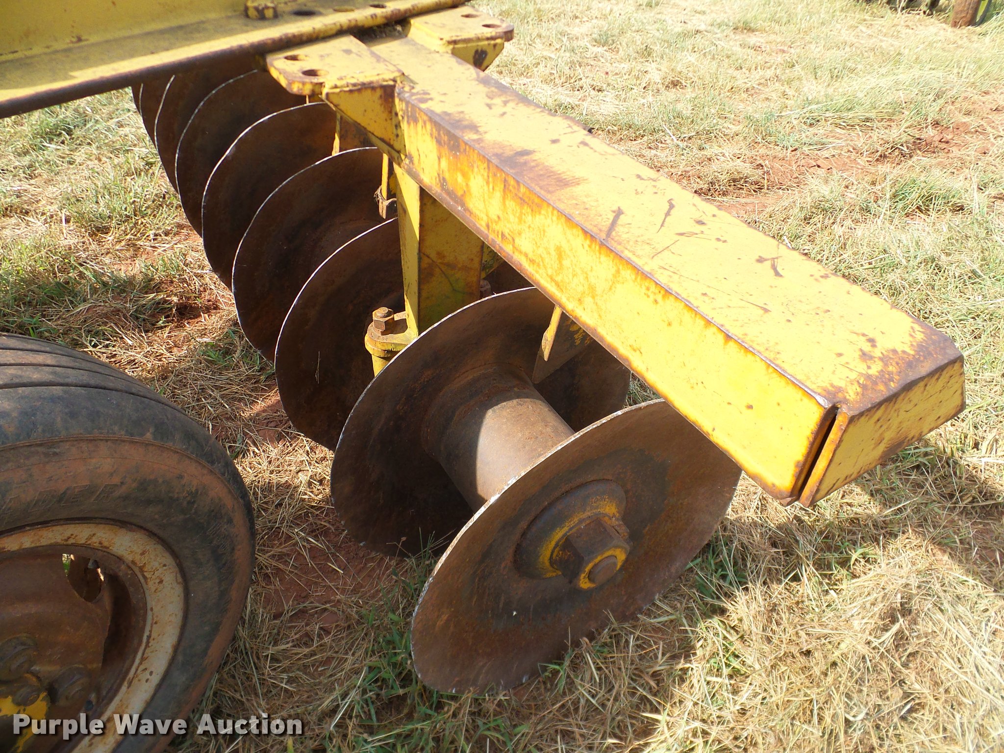 Rome TAW-20S-30 off-set disk. 10'W, 24" diameter blades, 12" spacing, Disk scrapers, Hydraulic lift, Slab hitch, 30x9.5-16 tires, Sale# 1805-KP, Serial 10TAW-29535. Oklahoma State University - Animal Science Farm Shop. 3098 W Virginia Ave. Stillwater, OK 74074