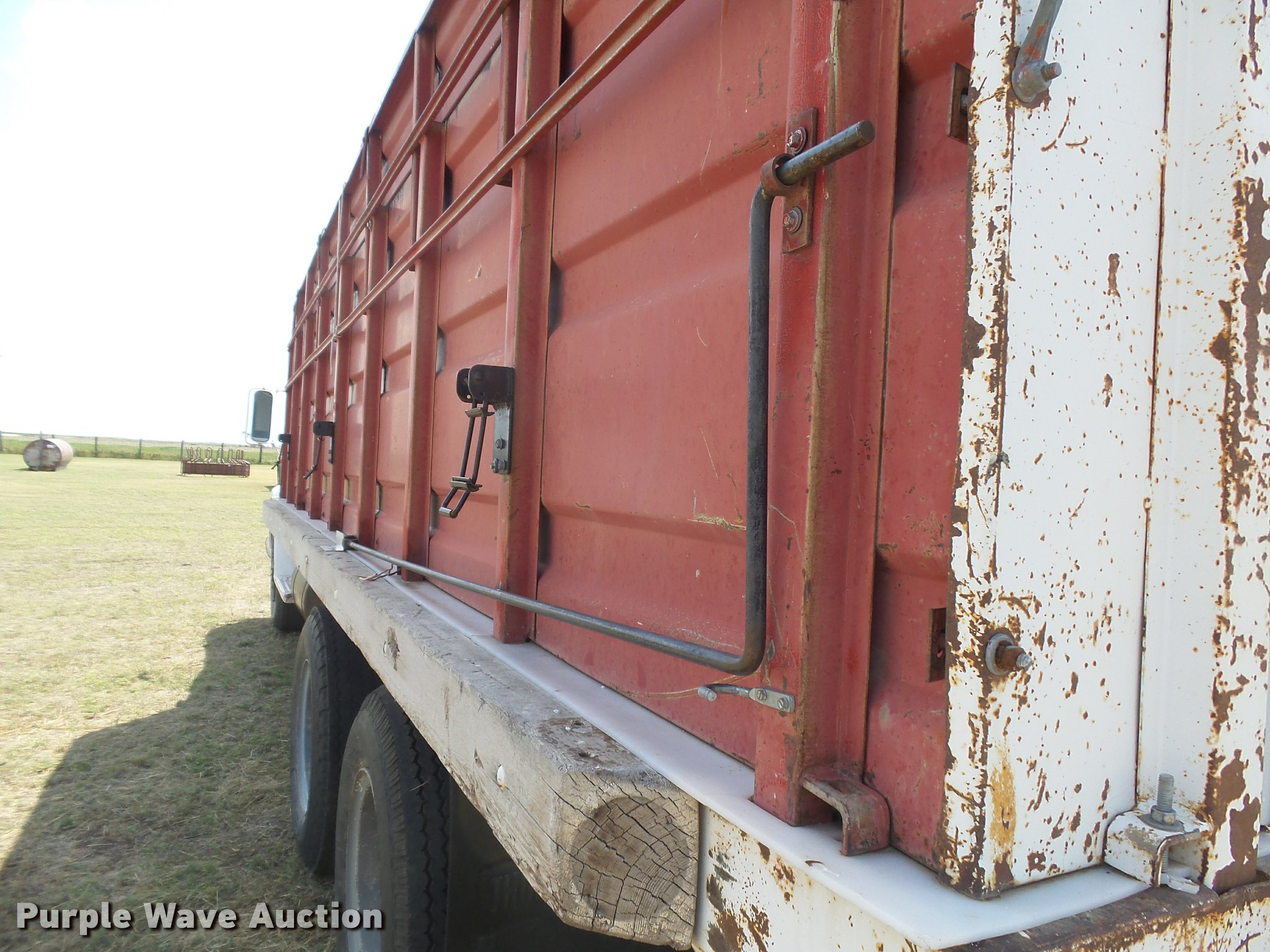 Purple Wave is selling a used Grain Truck in Kansas. This item is a 1968 Chevrolet C60 grain truck with the following: 46,965 miles on odometer, V8 gas engine, Five speed manual transmission, Two speed rear end, Tandem axle, Heat, AM, Suspension seat, PTO, Steel grain bed, 20'L x 96"W, 50" side height, Wood floor, Liner, Dual ram hoist, manual operated end gate, Roll tarp, Spring suspension, Air brakes, GVWR 24,000 lbs