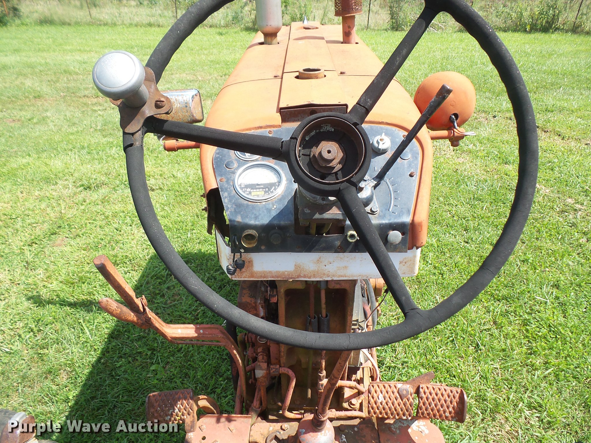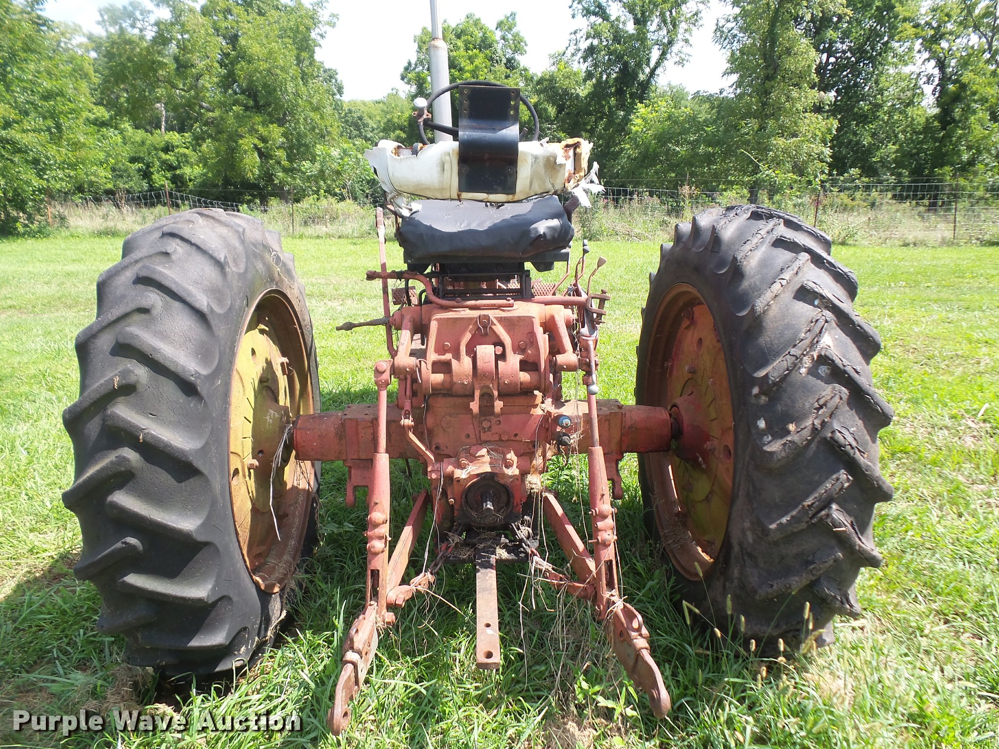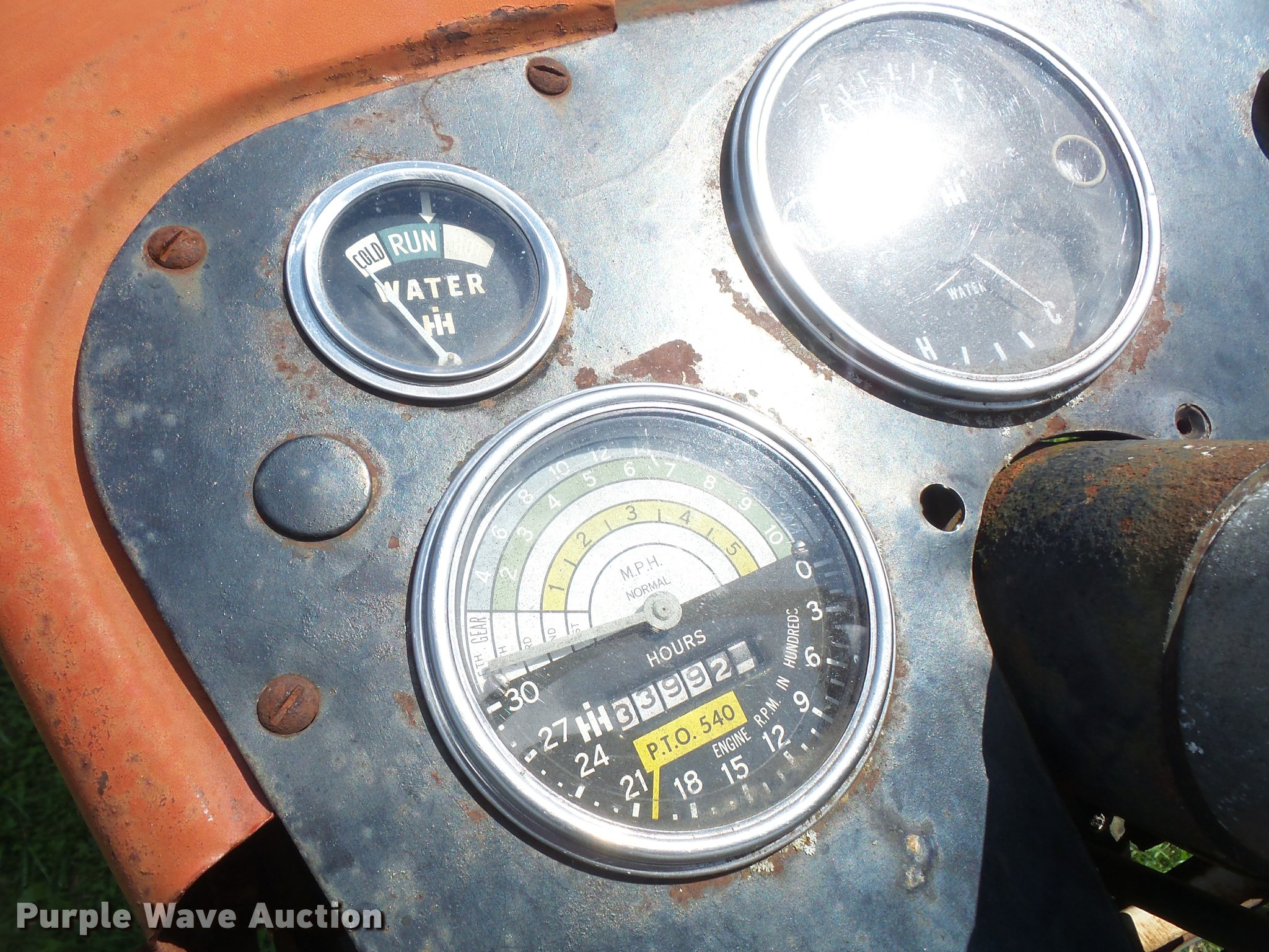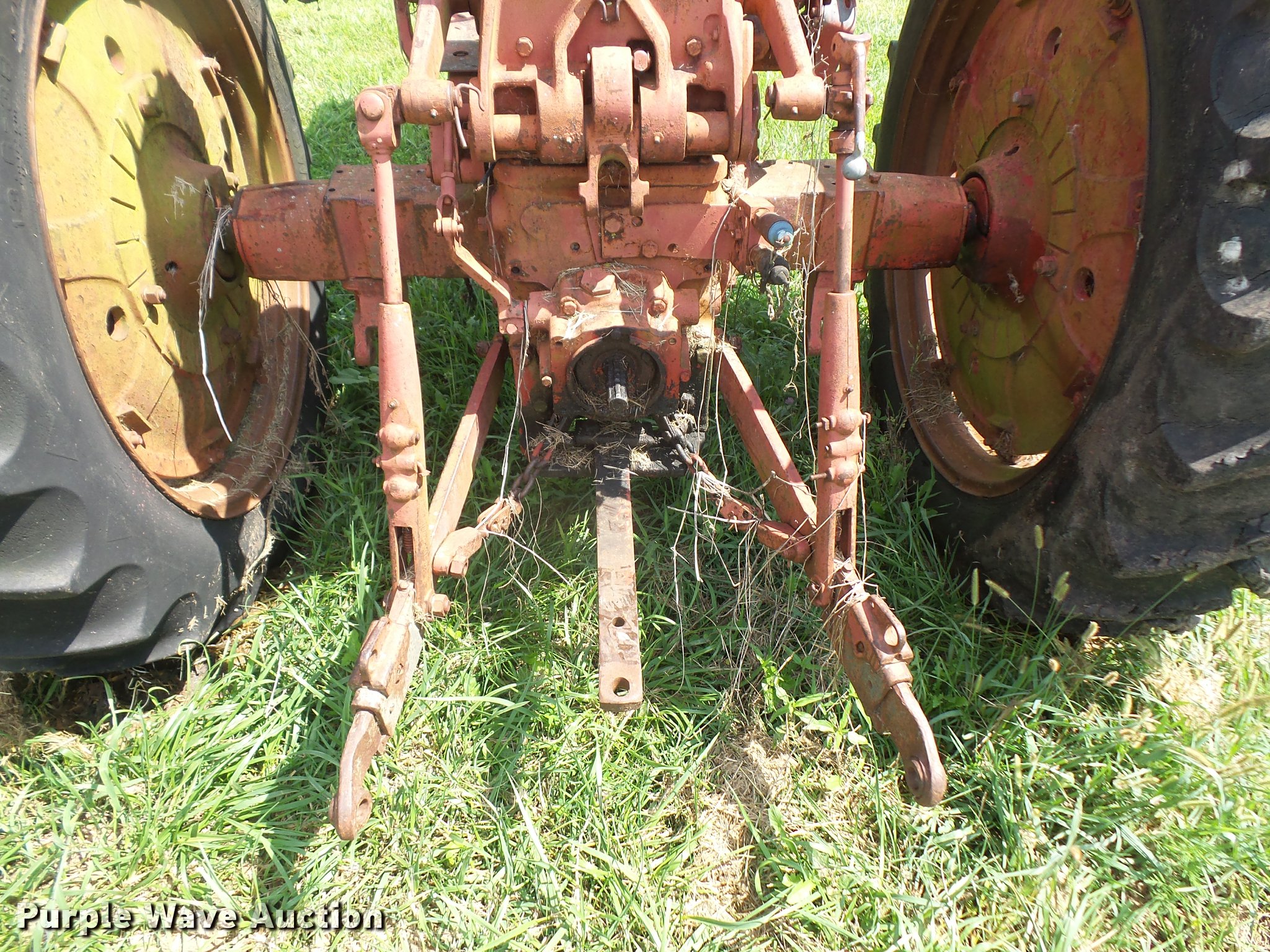 Purple Wave is selling a used Tractor in Kansas. This item is a 1965 Farmall 504 tractor with the following: 3,399 hours on meter, International 2.5L four cylinder gas engine, 46 HP, Torque amplifier transmission, 10F-2R gears, Three point, 540 PTO, Rear hydraulic remote set, 6.00-15 front tires, 13.6-38 rear tires, Additional tires and wheel, Left rear tire leaks air, Non-operational unit, Serial 10848