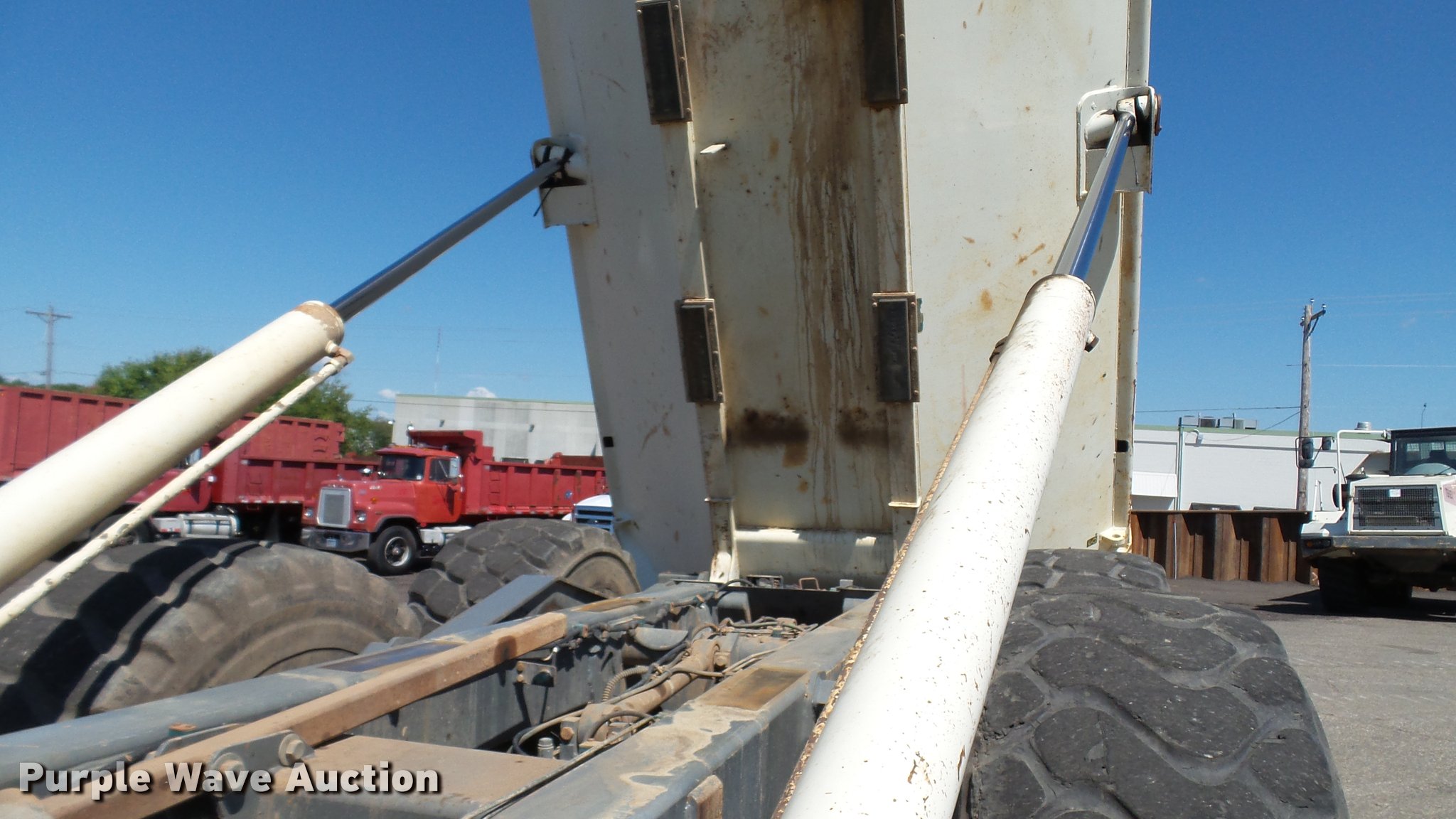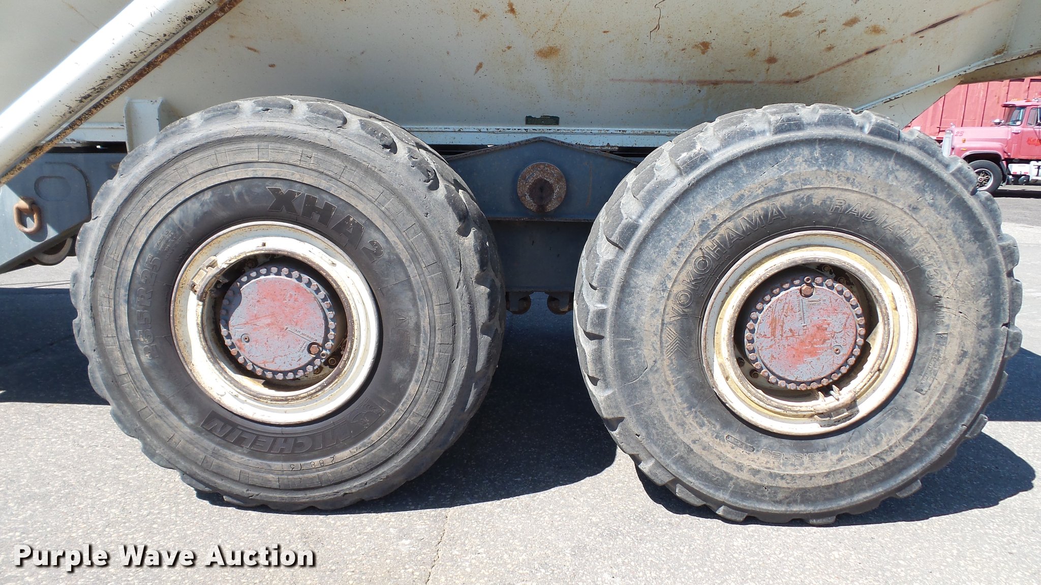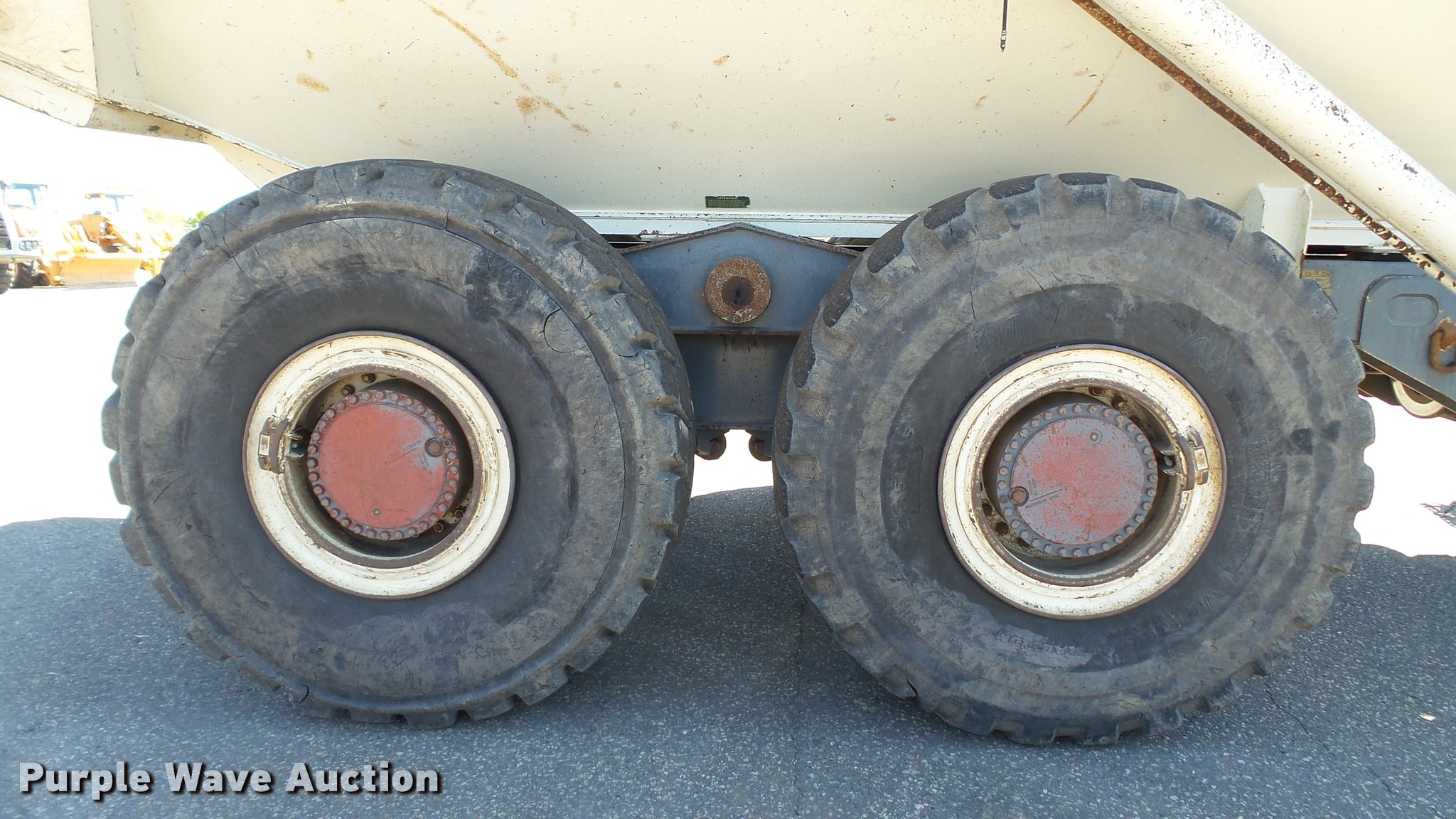 Purple Wave is selling a used Off Road Haul Truck in Minnesota. This item is a 2001 Terex TA35 haul truck with the following: 5,005 hours on meter, Detroit Diesel Series 60 11.1L six cylinder diesel engine, 350 HP, Serial 06R0617329, Automatic transmission, 6F-3R, Six wheel drive, Inter-axle differential lock, Tandem axle, AC and heat, Tilt, Suspension seat, Instructor seat, Backup alarm, Steel barrel bed, 18.5'L x 11'W, Dual ram hoist, Heated box, Front tow hooks, Work lights, Single fuel tank, Block heater, 18'4" wheelbase, Walking beam suspension, Hydraulic brakes, 26.5R25 tires, 70,548 lbs payload capacity