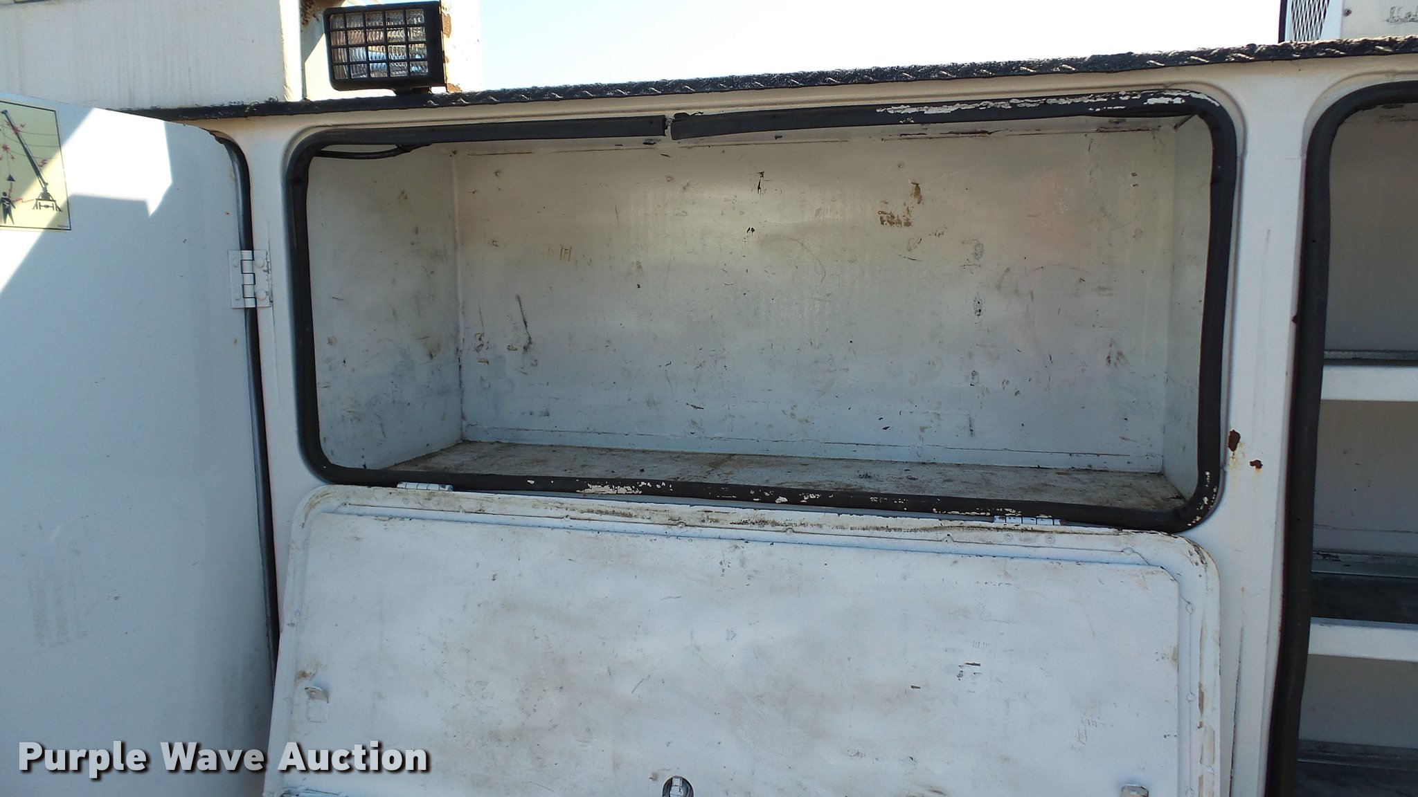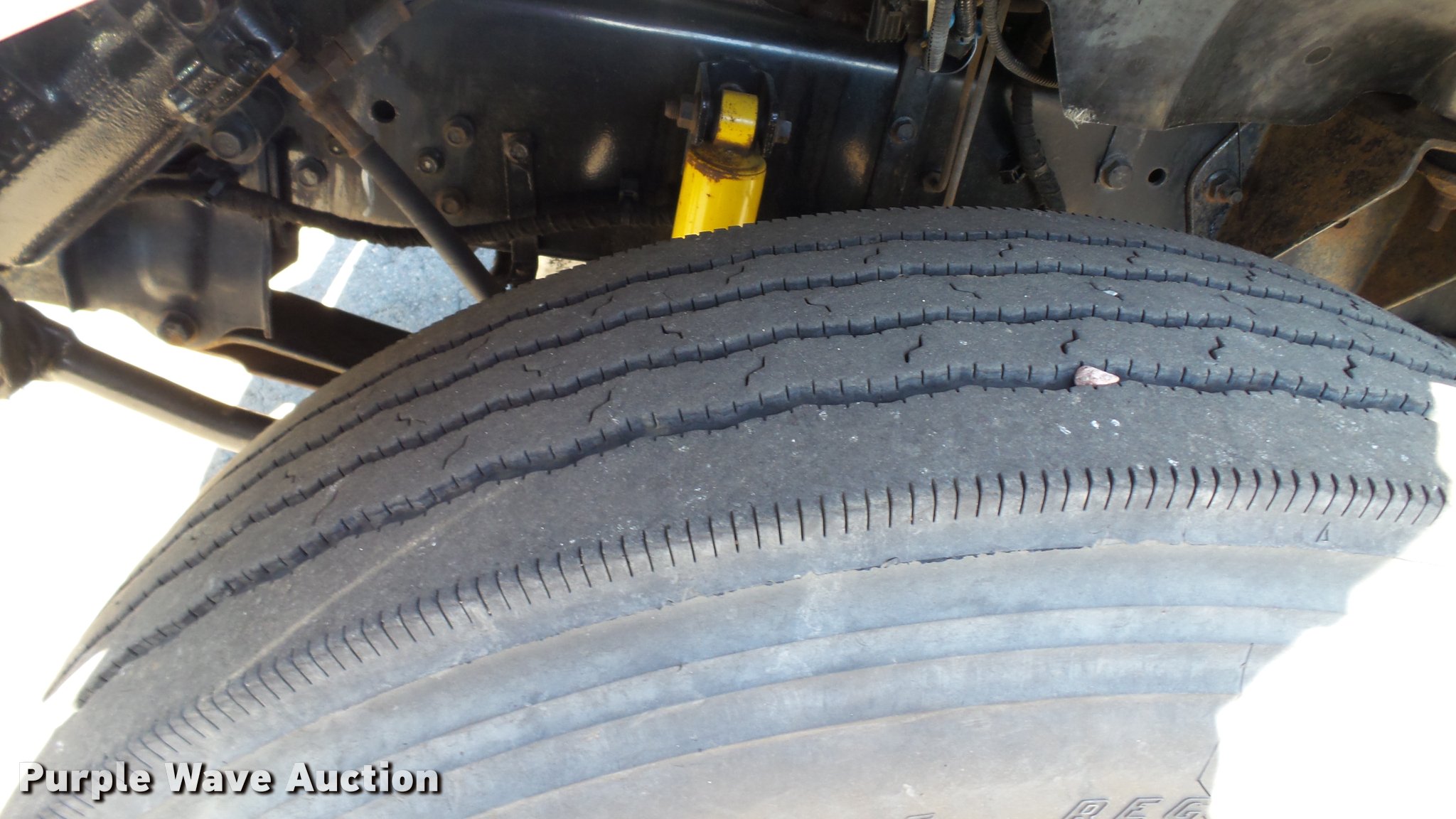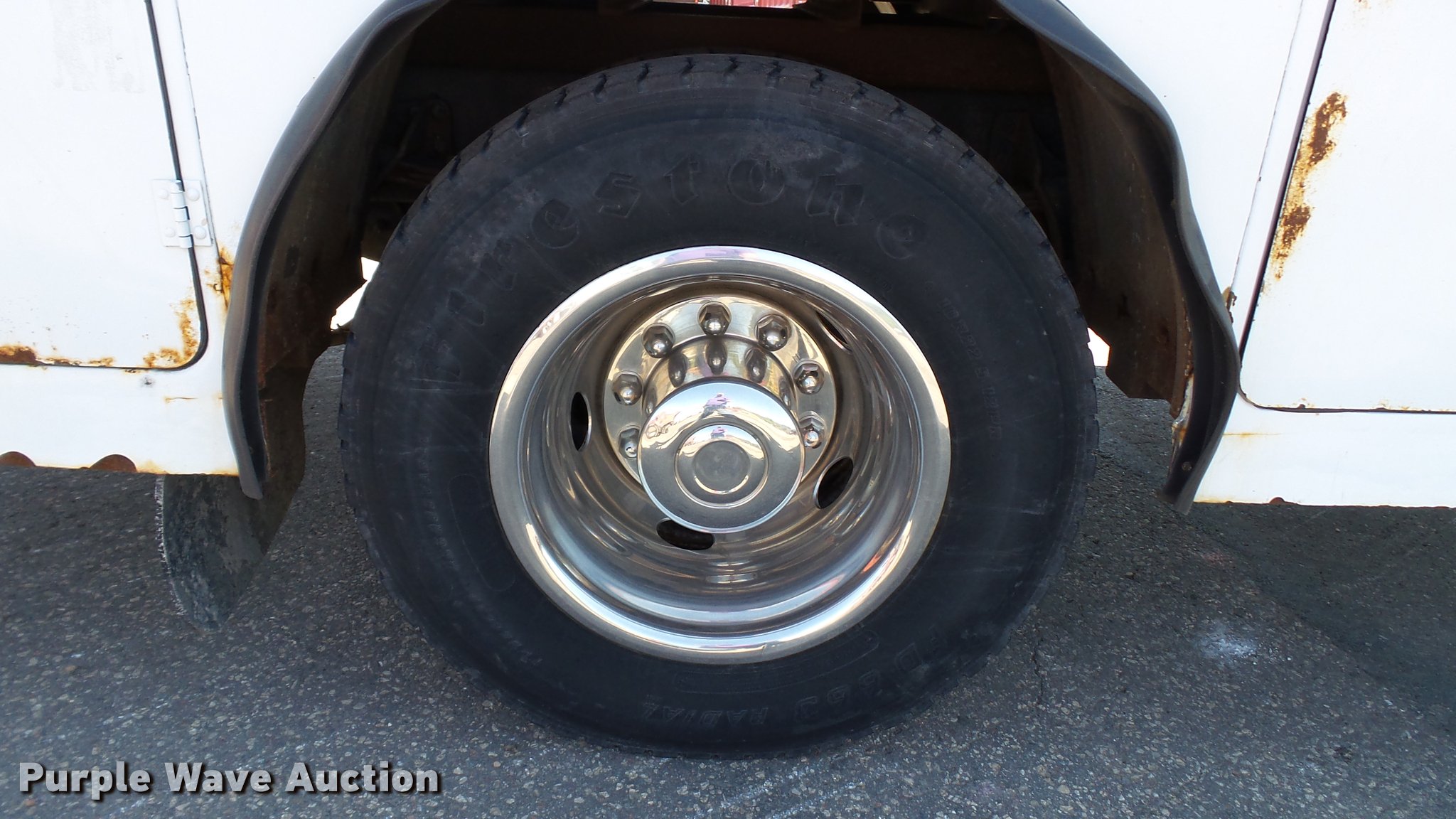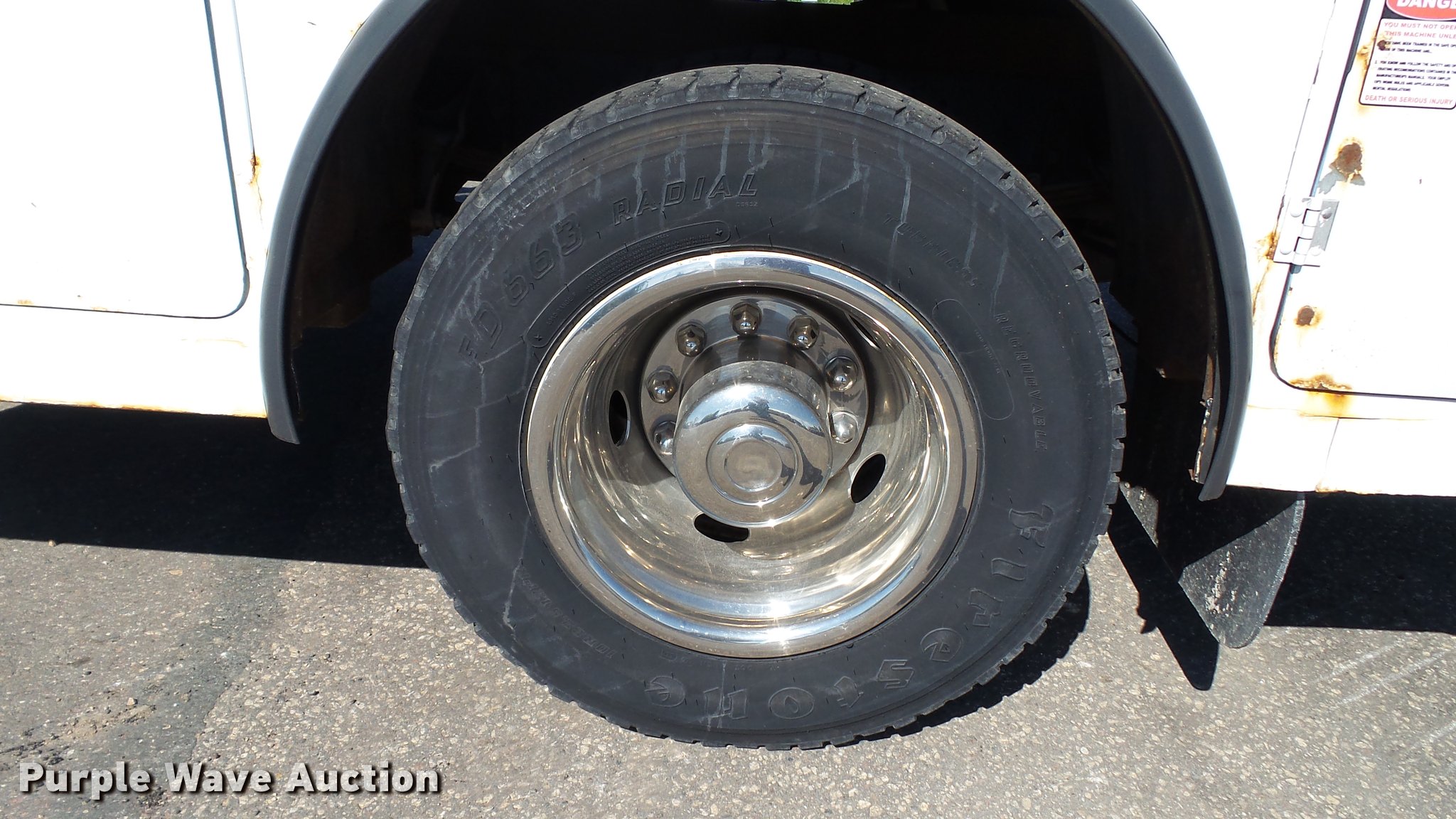 Purple Wave is selling a used Service Truck in Minnesota. This item is a 2005 Ford F650 Super Duty XLT service truck with crane with the following: 163,619 miles on odometer, International VT365 6.0L V8 turbo diesel engine, 230 HP, Serial 184559061, Automatic transmission, Single axle, AC and heat, Cruise, AM/FM/cassette, Power windows and locks, Heated mirrors, Beacon light, 11'L utility bed, Shelving, Enclosed body, Work lights, Bed liner, Torch bottle rack, IMT air compressor, Hose reel, IMT oil/lube system, Hydraulic fluid, IMT 315A crane, 17'9" boom length, 7,500 lbs maximum lift capacity, (2) outriggers,, Front tow hooks, Single fuel tank, Single exhaust stack, 508" wheelbase, Spring suspension, Hydraulic brakes, Firestone 10R22.5 tires, GVWR 25,999 lbs, FAWR 10,000 lbs, RAWR 17,500 lbs