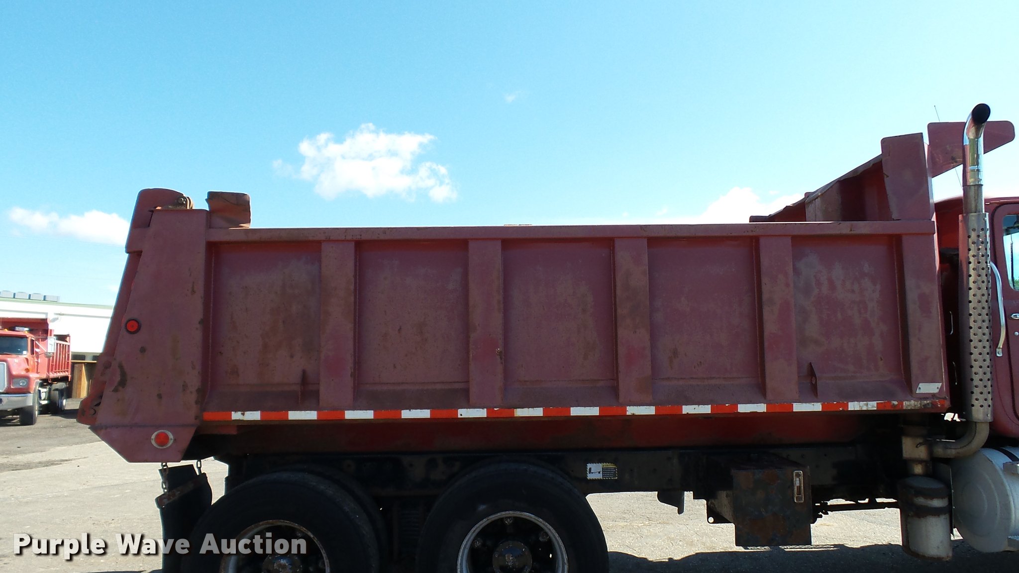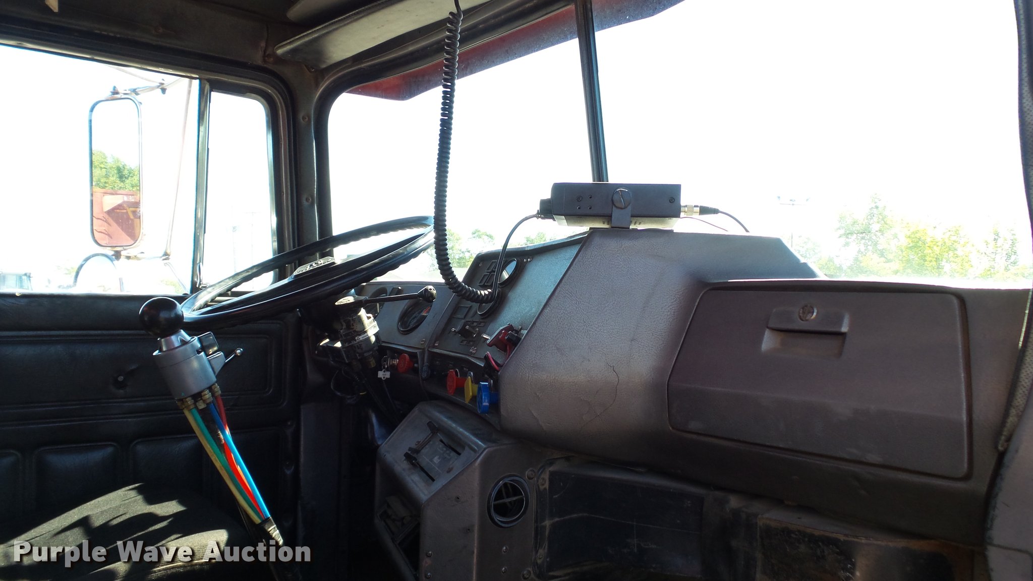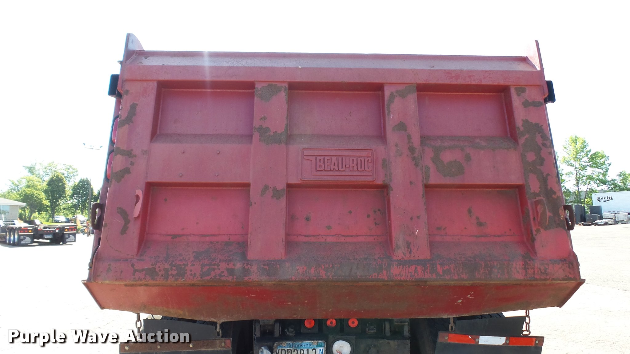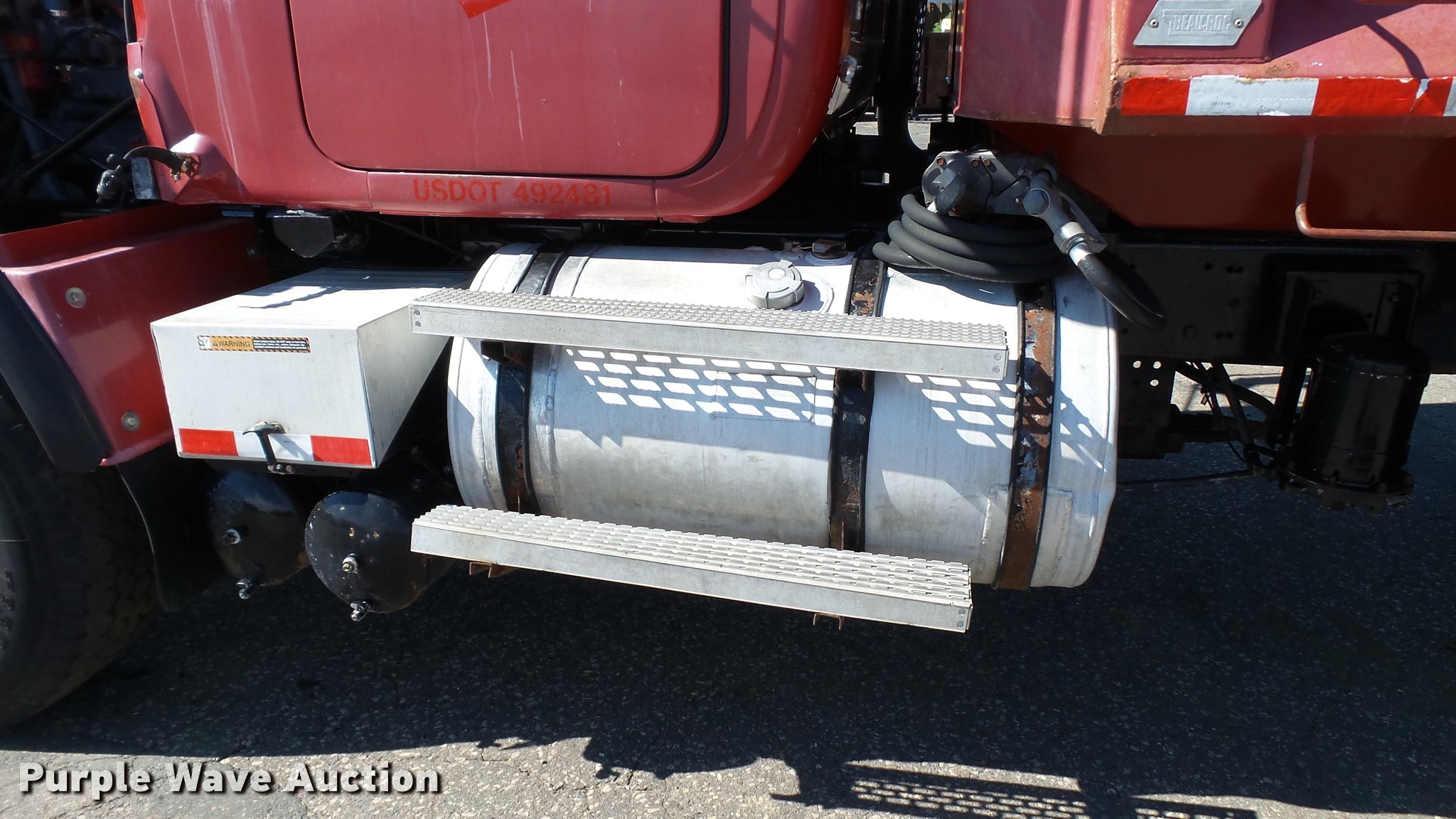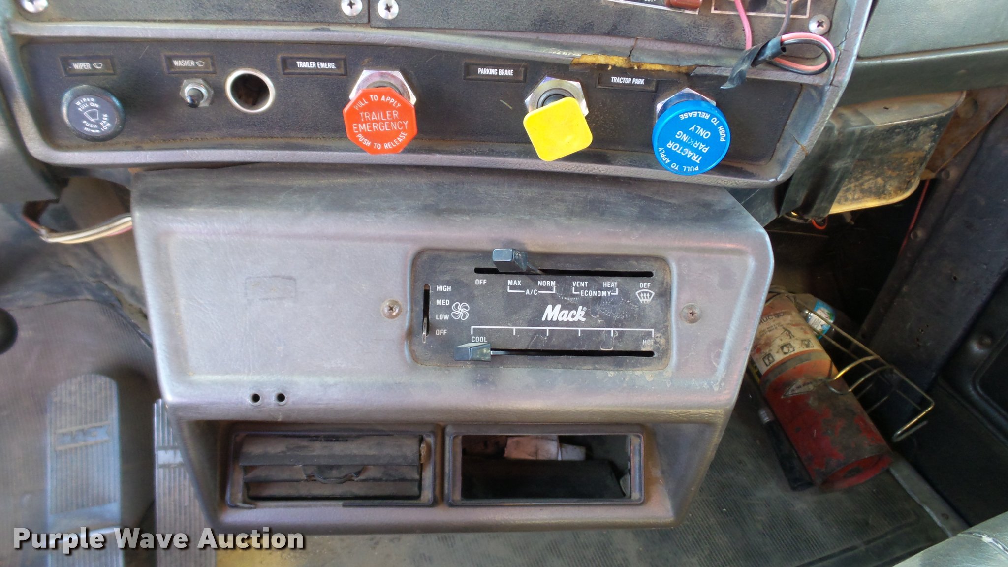 Purple Wave is selling a used Construction Dump Truck in Minnesota. This item is a 1987 Mack RS686LS dump truck with the following: 111,800 miles on odometer, 767 hours on meter, Mack EM6-300 six cylinder turbo diesel engine, 300 HP, 7H-1738, speed manual transmission, Tandem axle, Inter-axle differential lock, AC and heat, AM/FM/CD, Block heater, Exterior visor, PTO, Beav-Roc LTT-16-44-48 steel dump bed, 16'L x 98"W, 36" side height, Single ram hoist, Air operated end gate, Dual fuel tanks, Driver's side fuel tank equipped for off road diesel, Electric fuel pump, Hose, Nozzle,, Pintle hitch, Trailer wiring, 17'9" wheelbase, Camelback suspension, Air brakes, 385/65R22.5 front tires, 11R22.5 rear tires