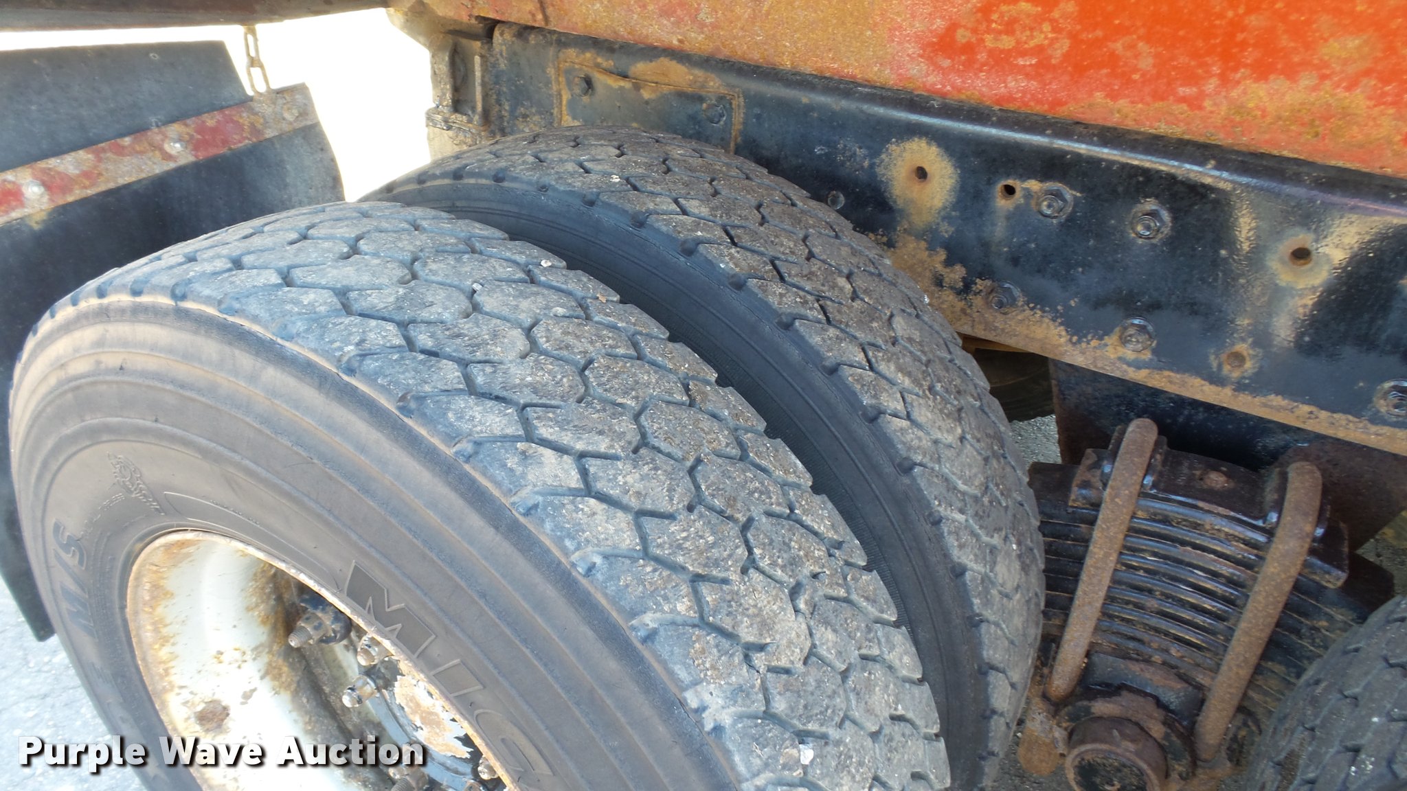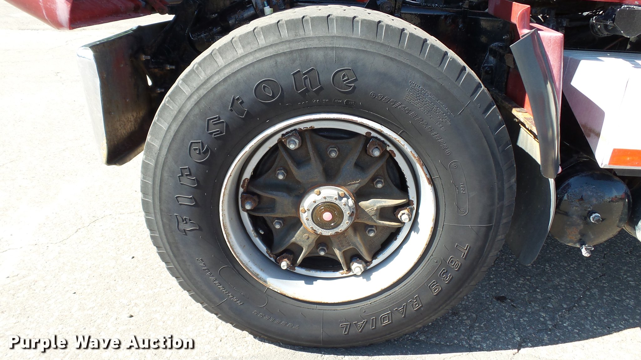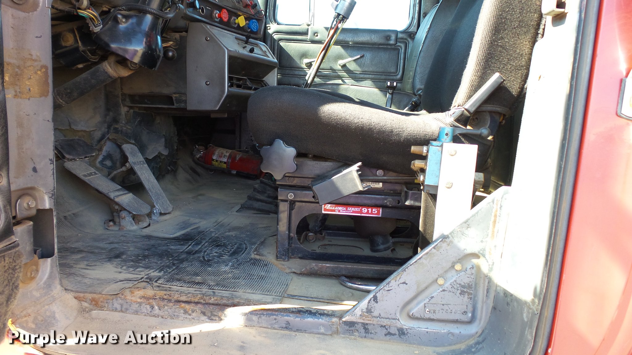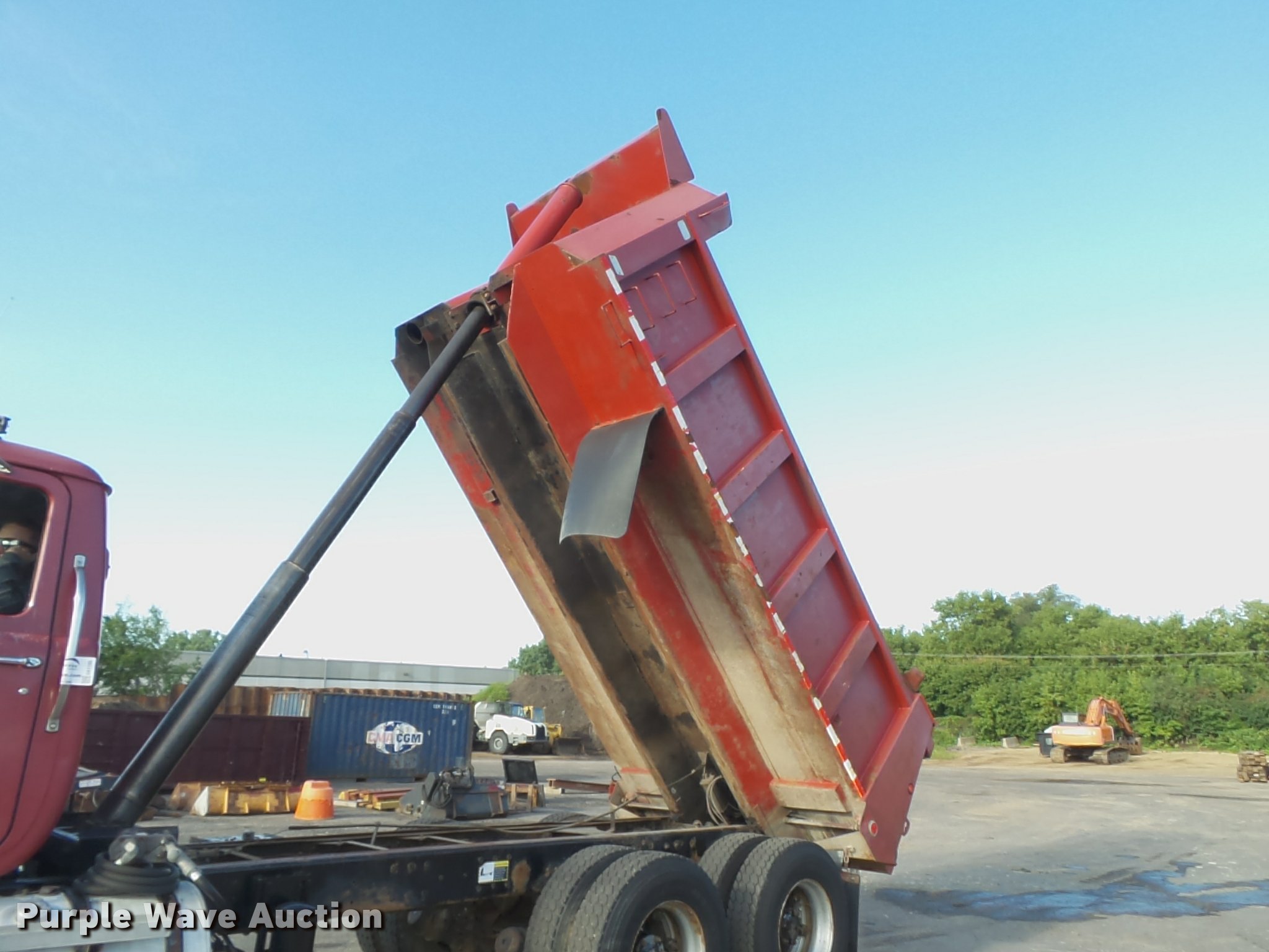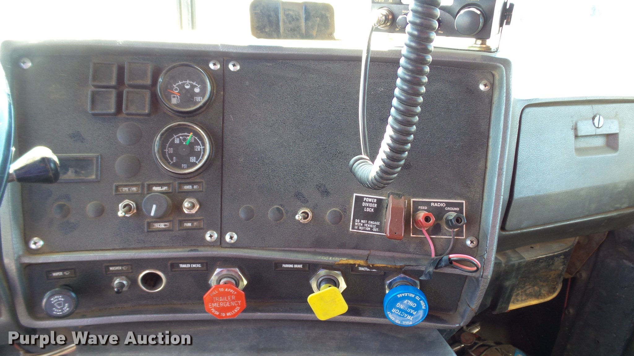 Purple Wave is selling a used Construction Dump Truck in Minnesota. This item is a 1987 Mack RS686LS dump truck with the following: 111,800 miles on odometer, 767 hours on meter, Mack EM6-300 six cylinder turbo diesel engine, 300 HP, 7H-1738, speed manual transmission, Tandem axle, Inter-axle differential lock, AC and heat, AM/FM/CD, Block heater, Exterior visor, PTO, Beav-Roc LTT-16-44-48 steel dump bed, 16'L x 98"W, 36" side height, Single ram hoist, Air operated end gate, Dual fuel tanks, Driver's side fuel tank equipped for off road diesel, Electric fuel pump, Hose, Nozzle,, Pintle hitch, Trailer wiring, 17'9" wheelbase, Camelback suspension, Air brakes, 385/65R22.5 front tires, 11R22.5 rear tires