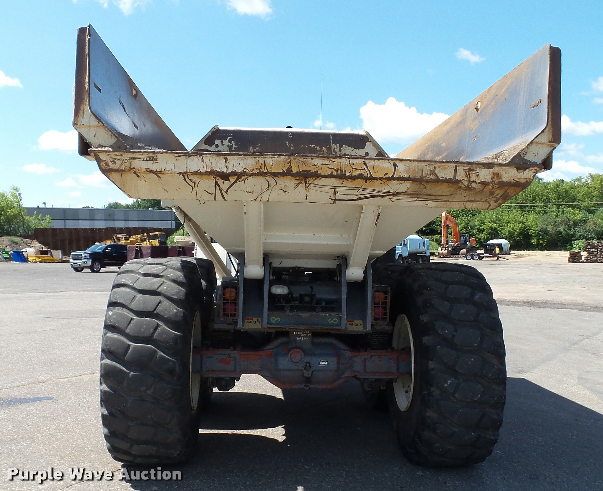 2007 Terex TA30 haul truck. 33,044 miles on odometer, 8,193 hours on meter, Cummins M11 10.8L L6 turbo diesel engine 350 HP, Serial 35196931, Automatic transmission 6F-3R, Six wheel drive, Tandem axle, AC and heat, AM/FM/CD, Suspension seat, Instructor seat, Backup alarm, Steel barrel bed 17'L x 9.5'W, Dual ram hoist, Heated box, Block heater, Single fuel tank, Walking beam suspension, Hydraulic brakes, Bridestone 23.5R25 tires, 49,573 unladen weight, 61,730 lbs maximum payload capacity, Mirror cracked, Serial A8941469. Kevitt Excavating LLC - Open inspection Sept. 6. 3335 Pennsylvania Ave N. Crystal, MN 55427