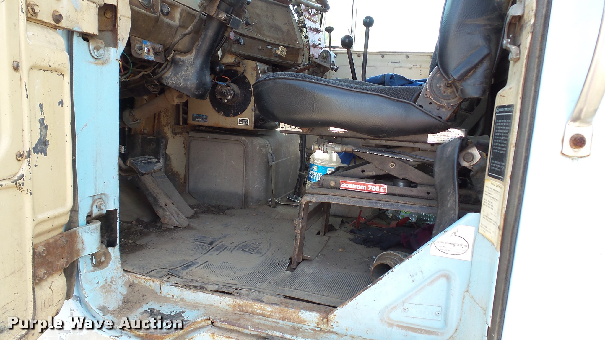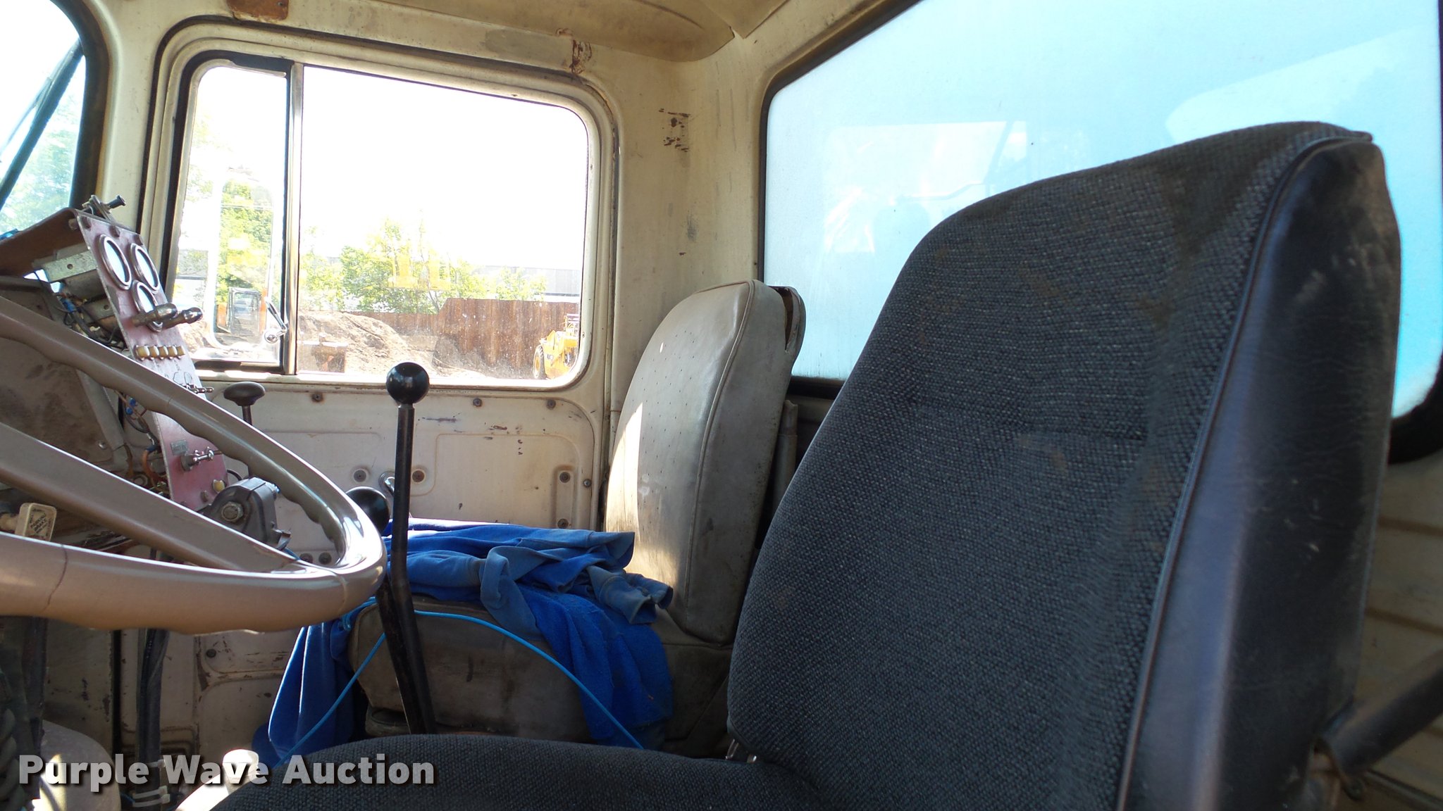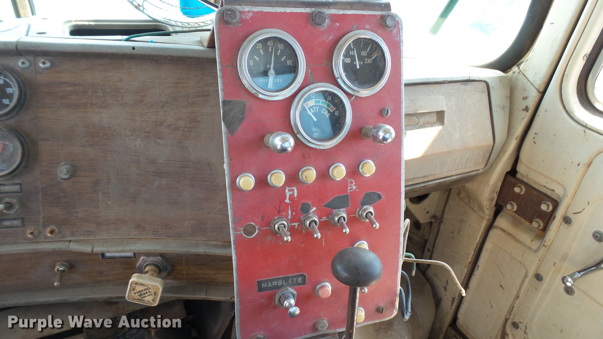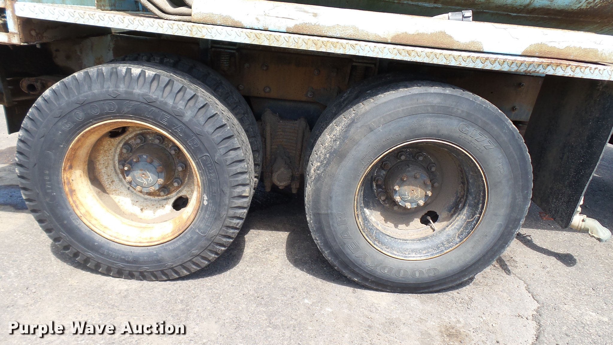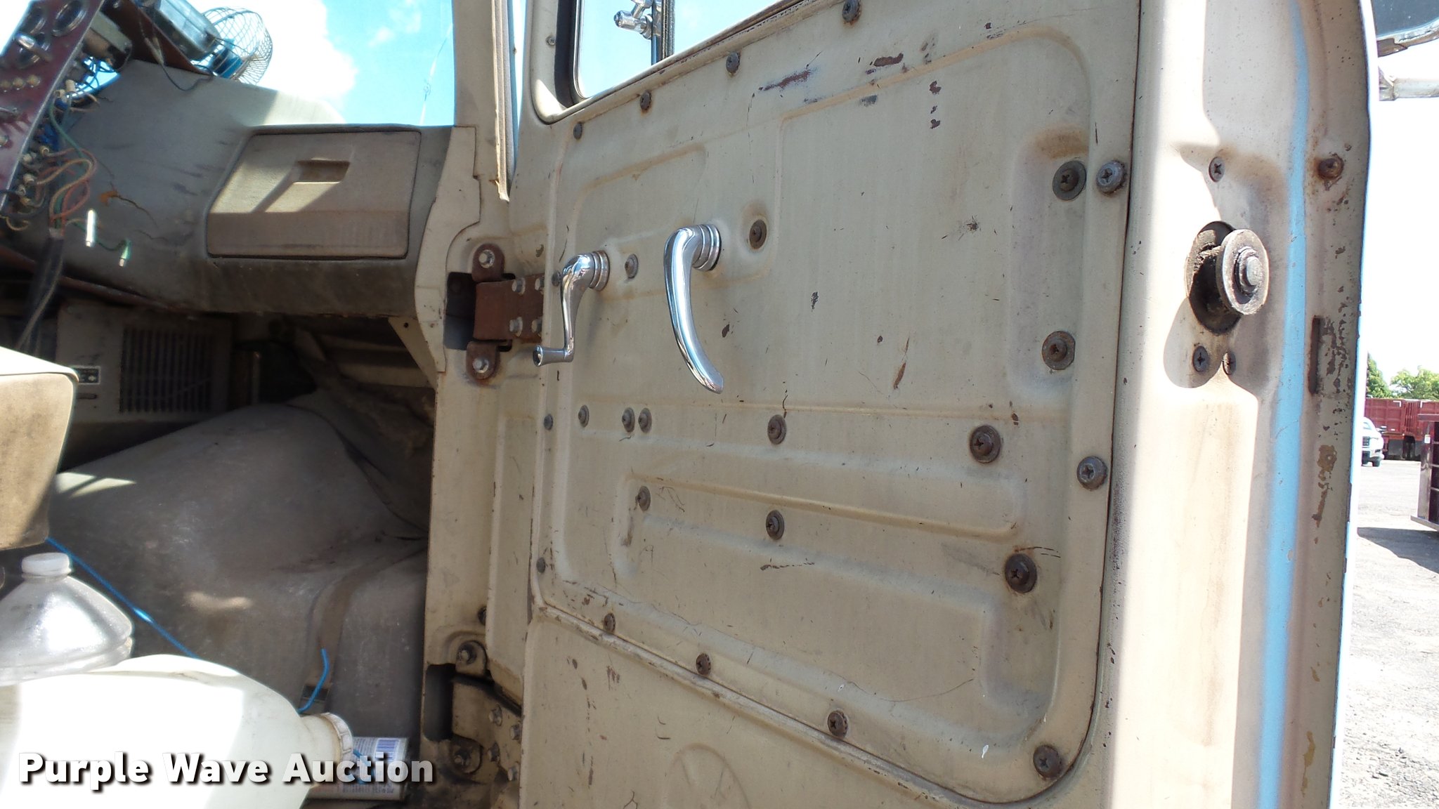 Purple Wave is selling a used Tank Truck or Water Truck in Minnesota. This item is a 1974 Mack tank truck with the following: 2,124 miles on odometer, Six cylinder turbo diesel engine, 10 speed manual transmission, Tandem axle, Heat, Air suspension seat, PTO, Beacon light, 13'L tank, Front, side, and rear discharge, 3" rear discharge, 3" rear outlet, Top fill, Six cylinder gas deck engine, 1,320 hours on meter, Battery dead, Single fuel tank, Single exhaust stack, 16'9" wheelbase, Camelback suspension, Air brakes, 12.00-20 front tires, 11R22.5 rear tires, GVWR 48,000 lbs, FAWR 14,000 lbs, IAWR 17,000 lbs, RAWR 17,000 lbs, Vehicle has not been used in approximately eight years, Unknown operating condition, Non-operational air compressor