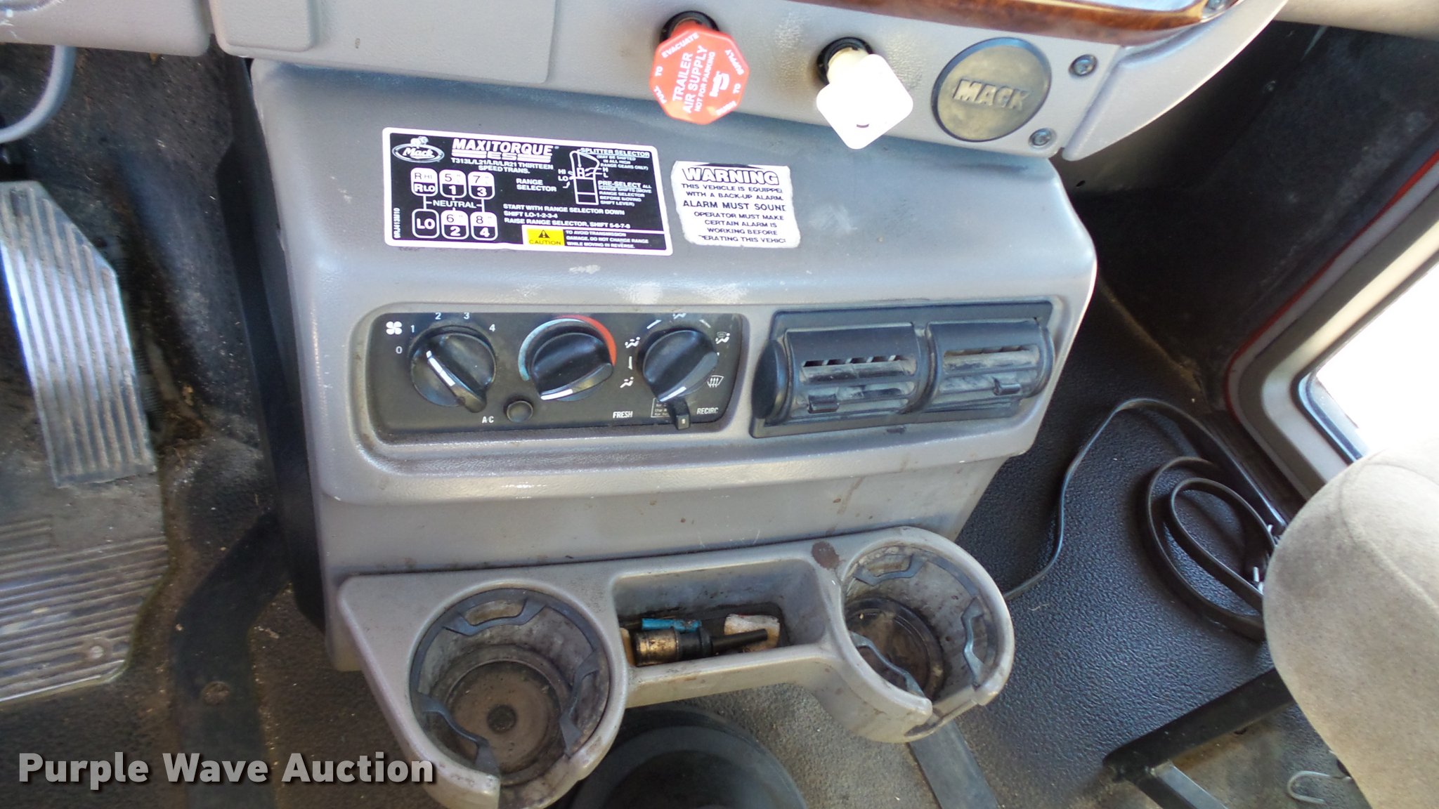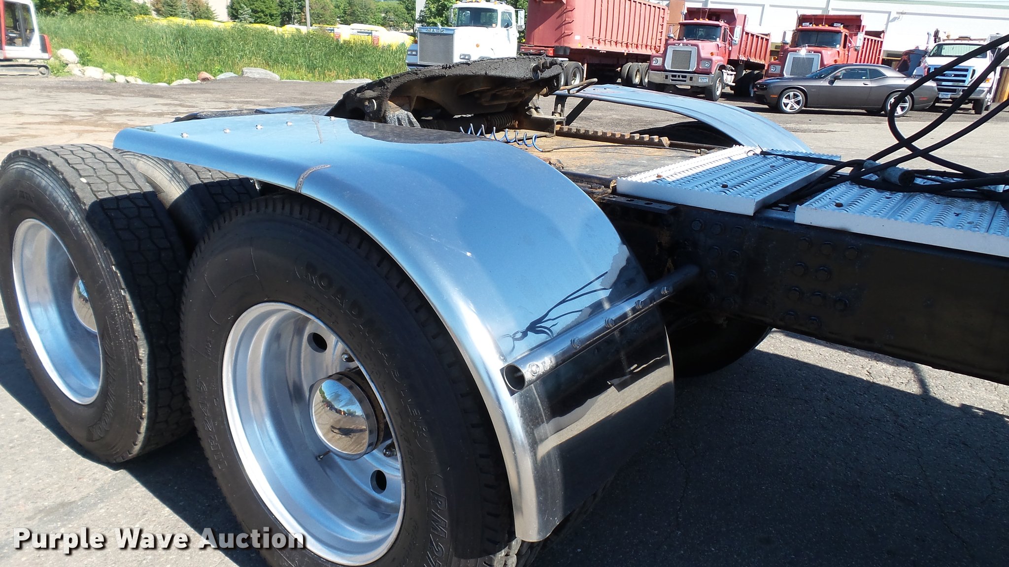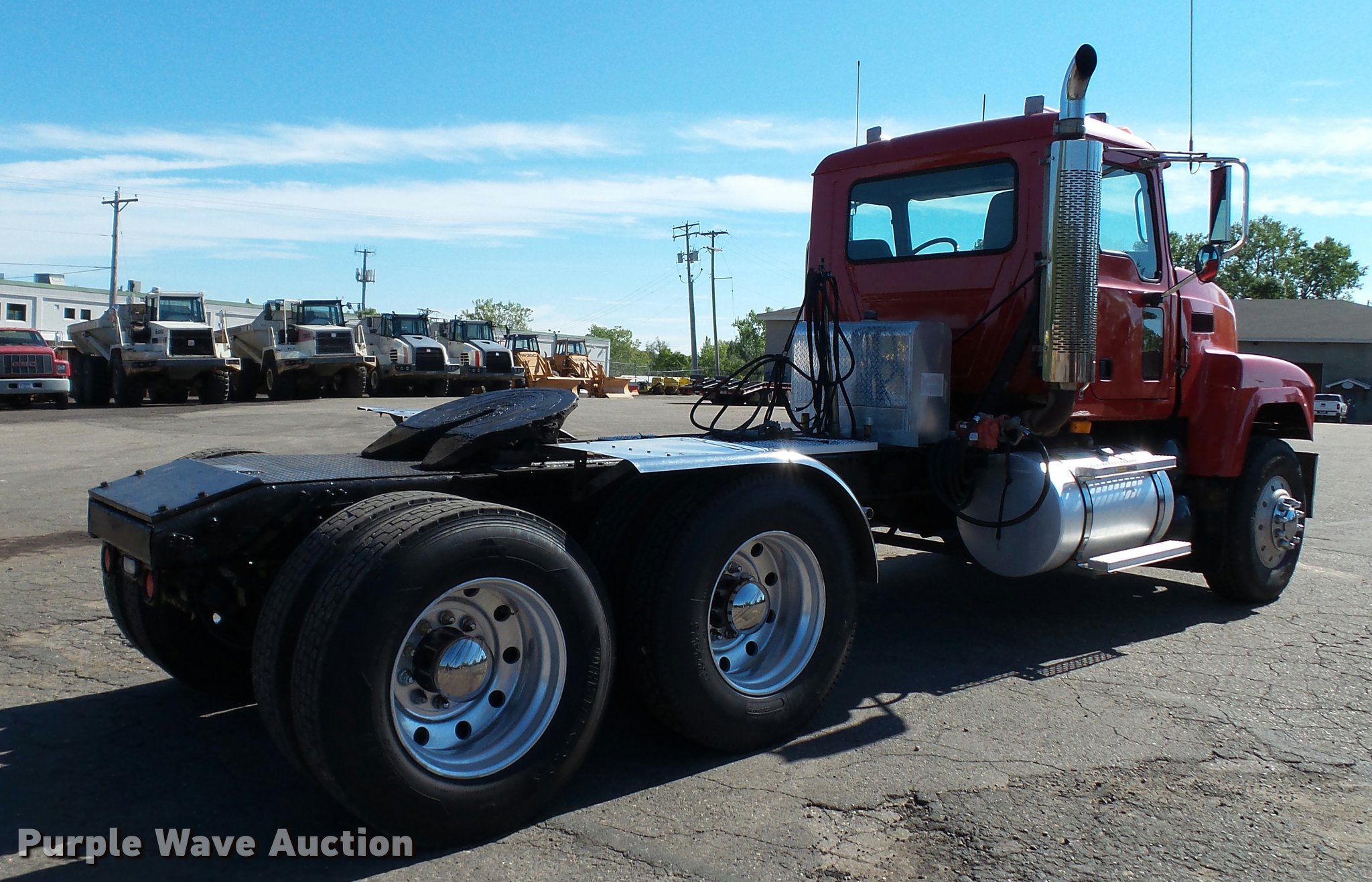 Purple Wave is selling a used Truck Tractor in Minnesota. This item is a 2005 Mack CHN613 semi truck with the following: 251,540 miles on odometer, 11,947 hours on meter, Mack E7 12.0L L6 turbo diesel engine, 427 HP, Serial 23579YP, Maxitorque 13 speed manual transmission, Tandem axle, Inter-axle differential lock, AC and heat, Tilt, Cruise, AM/FM/CD, Heated mirrors, Air suspension seat, Air ride cab, Backup alarm, Block heater, Front tow hooks, Exterior visor, Wet kit, Single rear exhaust stack, Aluminum deck plate, Air operated sliding fifth wheel plate, Dual fuel tanks, Passenger fuel tank equipped for off road diesel fuel, Electric pump, Hose, Nozzle,, Stainless steel half fenders, Camelback suspension, Air brakes, Engine brake, 315/80R22.5 front tires, 11R24.5 rear tires, GVWR 51,220 lbs, FAWR 14,600 lbs, IAWR 19,000 lbs, RAWR 19,000 lbs