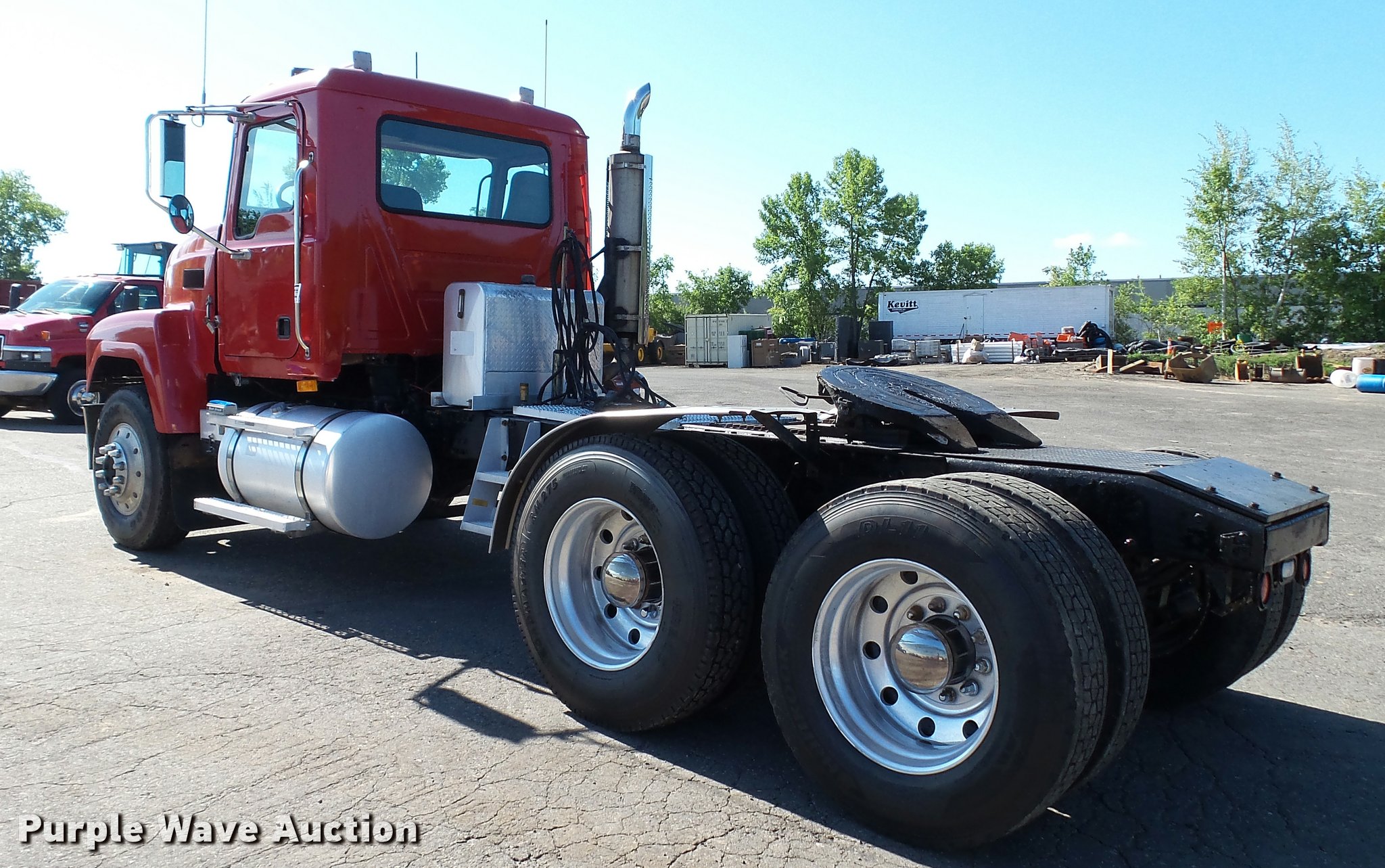 2005 Mack CHN613 semi truck. 251,540 miles on odometer, 11,947 hours on meter, Mack E7 12.0L L6 turbo diesel engine 427 HP, Serial 23579YP, Maxitorque 13 speed manual transmission, Tandem axle, Inter-axle differential lock, AC and heat, Tilt, Cruise, AM/FM/CD, Heated mirrors, Air suspension seat, Air ride cab, Backup alarm, Block heater, Front tow hooks, Exterior visor, Wet kit, Single rear exhaust stack, Aluminum deck plate, Air operated sliding fifth wheel plate, Dual fuel tanks Passenger fuel tank equipped for off road diesel fuel Electric pump, Hose, Nozzle, Stainless steel half fenders, Camelback suspension, Air brakes, Engine brake, 315/80R22.5 front tires, 11R24.5 rear tires, GVWR 51,220 lbs, FAWR 14,600 lbs, IAWR 19,000 lbs, RAWR 19,000 lbs. Minnesota title. 1M1AJ06Y55N001511. Kevitt Excavating LLC - Open inspection Sept. 6. 3335 Pennsylvania Ave N. Crystal, MN 55427