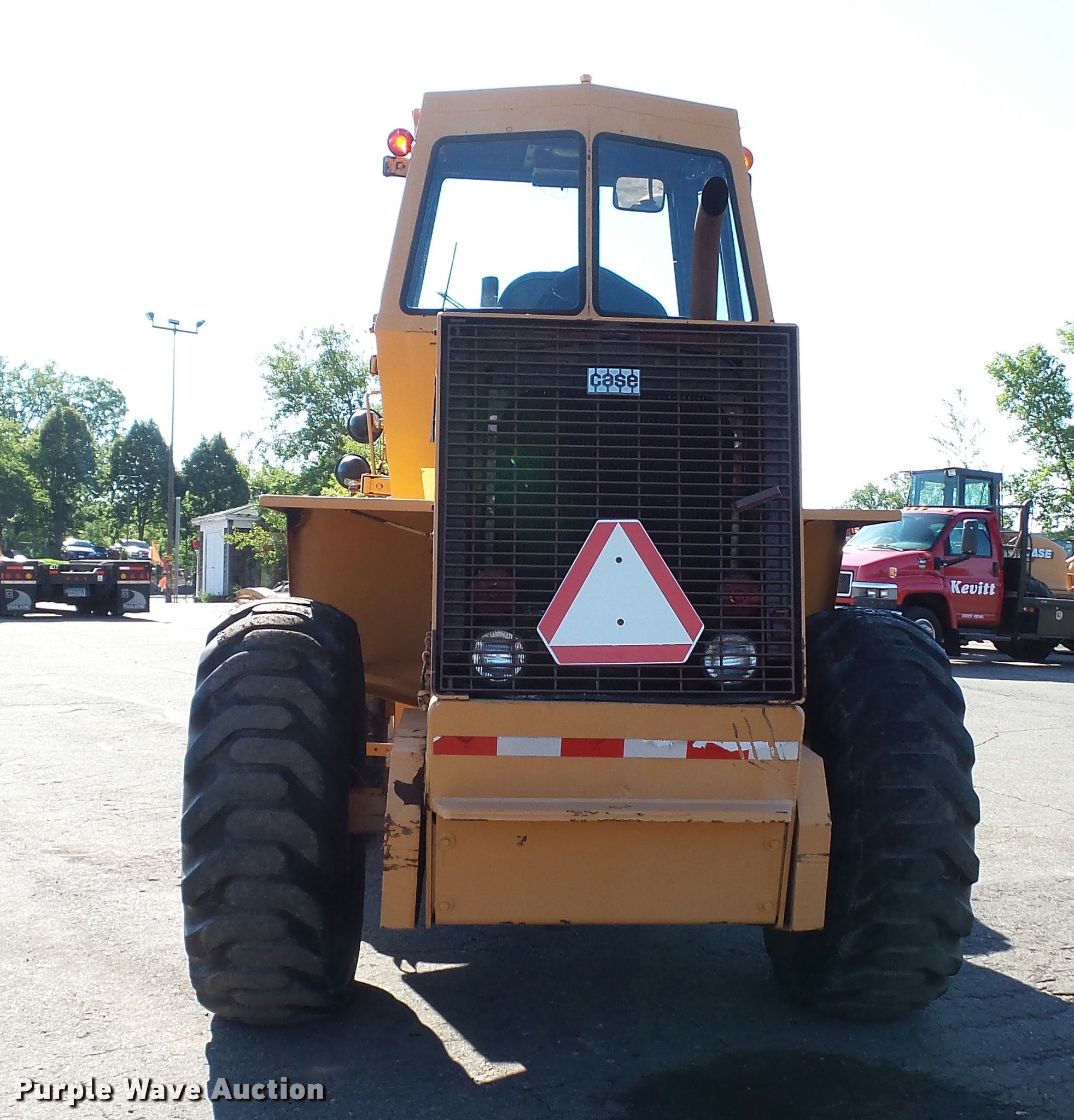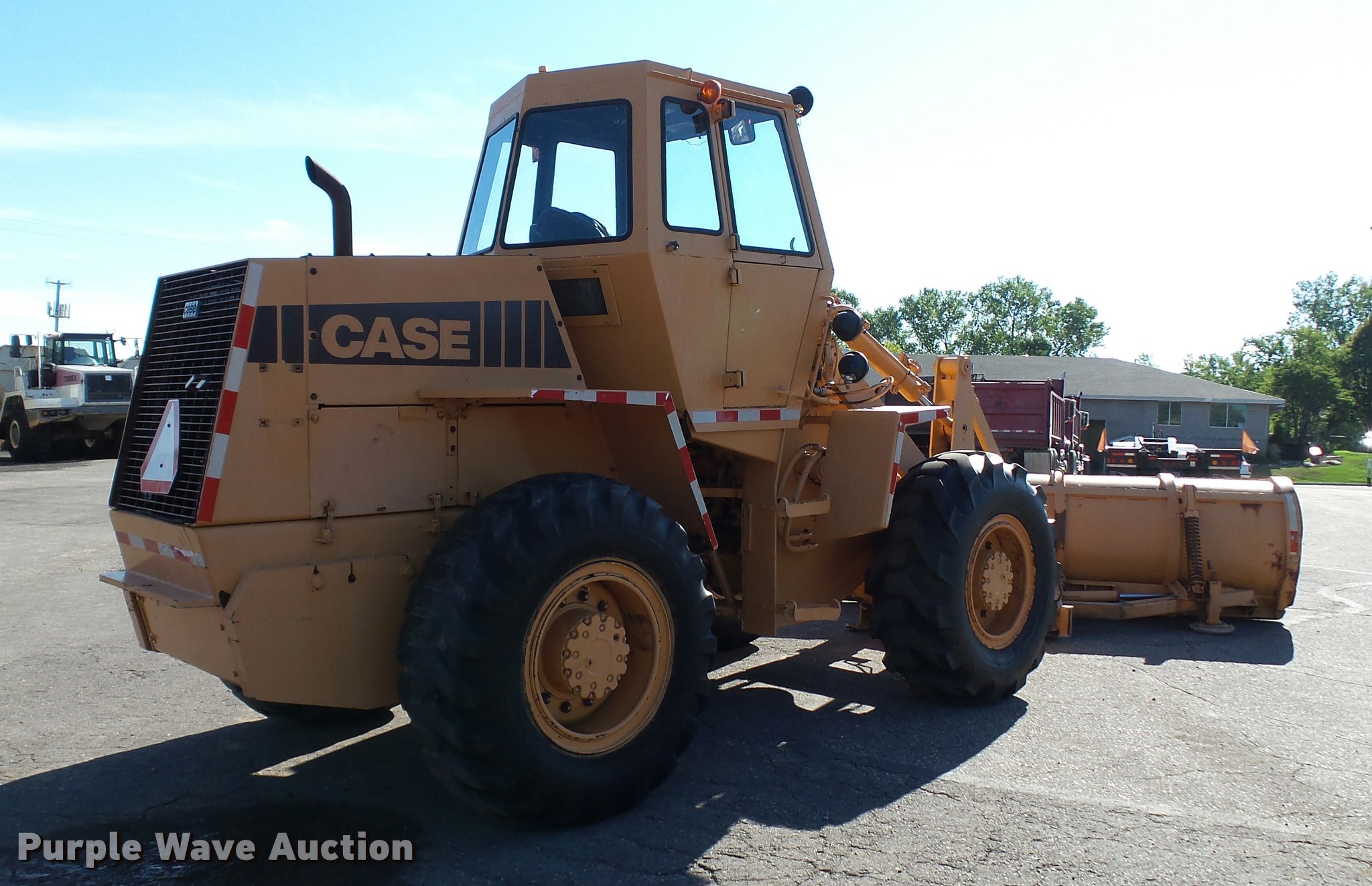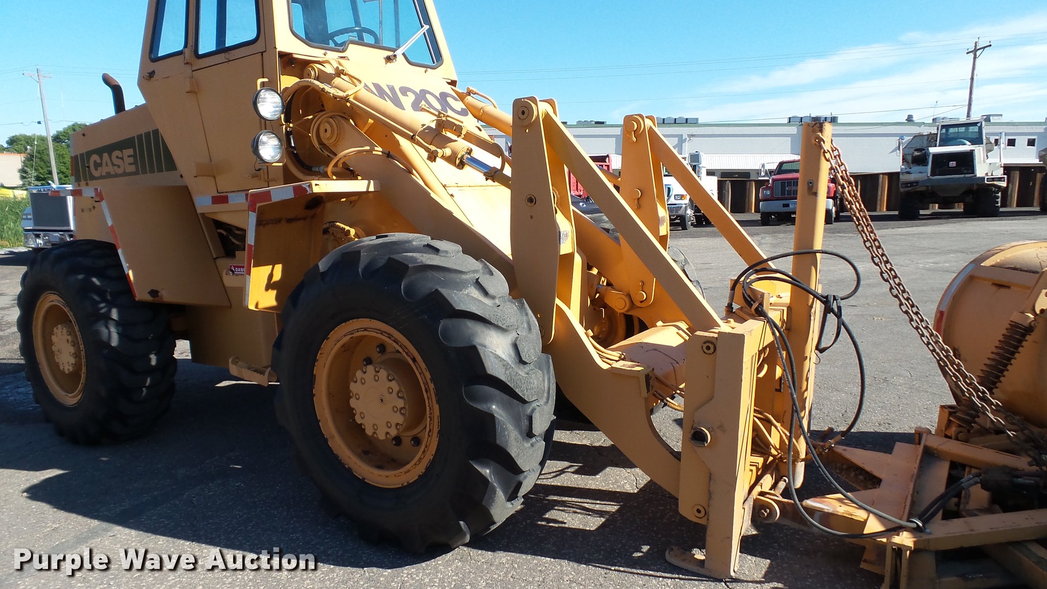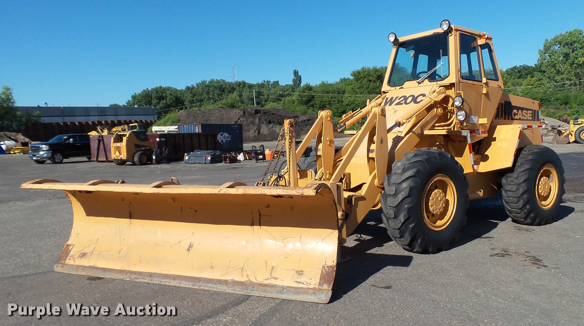 Purple Wave is selling a used Wheel Loader in Minnesota. This item is a 1981 Case W20 wheel loader with the following: 744 hours on meter, Six cylinder turbo diesel engine, Powershift transmission, 4F-2R gears, Differential lock, Enclosed cab, Serial 43184, Heat, Suspension seat, Two-lever bucket controls, Wipers, Front work lights, Backup alarm, Block heater, ACS 94"W general purpose bucket, Bolt-on cutting edge, Hydraulic quick coupler, 11'W snow plow, Hydraulic angle adjustment, Front and rear auxiliary hydraulics, Counterweights, 17.5-25 tires, Serial 9142571