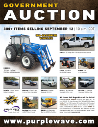 Payments must be made by 4 p.m. CDT on the second business day following the auction. Purple Wave reserves the right to charge the credit card on file the total purchase price, $30.00 late payment fee for invoices not paid within our terms. Business hours are Monday through Friday 8 a.m. to 5 p.m CDT. Cash and wire transfers (wire instructions) in any amount will be accepted. Checks up to $10,000.00 will be accepted without a bank guaranty letter. Checks of $10,000.00 or greater will be accepted only with a bank guaranty letter (letter requirements) or with prior approval from Purple Wave's credit department. MasterCard or Visa will be accepted only for charges up to $2,000.00, and only after authorization (via website or email) or in-person signatures are obtained from the cardholder. Purple Wave reserves the right to hold assets and/or certificates of title until funds availability is confirmed.