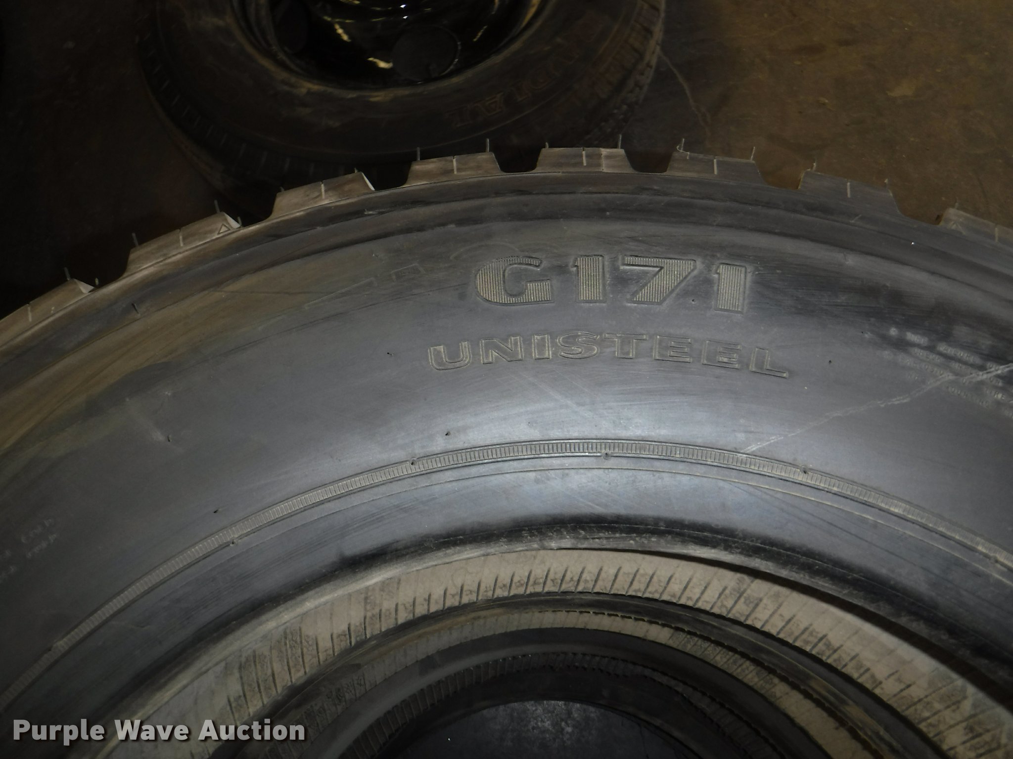 Purple Wave is selling a used Industrial Tires or Tracks in Kansas. This item is a (6) Goodyear 8R19.5 tires with the following: (2) with wheels, (4) unused