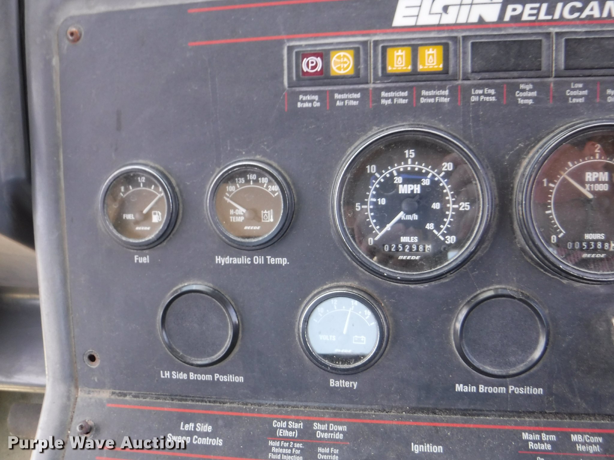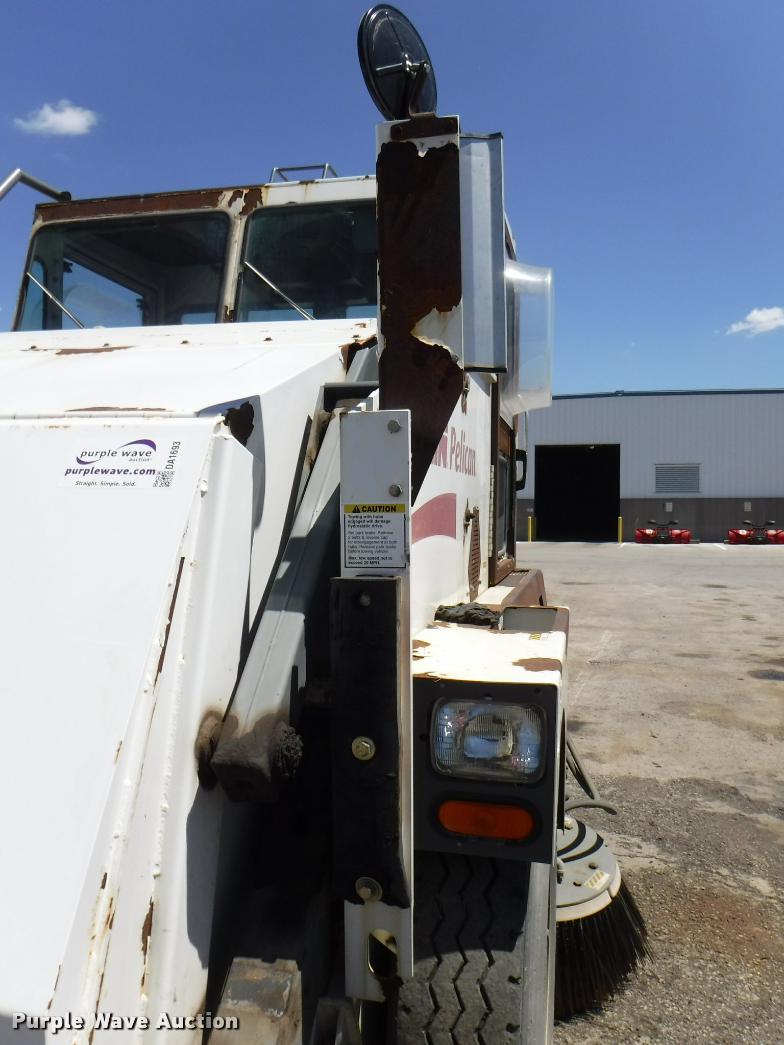 Purple Wave is selling a used Sweeper in Kansas. This item is a 2006 Elgin Pelican street sweeper with the following: 25,928 miles on odometer, 5,388 hours on meter, John Deere four cylinder diesel engine, AC and heat, 60" main boom, Dual 36" side gutter brooms, 11R22.5 front tires, 9R17.5 rear tires, Serial P4827D, Unit# 451