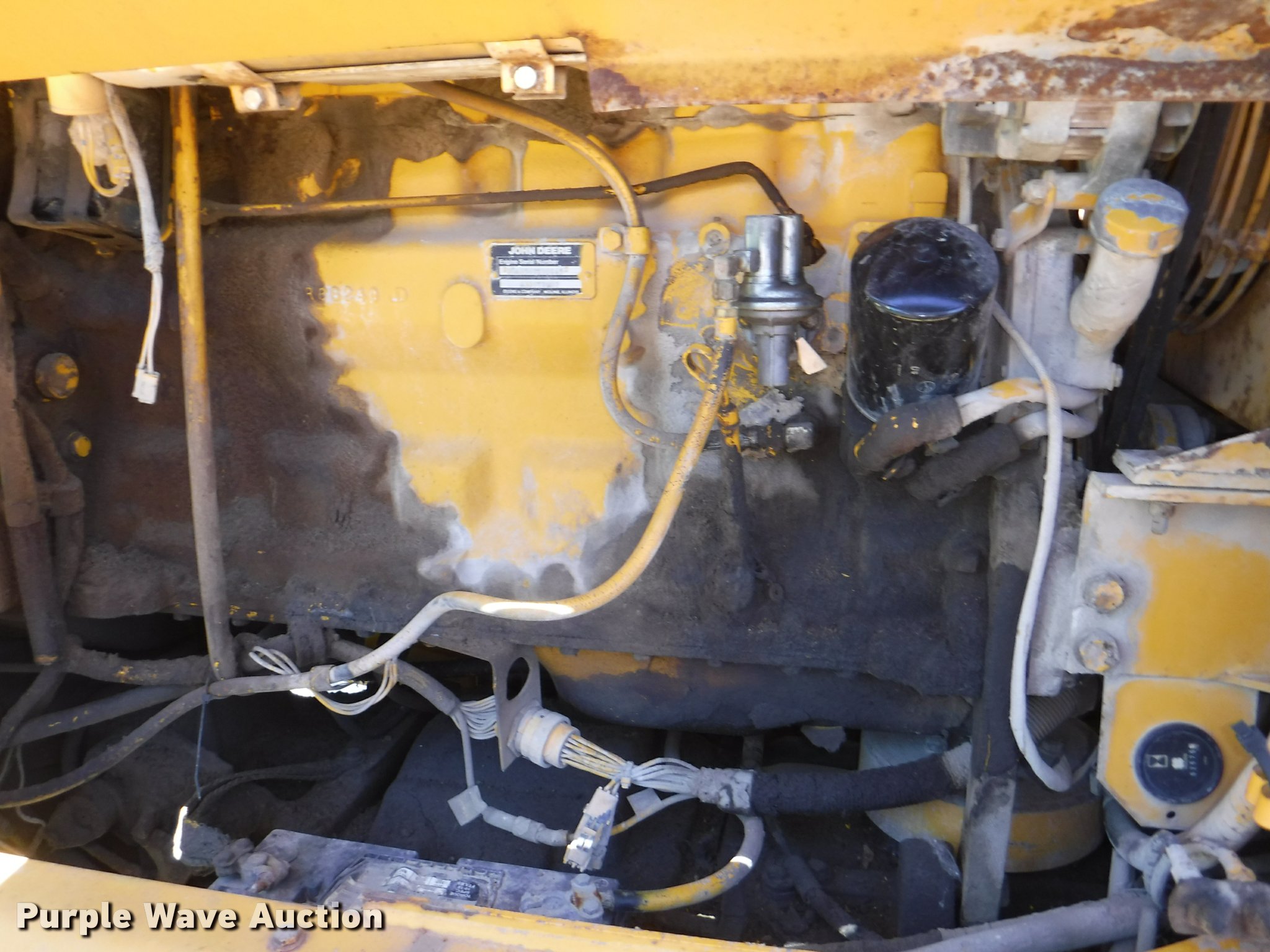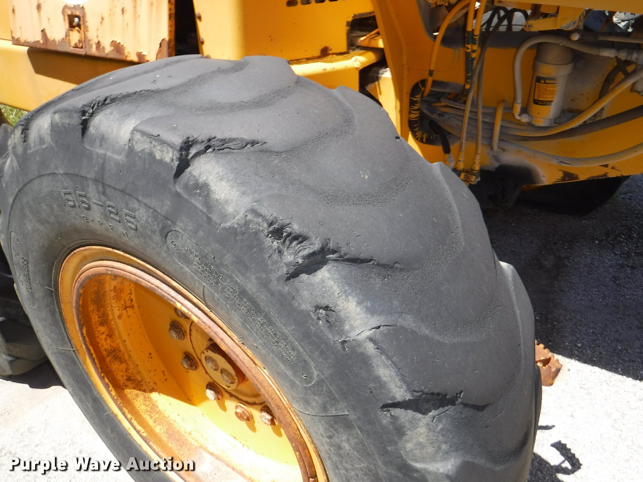Purple Wave is selling a used Motor Grader in Kansas. This item is a 1987 John Deere 570B motor grader with the following: 2,575 hours on meter, John Deere 6359T six cylinder turbo diesel engine, Powershift transmission, 8F-4R gears, Enclosed cab, Heat, Suspension seat, Front work lights, 12' moldboard, Tip control, Side shift, John Deere front mounted scarifier, (5) teeth, 15.5-25 tires, Flat tires, Non-operational unit, Serial DW570BX514306