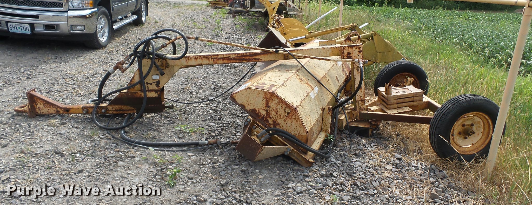 Purple Wave is selling a used Sweeper in Missouri. This item is a MB sweeper with the following: 7'W broom, (3) weights, Pintle hitch, 205/75R15 tires, Jack missing