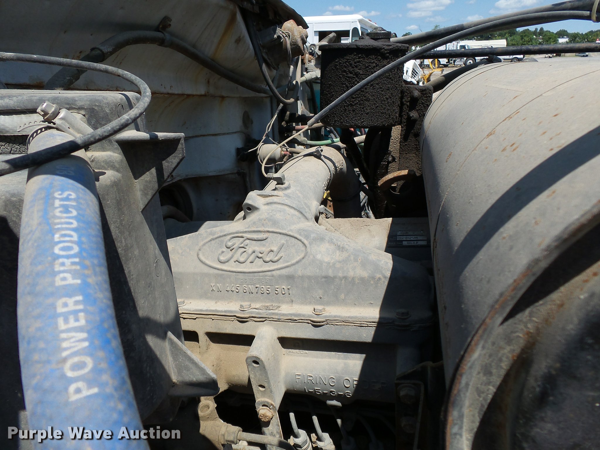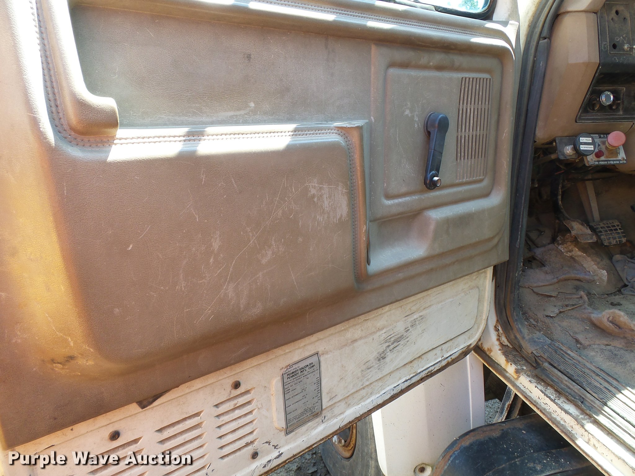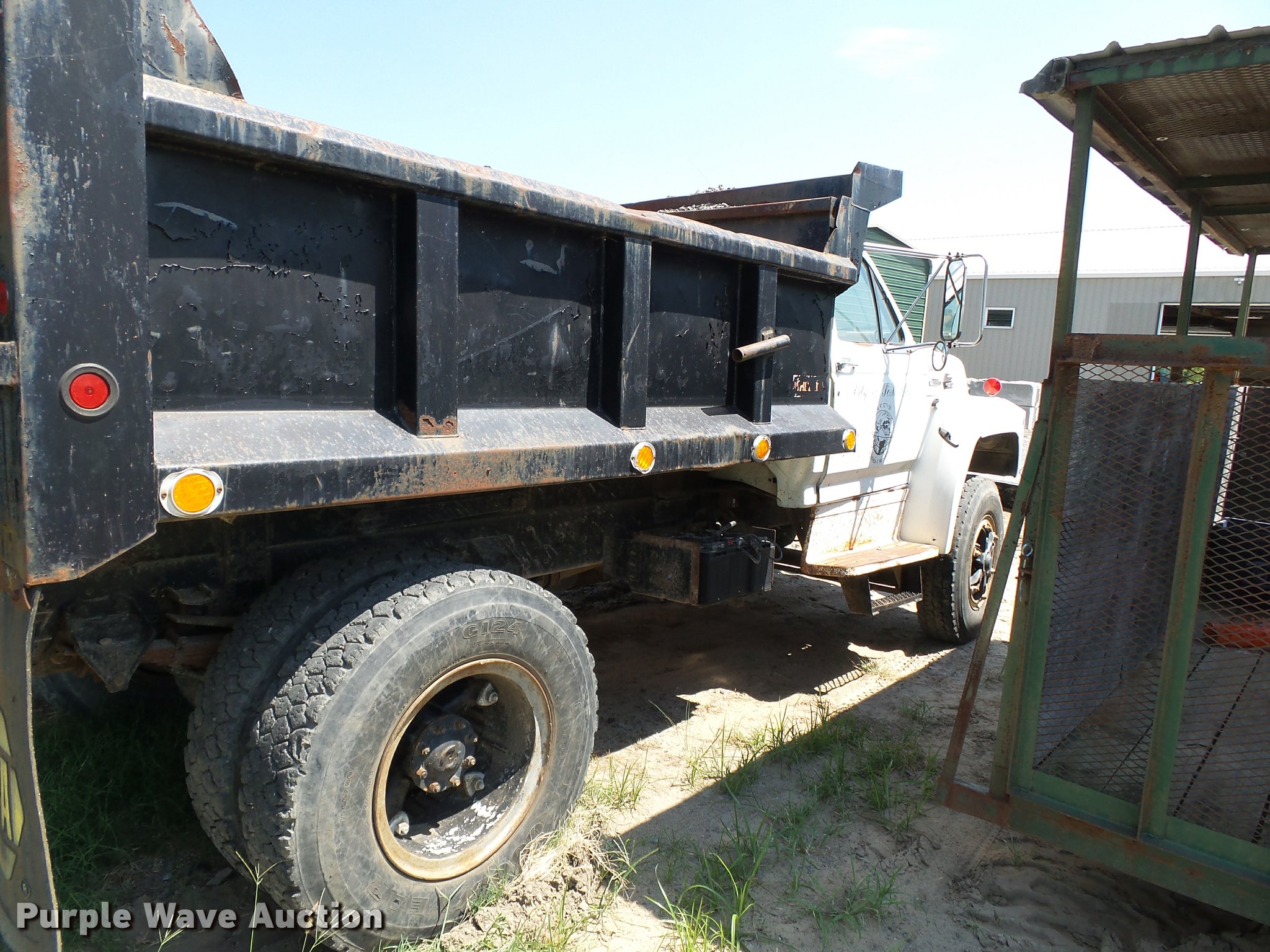 Purple Wave is selling a used Construction Dump Truck in Missouri. This item is a 1987 Ford F800 dump truck with the following: 186,712 miles on odometer, 7.8L six cylinder diesel engine, 10 speed manual transmission, Single axle, Heat, Suspension seat, PTO, Peabody steel dump bed, 10'L x 96"W, 32" side height, Air operated end gate, Single ram hoist, Spring suspension, 214" wheelbase, 10R20.00 tires, GVWR 32,600 lbs, FAWR 11,840 lbs, RAWR 20,760 lbs, Dead batteries, Unknown operating condition