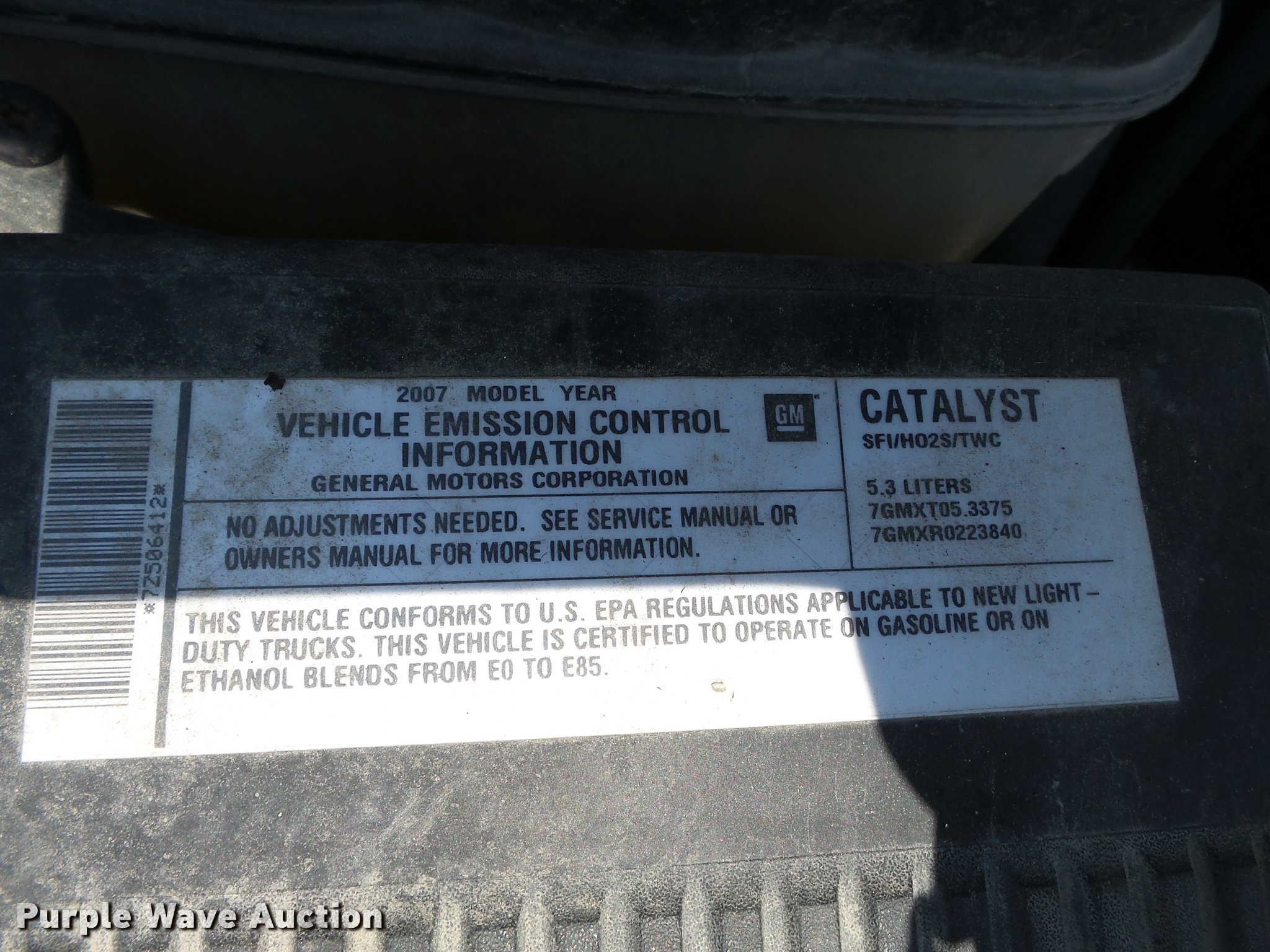 Purple Wave is selling a used 1/2 Ton Pickup or Van in Missouri. This item is a 2007 Chevrolet Silverado 1500 pickup truck with the following: 163,913 miles on odometer, 5.3L V8 OHV 16V FFV gas engine, Automatic transmission, AC and heat, Tilt, Cruise, AM/FM, Manual windows and locks, Vinyl interior, Receiver hitch, Trailer wiring, LT245/70R17 tires, Check engine light on, Decals will be removed prior to auction, Amber lights not included, MODOT ID B6120