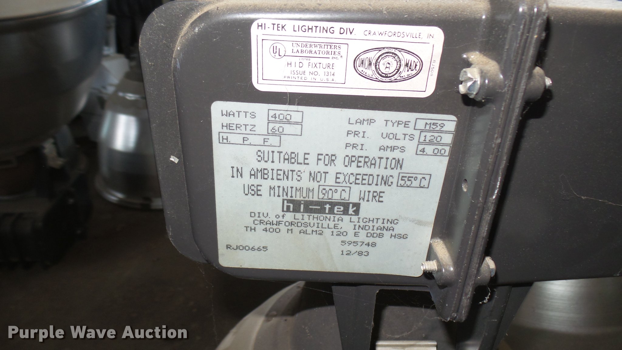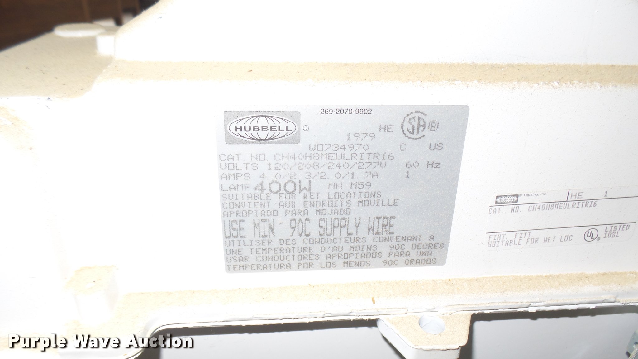 Purple Wave is selling a used Building Materials in Kansas. This item is a Approximately 70 bay lights with the following: 400 watt, Two styles, Hubbell and Hi-Tek brands, Various conditions