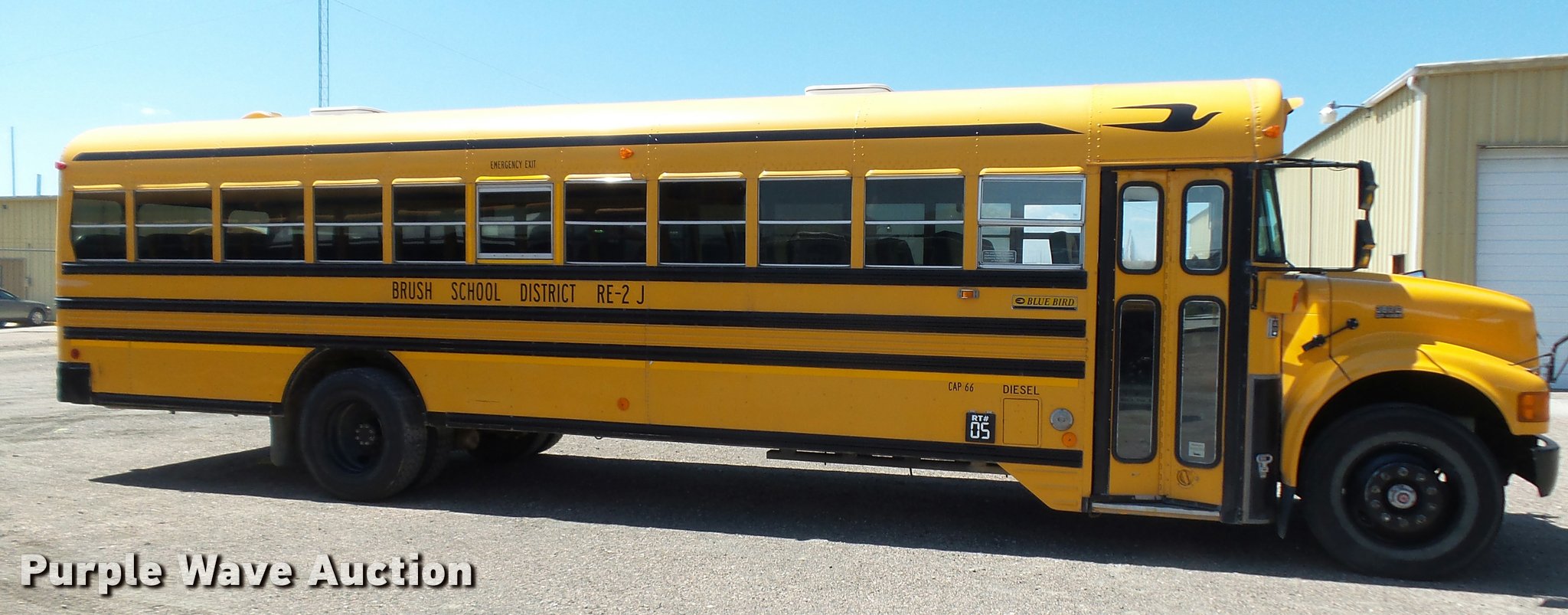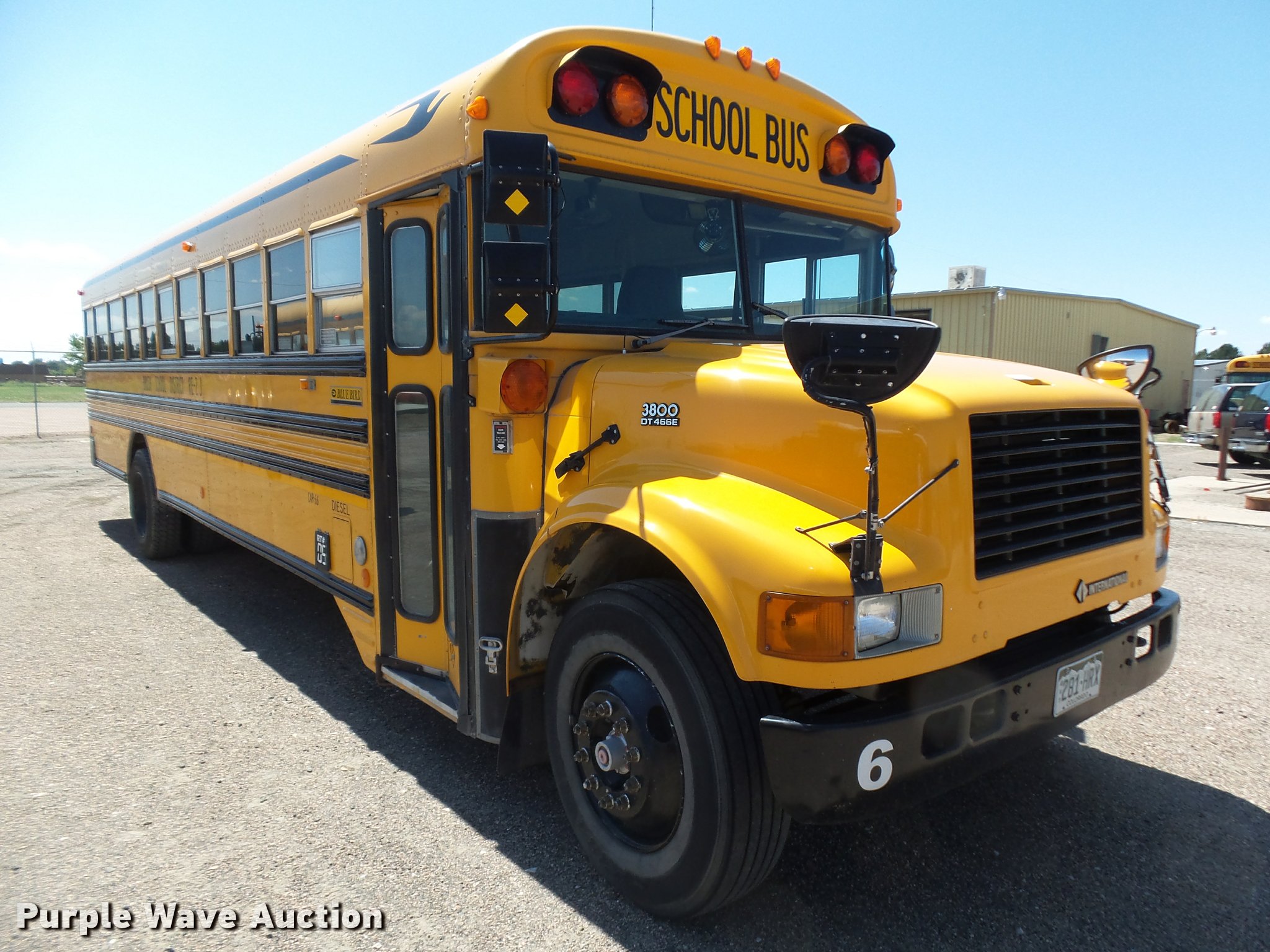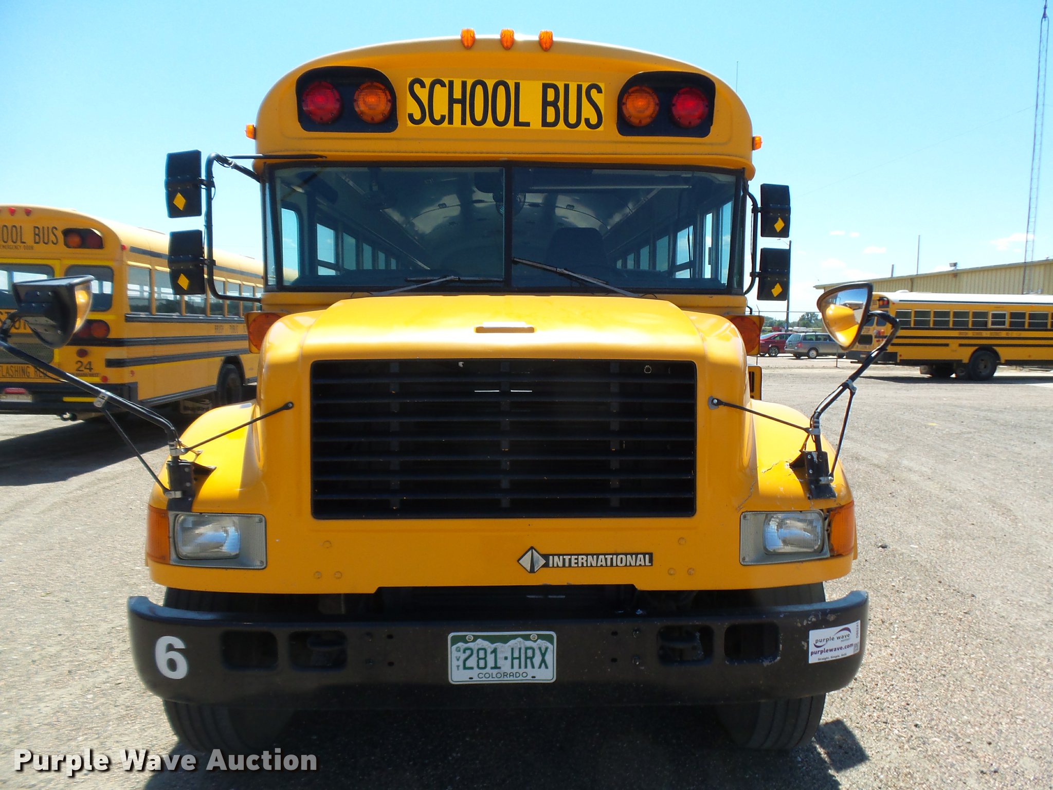 Purple Wave is selling a used Bus in Colorado. This item is a 2001 International 3800 school bus with the following: 258,615 miles on odometer, International DT466 7.6L L6 turbo diesel engine, Automatic transmission, Single axle, Heat, AM/FM, Heated mirrors, Unknown operating condition, Air suspension seat, Observer camera, Electric passenger sliding door, 66 passenger capacity, Ceiling, front, rear, and side emergency exits, Lighted stop sign, Backup alarm, Front and rear tow hooks, Air suspension, Air brakes, 276" wheelbase, 295/75R22.5 tires, GVWR 30,000 lbs, Unit# 6