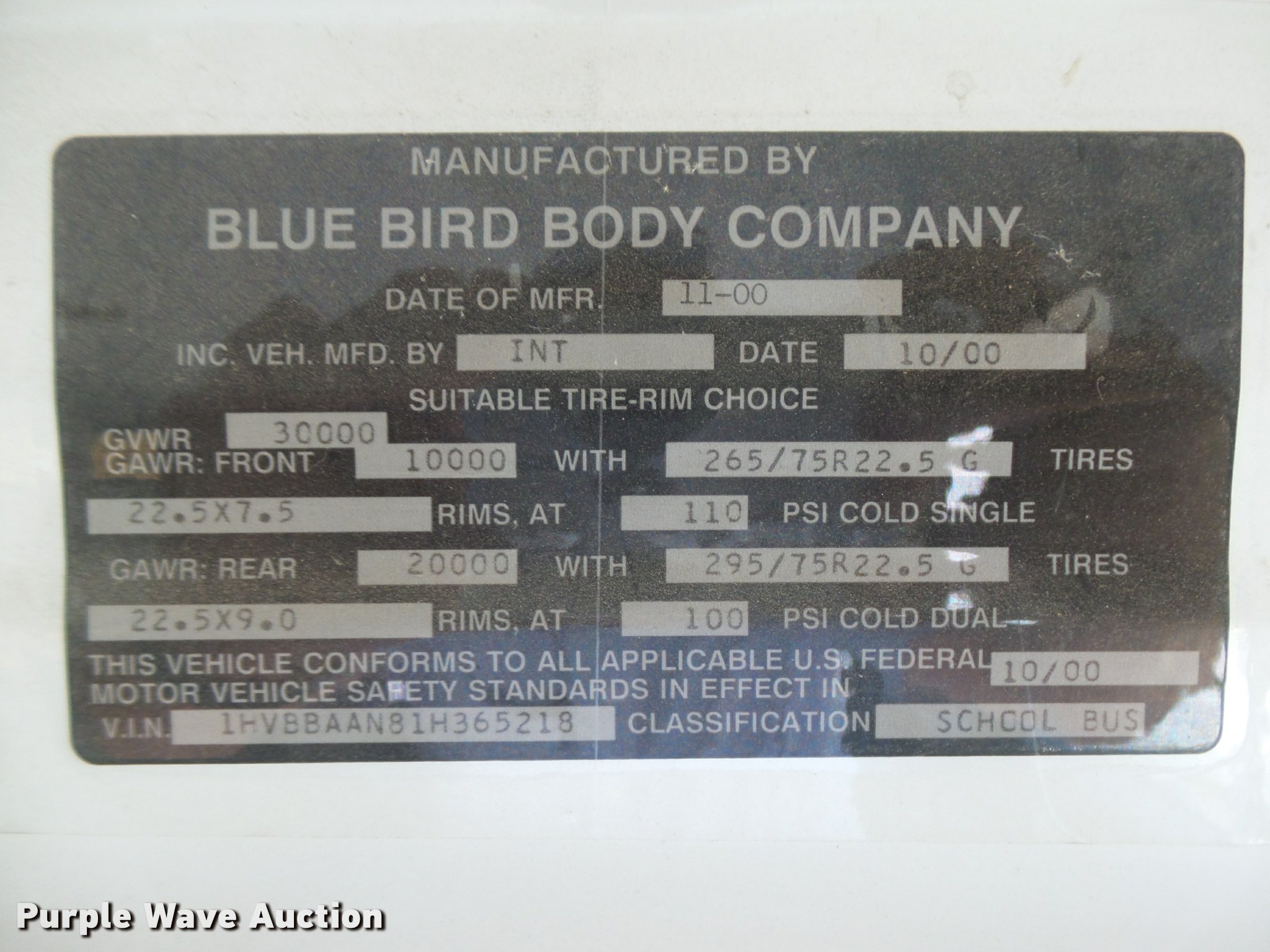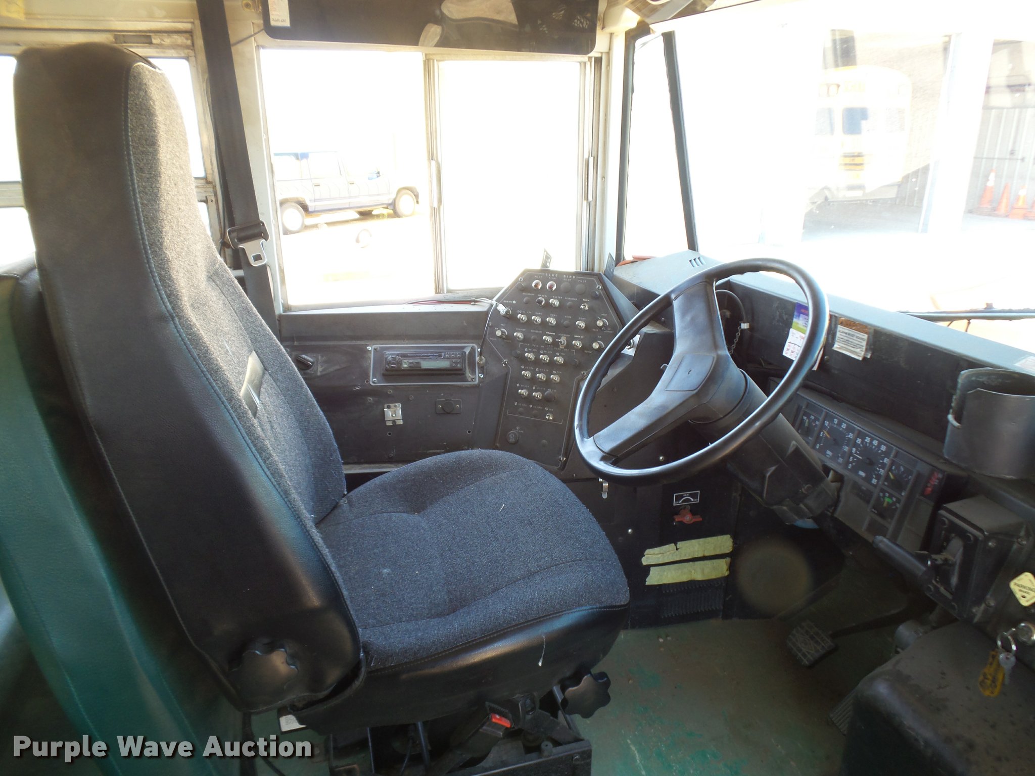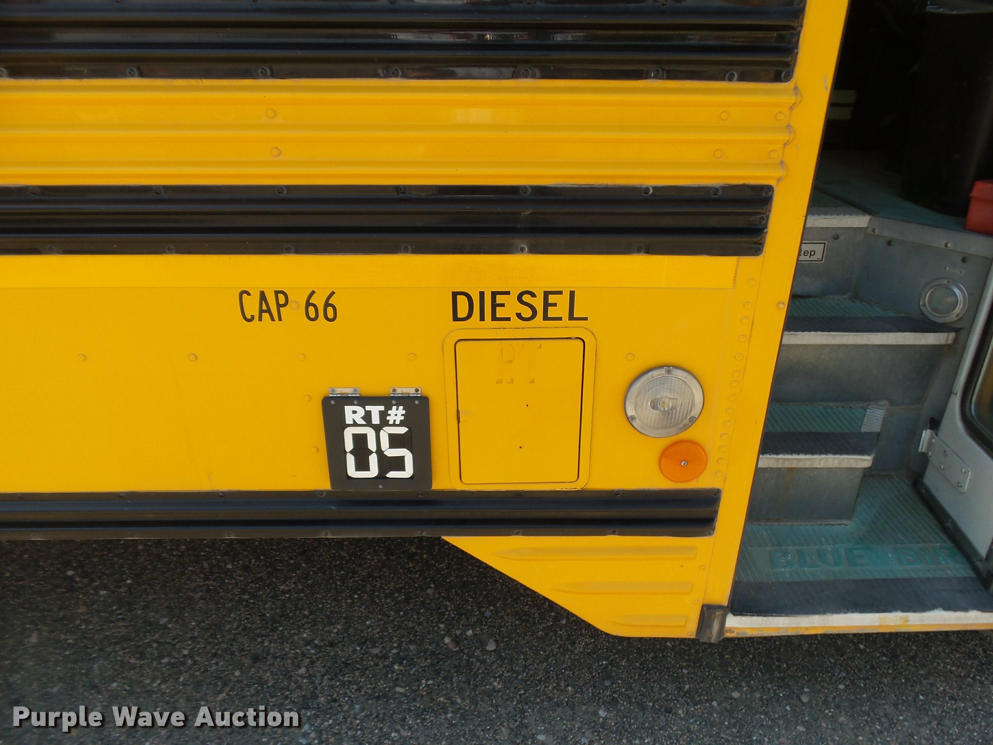 Purple Wave is selling a used Bus in Colorado. This item is a 2001 International 3800 school bus with the following: 258,615 miles on odometer, International DT466 7.6L L6 turbo diesel engine, Automatic transmission, Single axle, Heat, AM/FM, Heated mirrors, Unknown operating condition, Air suspension seat, Observer camera, Electric passenger sliding door, 66 passenger capacity, Ceiling, front, rear, and side emergency exits, Lighted stop sign, Backup alarm, Front and rear tow hooks, Air suspension, Air brakes, 276" wheelbase, 295/75R22.5 tires, GVWR 30,000 lbs, Unit# 6