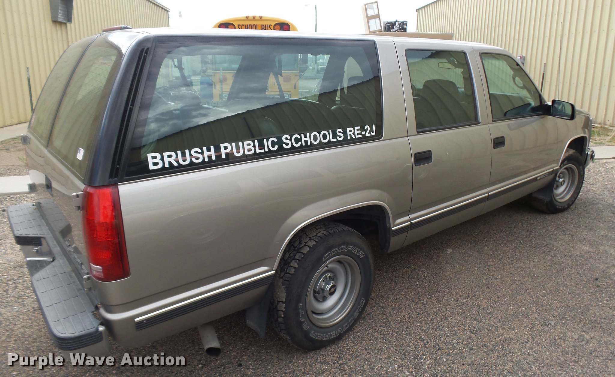1999 Chevrolet Suburban C1500 SUV. 225,145 miles on odometer, 5.7L V8 OHV 16V gas engine, Automatic transmission, AC and heat, Tilt, Cruise, AM/FM, Manual windows, Power locks, Vinyl interior, 235/75R15 tires, Unit# 66. Title distribution may be delayed up to 14 days from verification of funds. 3GNEC16R0XG192476. Brush School District RE-2J. 527 Industrial Park Rd. Brush, CO 80723