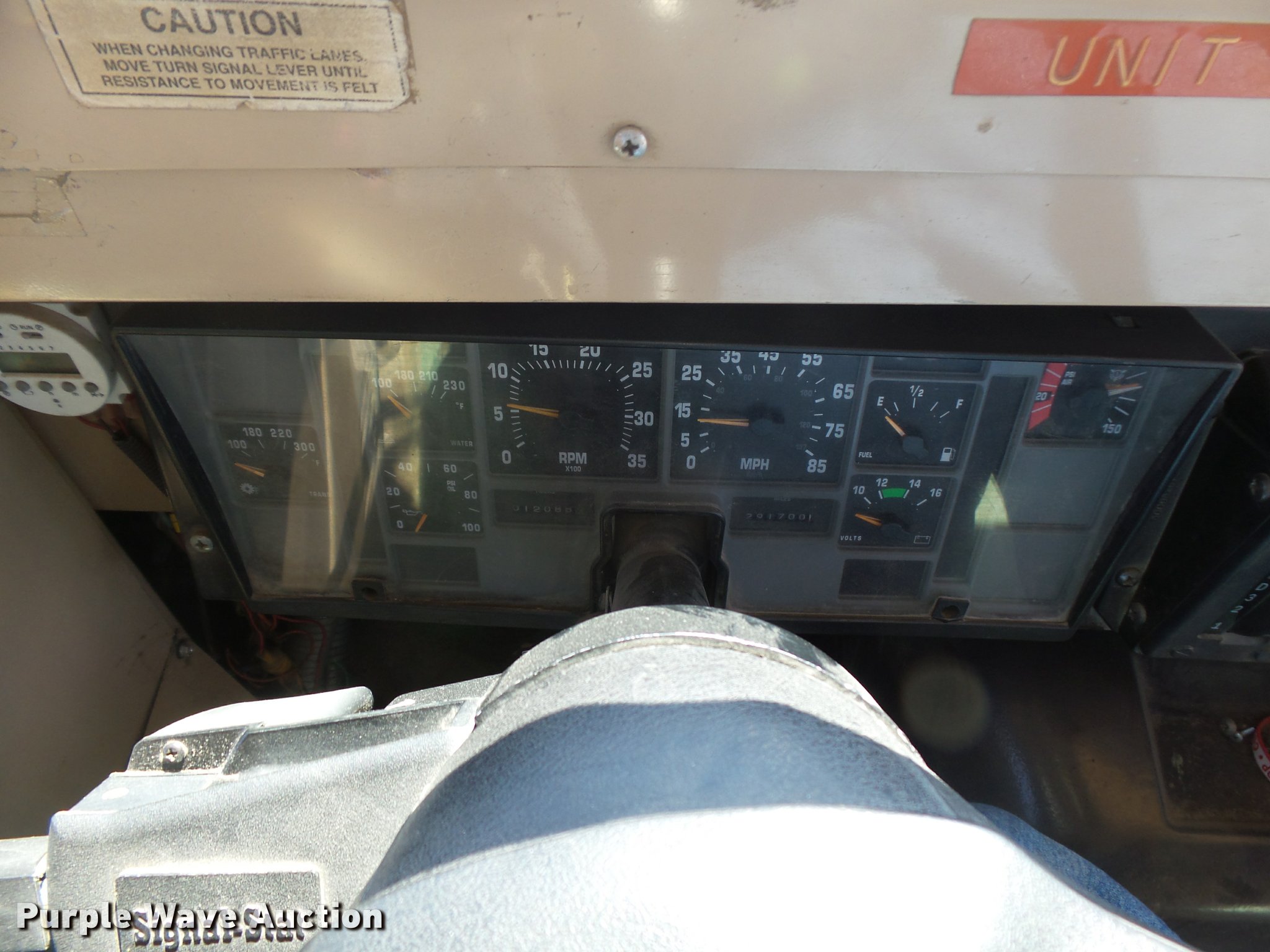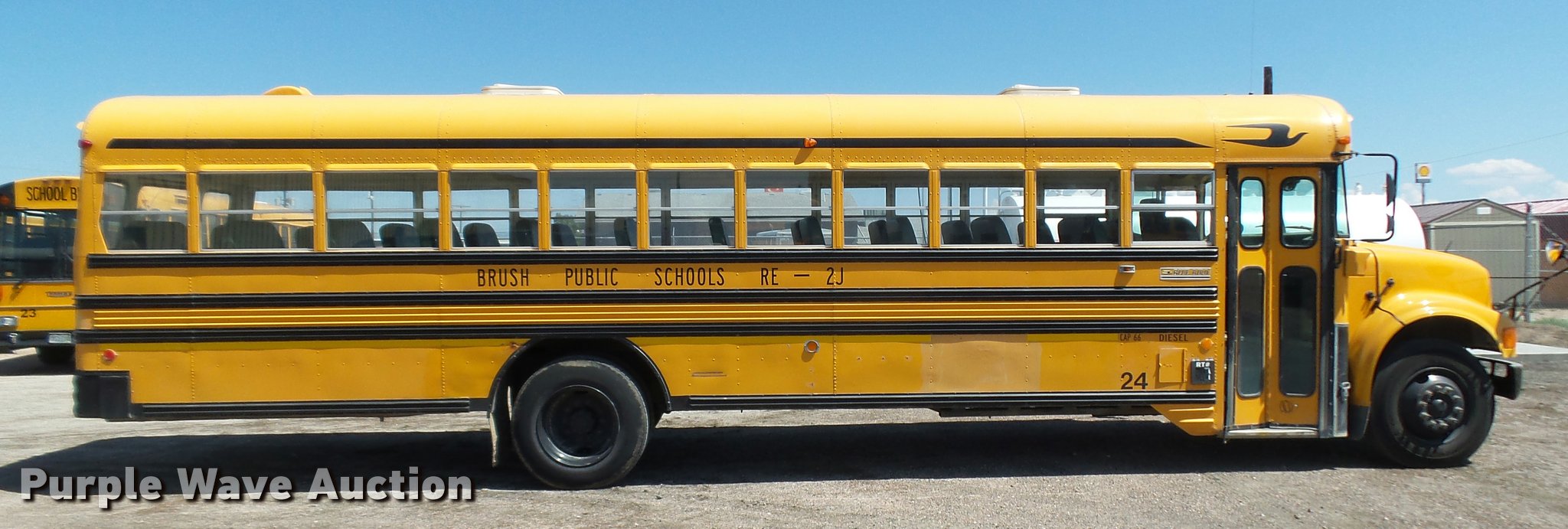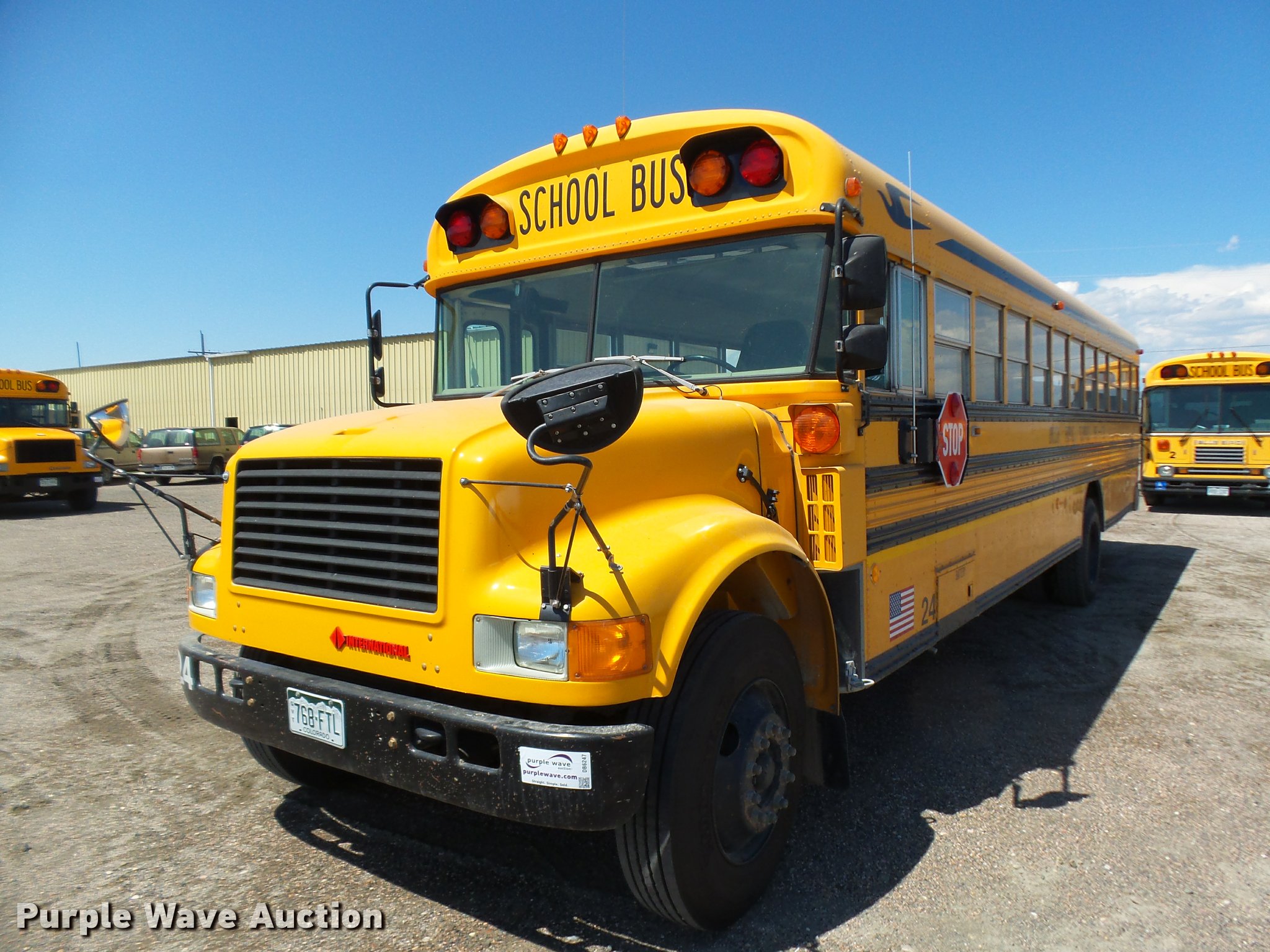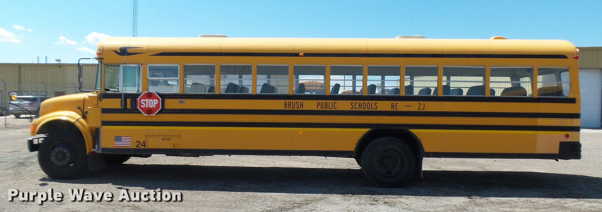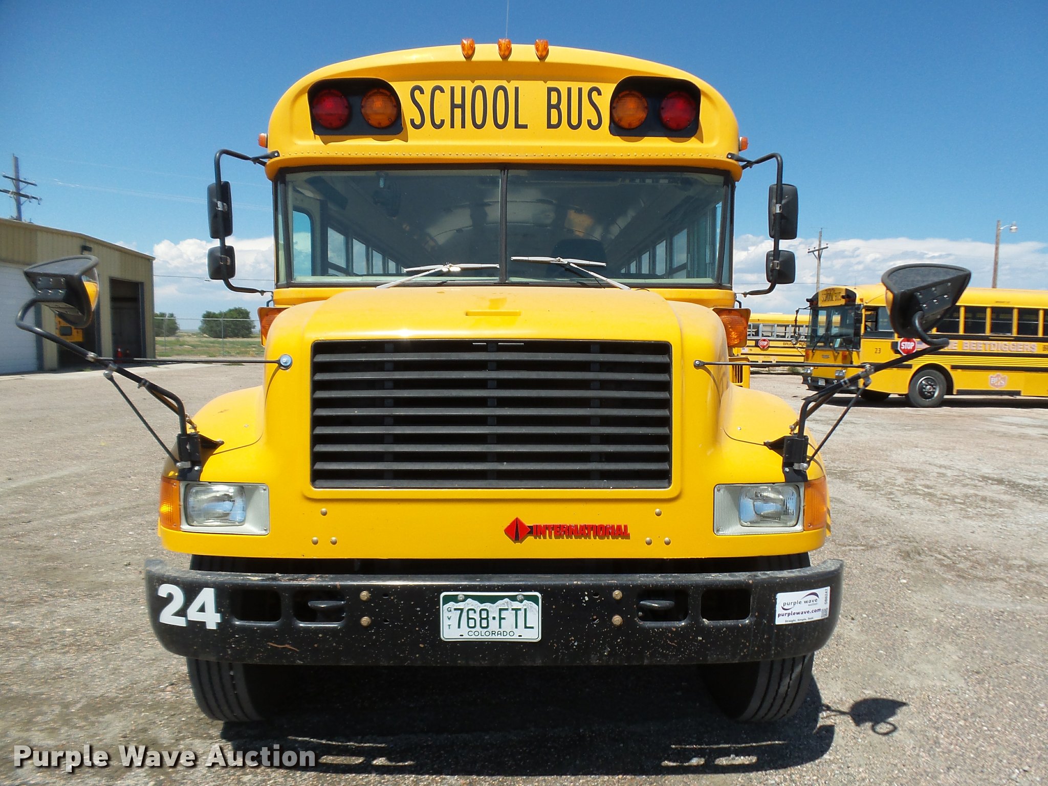 Purple Wave is selling a used Bus in Colorado. This item is a 1993 International 3800 school bus with the following: 291,700 miles on odometer, International E210 7.6L L6 turbo diesel engine, Serial 1820803C1, Allison MT643 automatic transmission, Single axle, Heat, AM/FM, Electric passenger sliding door, 66 passenger capacity, Ceiling, front, and rear emergency exits, Lighted stop sign, Backup alarm, Front and rear tow hooks, Air suspension, Air brakes, 254" wheelbase, 10R22.5 tires, GVWR 30,000 lbs, Unit# 24