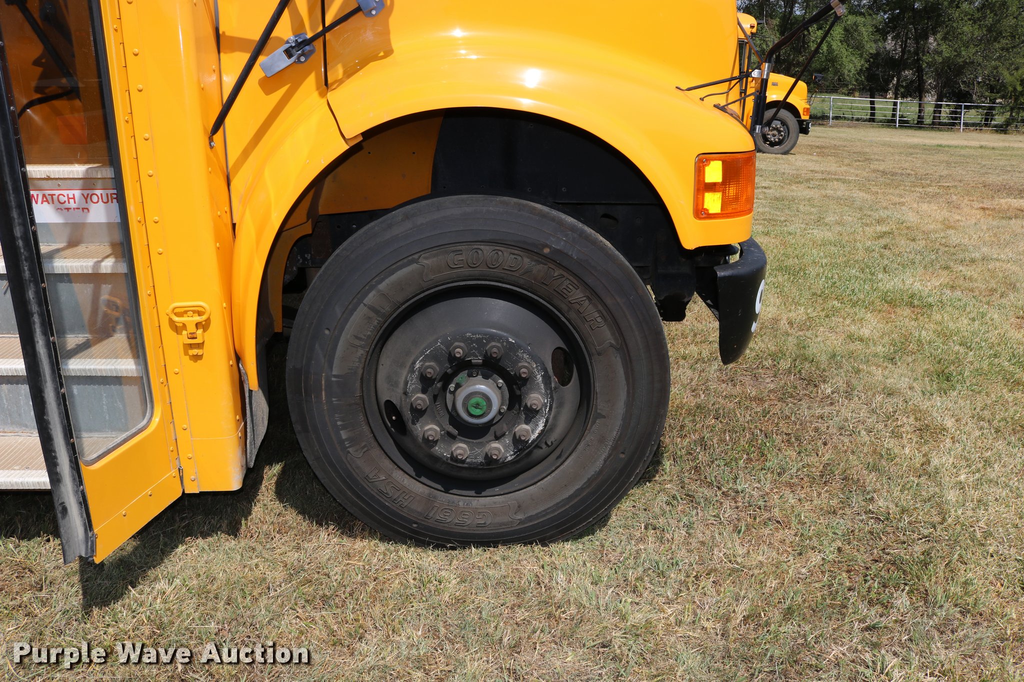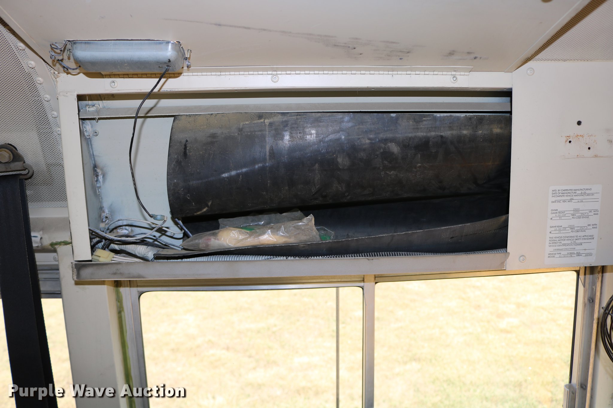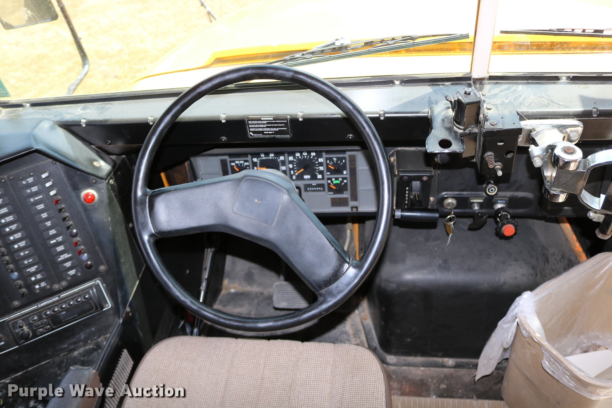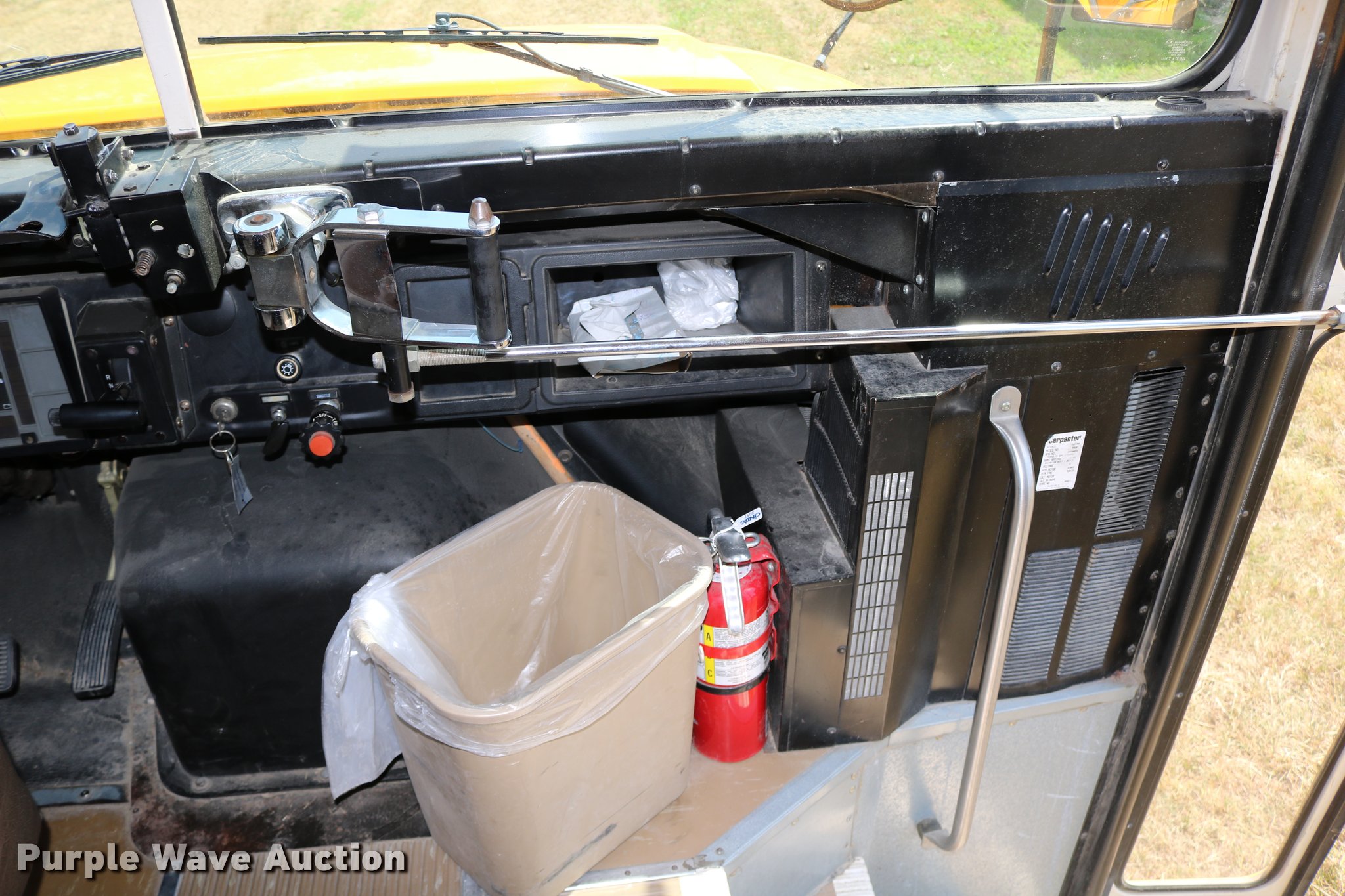 Purple Wave is selling a used Bus in Kansas. This item is a 1997 International 3800 bus with the following: 33,081 miles on odometer, International DT466 7.6L L6 turbo diesel engine, Automatic transmission, Single axle, Heat, AM/FM, Heated mirrors, 48 passenger capacity, Braul L208U64AR5 Series 5 wheel chair lift, Serial 2211, (2) wheel chair tie downs, Ceiling, rear, and side emergency exits, Emergency door alarms, Lighted stop sign, Beacon light, Block heater, Backup alarm, Front and rear tow hooks, Approximately 254" wheelbase, Spring suspension, Hydraulic brakes, 10R22.5 tires, GVWR 29,000 lbs, Odometer replaced at 80,287 miles, Two way radio is not included, Engine issues, Engine knock, Possible down draft tube, Unit# 96-1