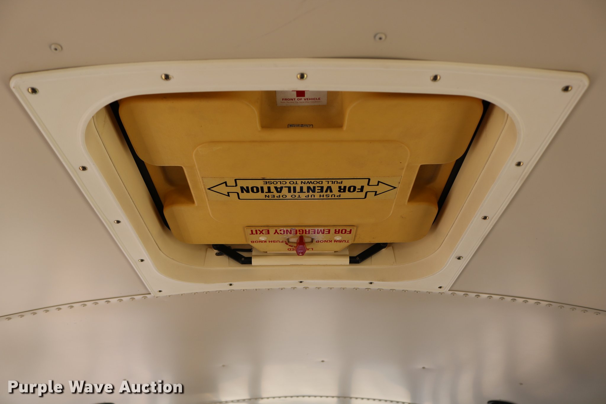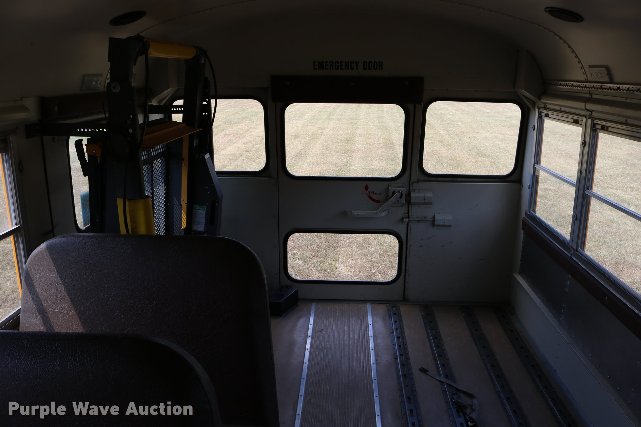 1997 International 3800 bus. 33,081 miles on odometer, International DT466 7.6L L6 turbo diesel engine, Automatic transmission, Single axle, Heat, AM/FM, Heated mirrors, 48 passenger capacity, Braul L208U64AR5 Series 5 wheel chair lift Serial 2211, (2) wheel chair tie downs, Ceiling, rear, and side emergency exits, Emergency door alarms, Lighted stop sign, Beacon light, Block heater, Backup alarm, Front and rear tow hooks, Approximately 254" wheelbase, Spring suspension, Hydraulic brakes, 10R22.5 tires, GVWR 29,000 lbs, Odometer replaced at 80,287 miles, Two way radio is not included, Engine issues Engine knock, Possible down draft tube, Unit# 96-1. Kansas title. 1HVBBAAP3TH379998. USD 408. 1500 E Main St. Marion, KS 66861