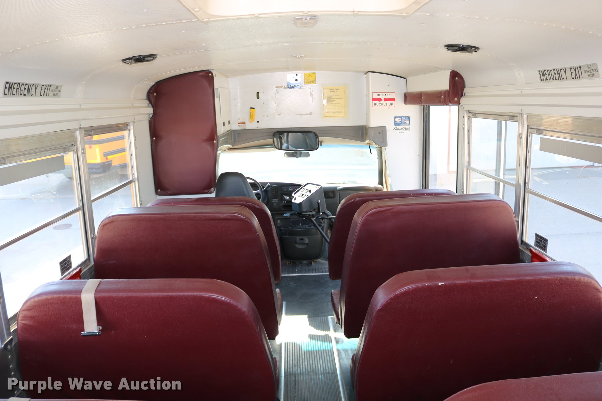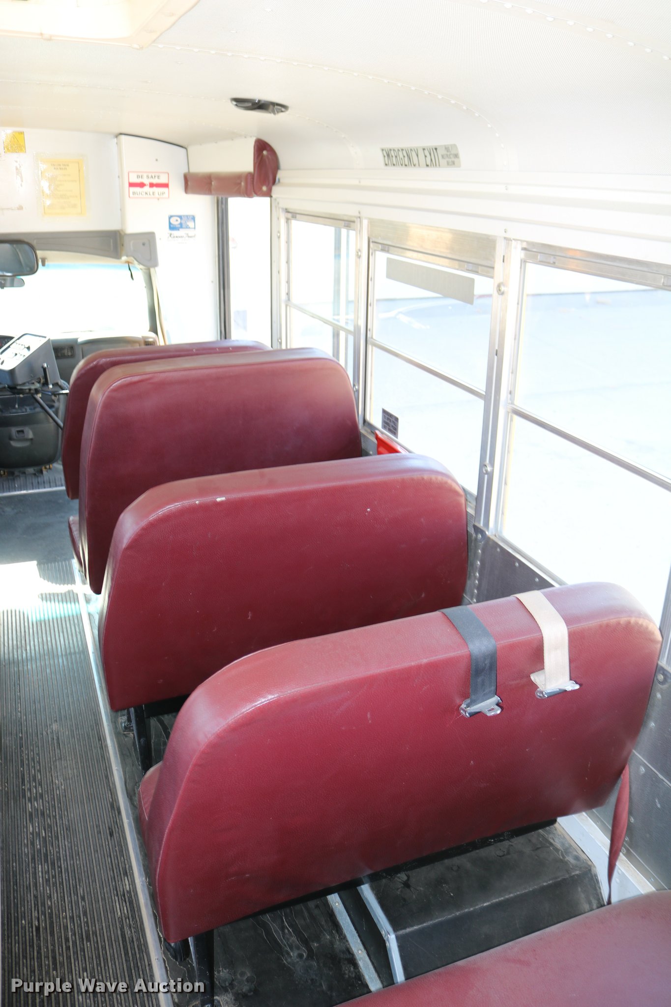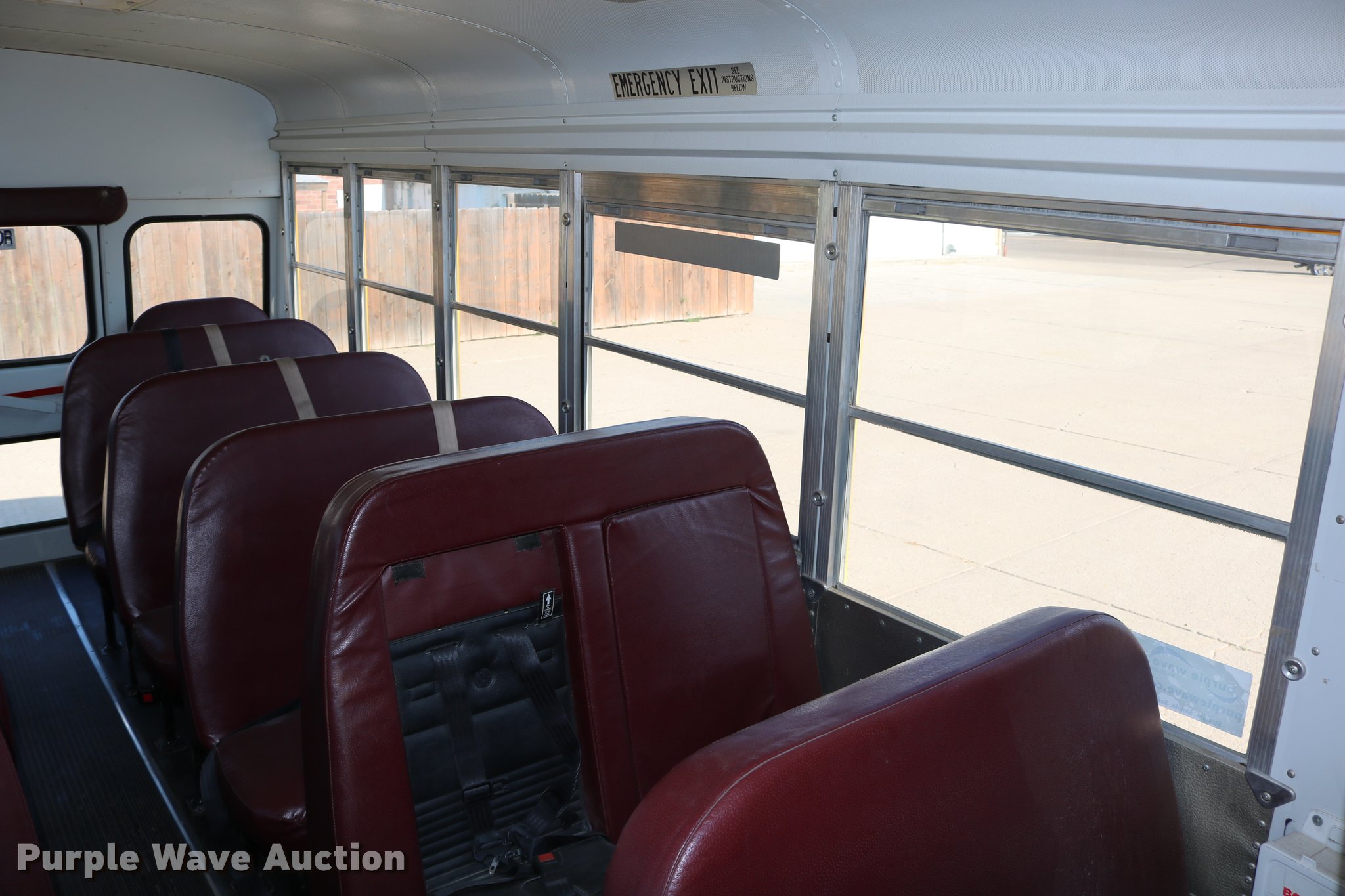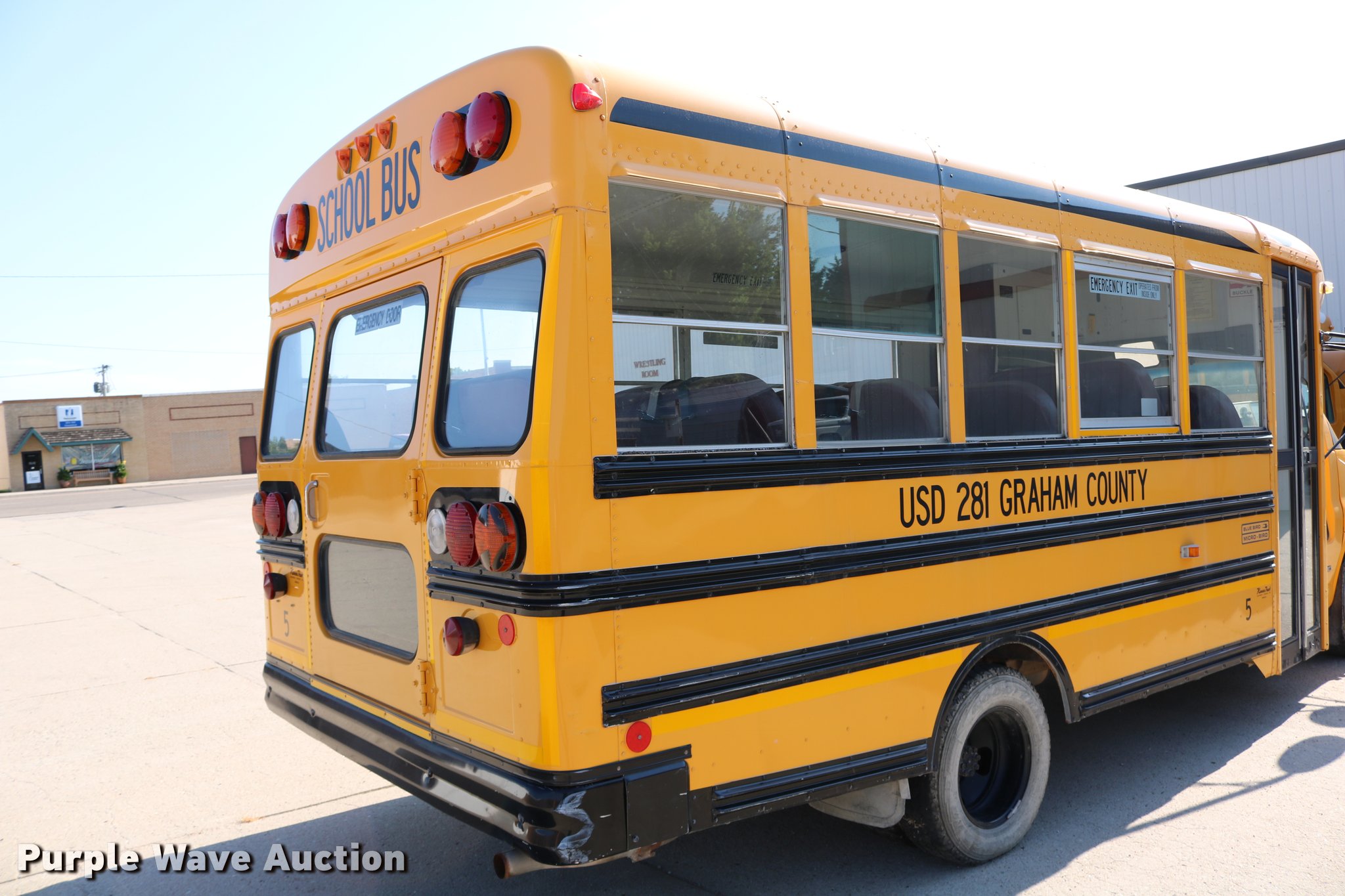 Purple Wave is selling a used Bus in Kansas. This item is a 2002 Chevrolet Express G3500 school bus with the following: 143,745 miles on odometer, 5.7L V8 OHV 16V gas engine, Automatic transmission, Single axle, Heat, AM/FM/CD, Heated mirrors, Blue Bird Miro-Bird body, (29) adult seats, Seat belts, (4) child seats, Ceiling, rear, and side emergency exits, Emergency door alarms, Beacon light, Lighted stop sign, Backup alarm, 160" wheelbase, Hydraulic brakes, 225/75R16 tires, GVWR 12,000 lbs, FAWR 4,300 lbs, RAWR 8,600 lbs