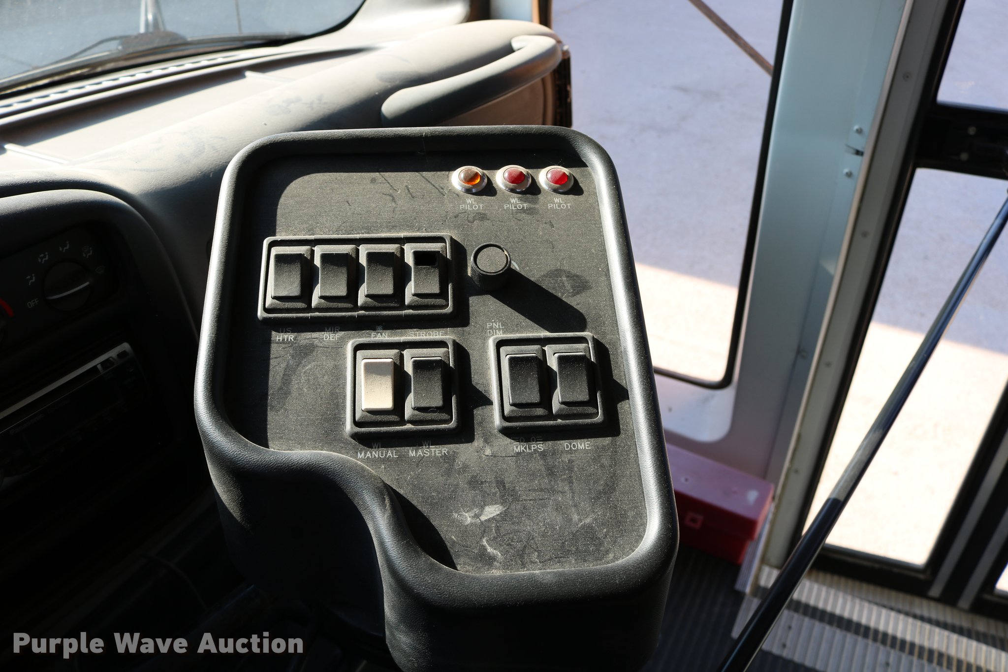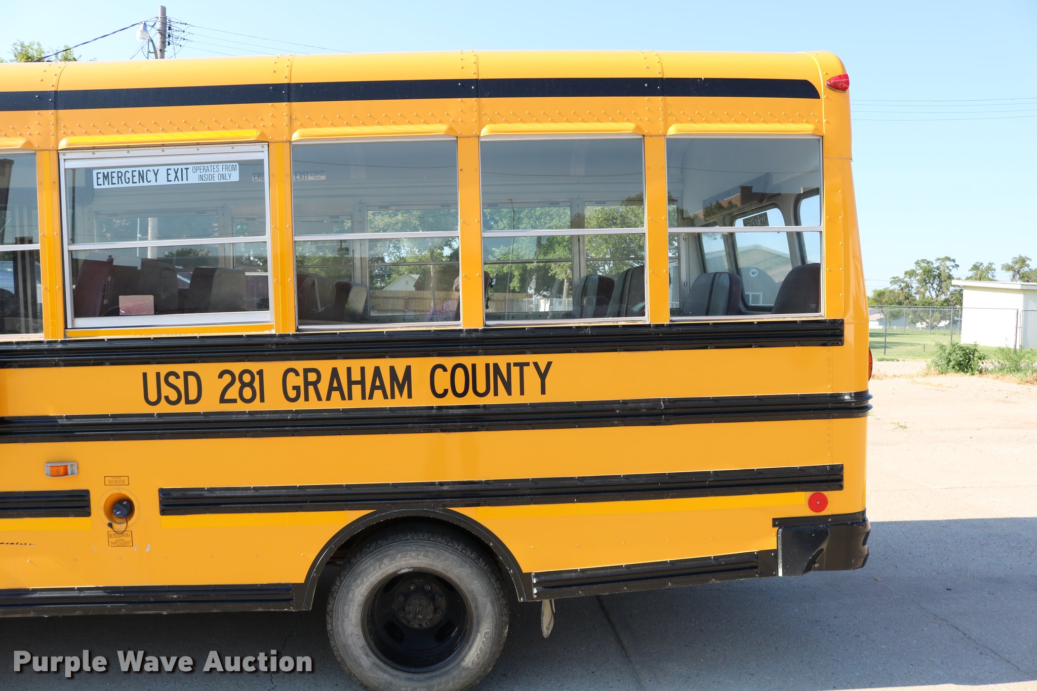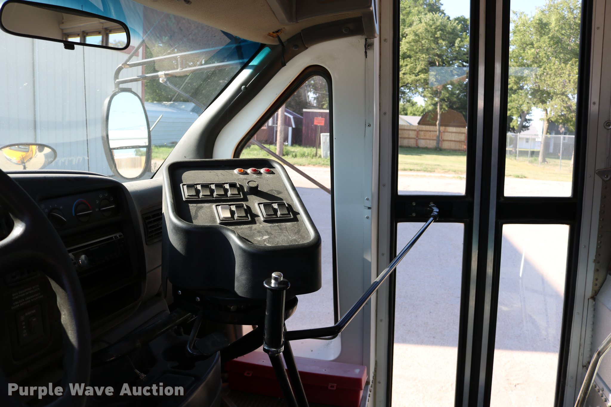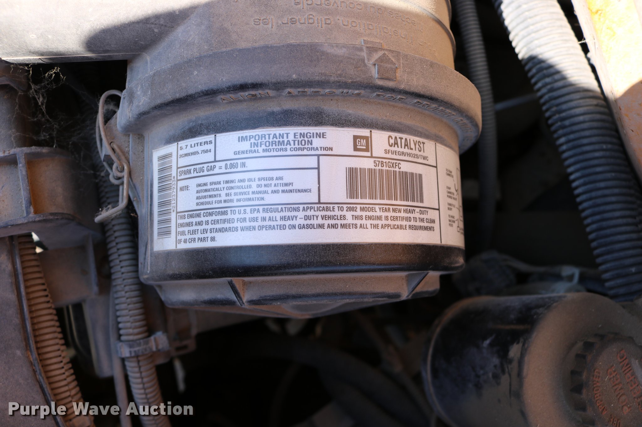 Purple Wave is selling a used Bus in Kansas. This item is a 2002 Chevrolet Express G3500 school bus with the following: 143,745 miles on odometer, 5.7L V8 OHV 16V gas engine, Automatic transmission, Single axle, Heat, AM/FM/CD, Heated mirrors, Blue Bird Miro-Bird body, (29) adult seats, Seat belts, (4) child seats, Ceiling, rear, and side emergency exits, Emergency door alarms, Beacon light, Lighted stop sign, Backup alarm, 160" wheelbase, Hydraulic brakes, 225/75R16 tires, GVWR 12,000 lbs, FAWR 4,300 lbs, RAWR 8,600 lbs