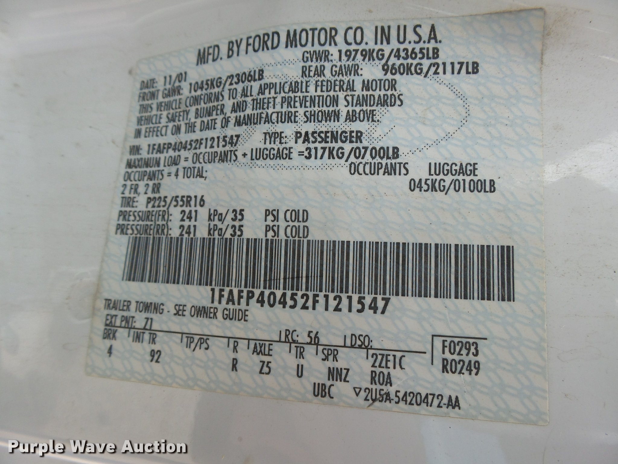 Purple Wave is selling a used Passenger Vehicle in Kansas. This item is a 2002 Ford Mustang with the following: 266,734 miles on odometer, 3.8L V6 OHV 12V gas engine, Automatic transmission, AC and heat, Tilt, Cruise, AM/FM/CD/cassette, Power windows, locks, mirrors, and seat, Cloth interior, P225/60R16 tires