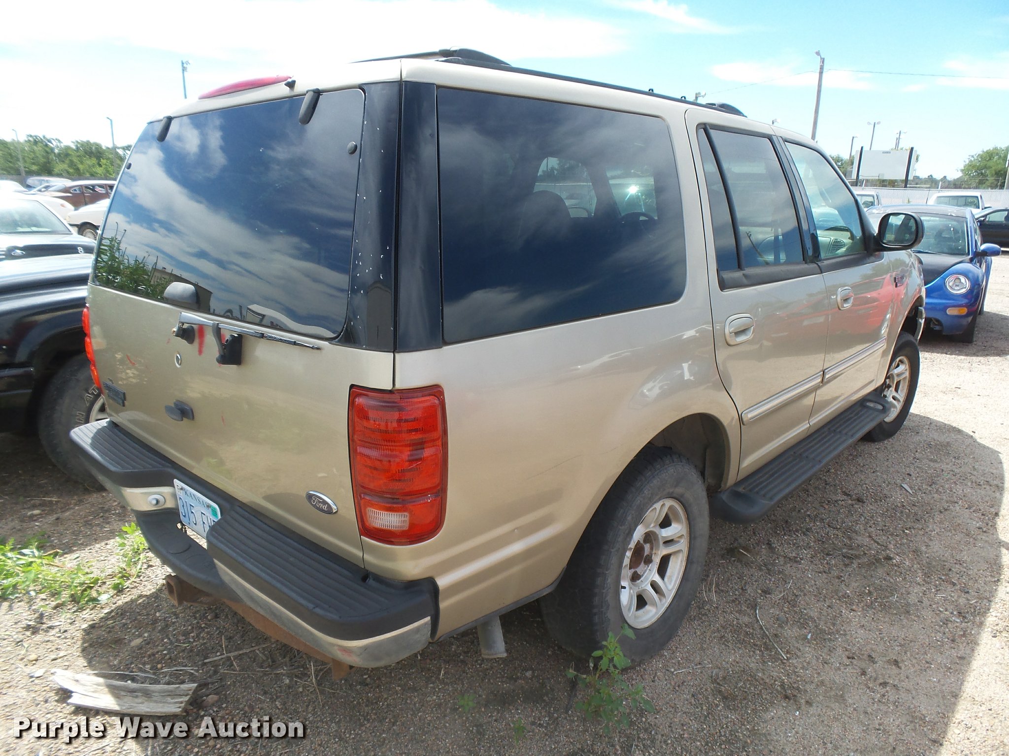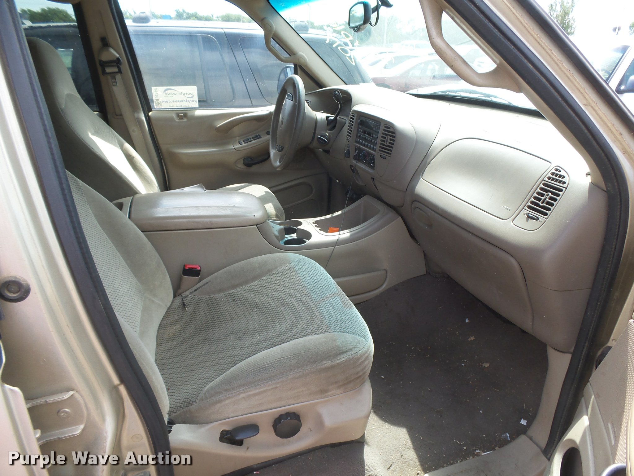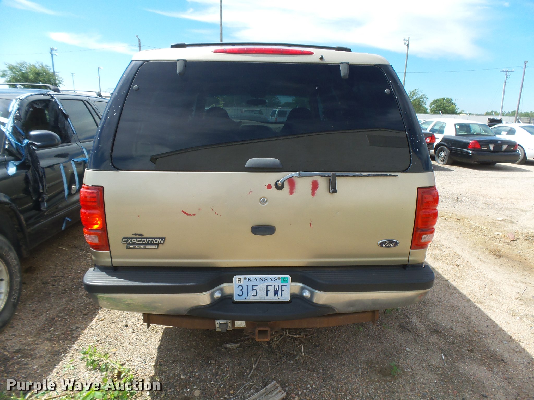 Purple Wave is selling a used Passenger Vehicle in Kansas. This item is a 2000 Ford Expedition XLT SUV with the following: Unknown miles on odometer, 5.4L V8 SOHC 16V gas engine, Automatic transmission, Heat, Tilt, Cruise, AM/FM/cassette, Power windows, locks, mirrors, and seat, Cloth interior, Front tow hooks, Running boards, Receiver hitch, Trailer wiring, P255/70R16 tires, No keys, Unknown operating condition