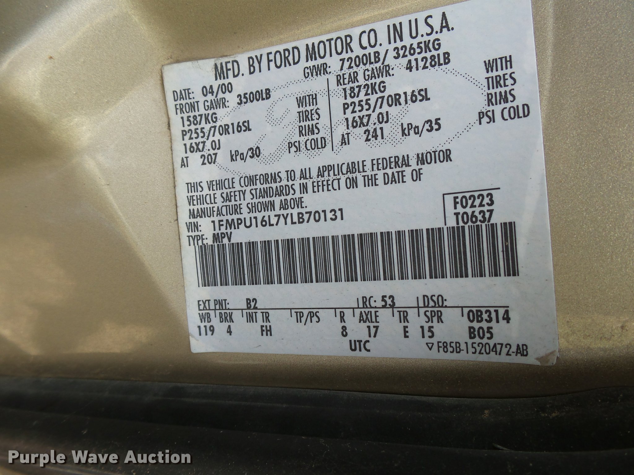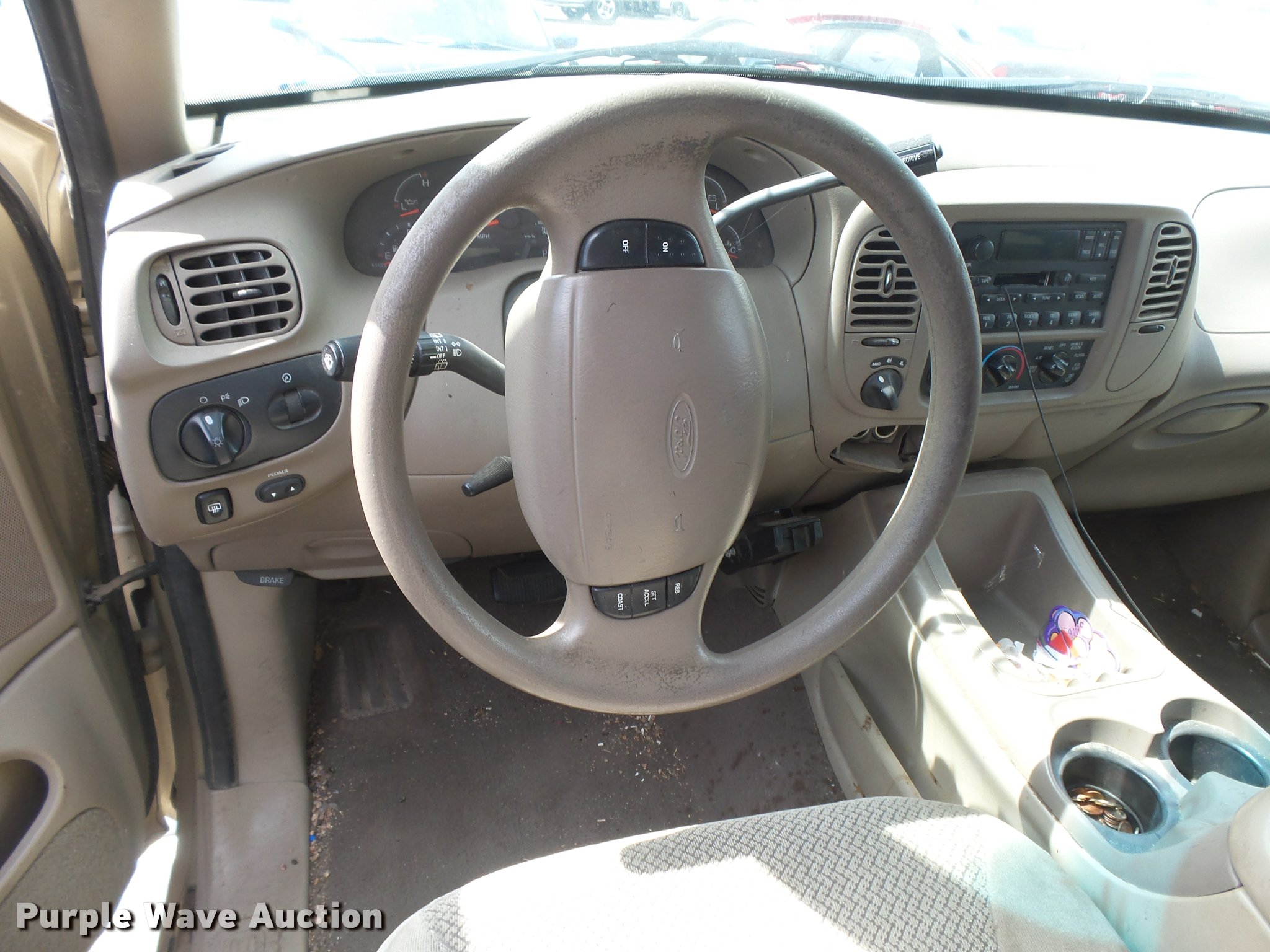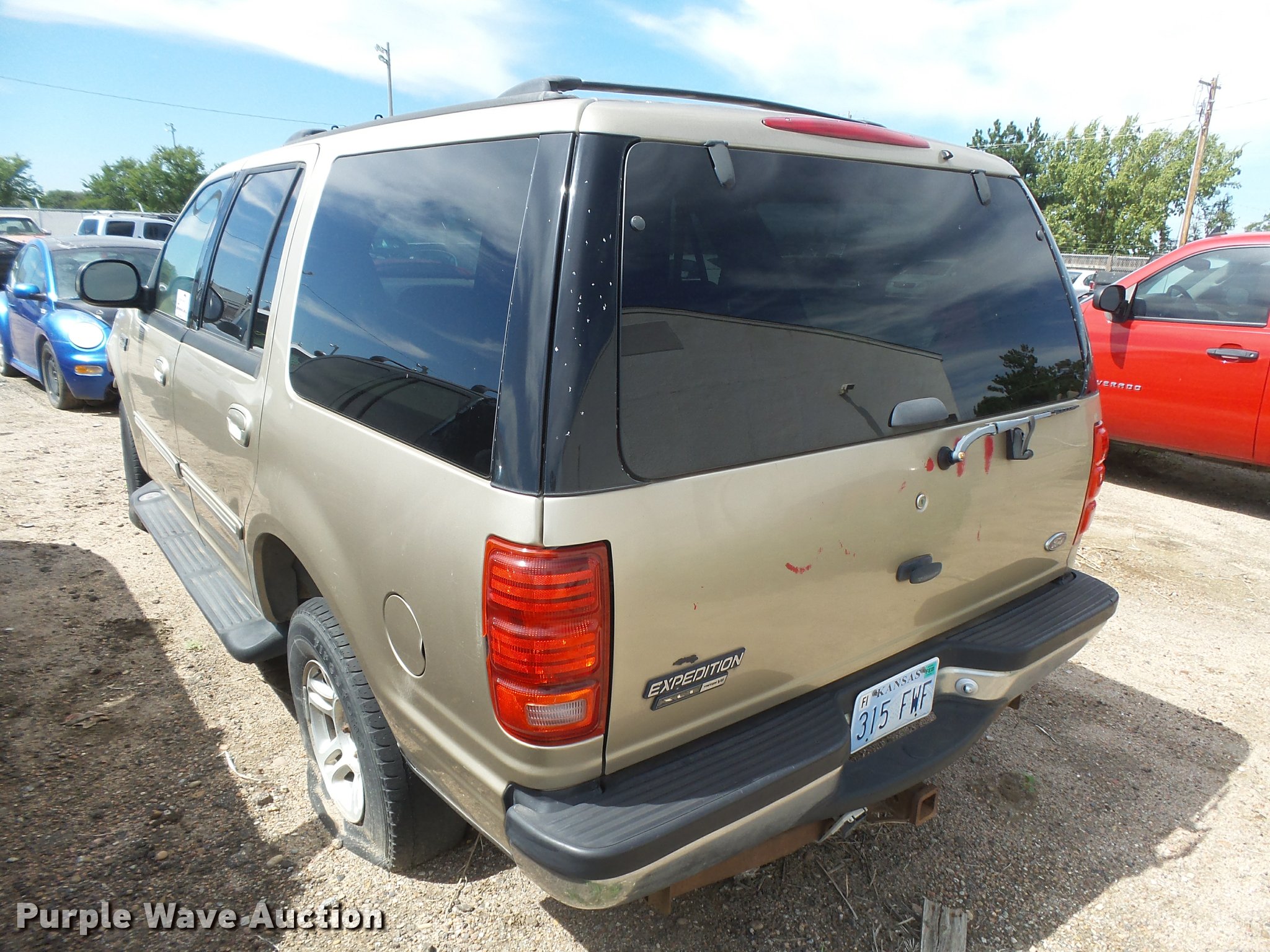 Purple Wave is selling a used Passenger Vehicle in Kansas. This item is a 2000 Ford Expedition XLT SUV with the following: Unknown miles on odometer, 5.4L V8 SOHC 16V gas engine, Automatic transmission, Heat, Tilt, Cruise, AM/FM/cassette, Power windows, locks, mirrors, and seat, Cloth interior, Front tow hooks, Running boards, Receiver hitch, Trailer wiring, P255/70R16 tires, No keys, Unknown operating condition