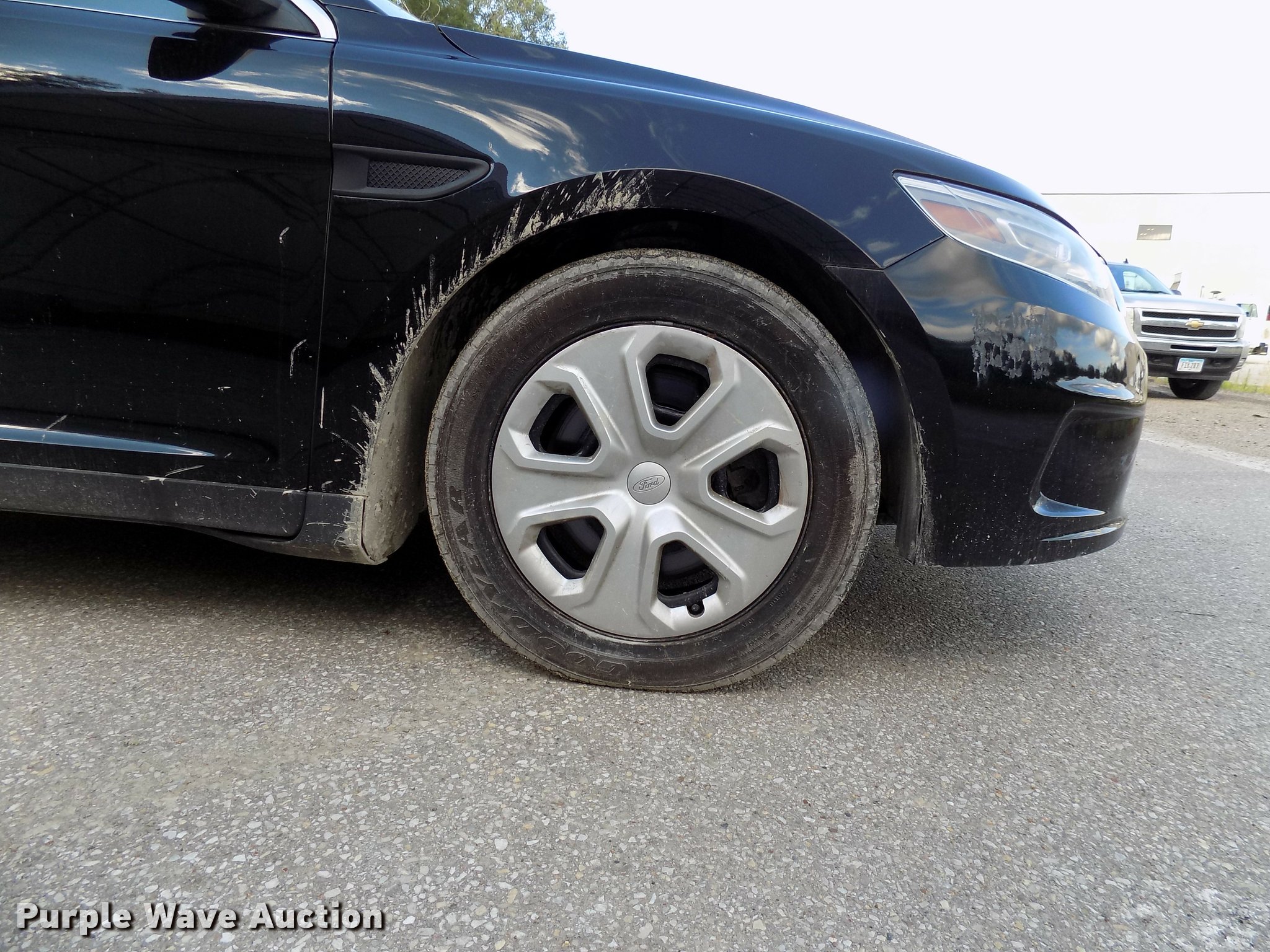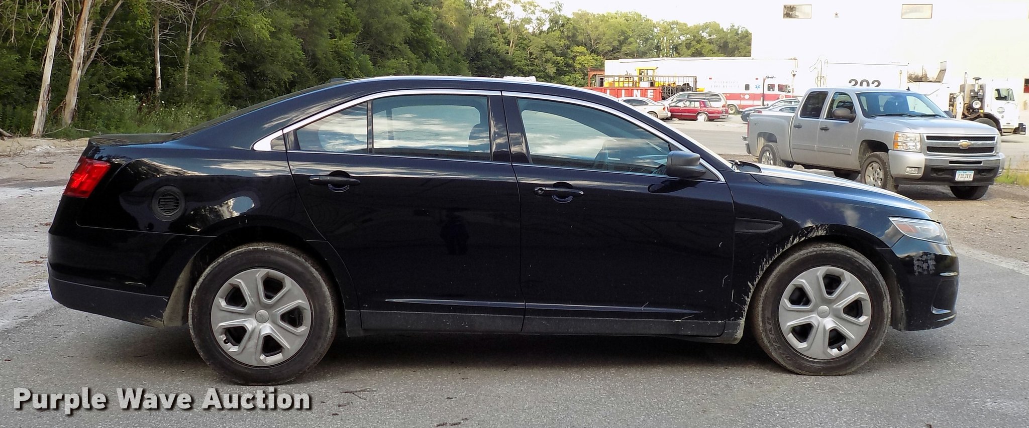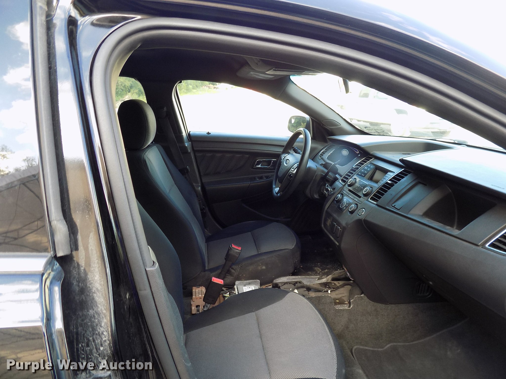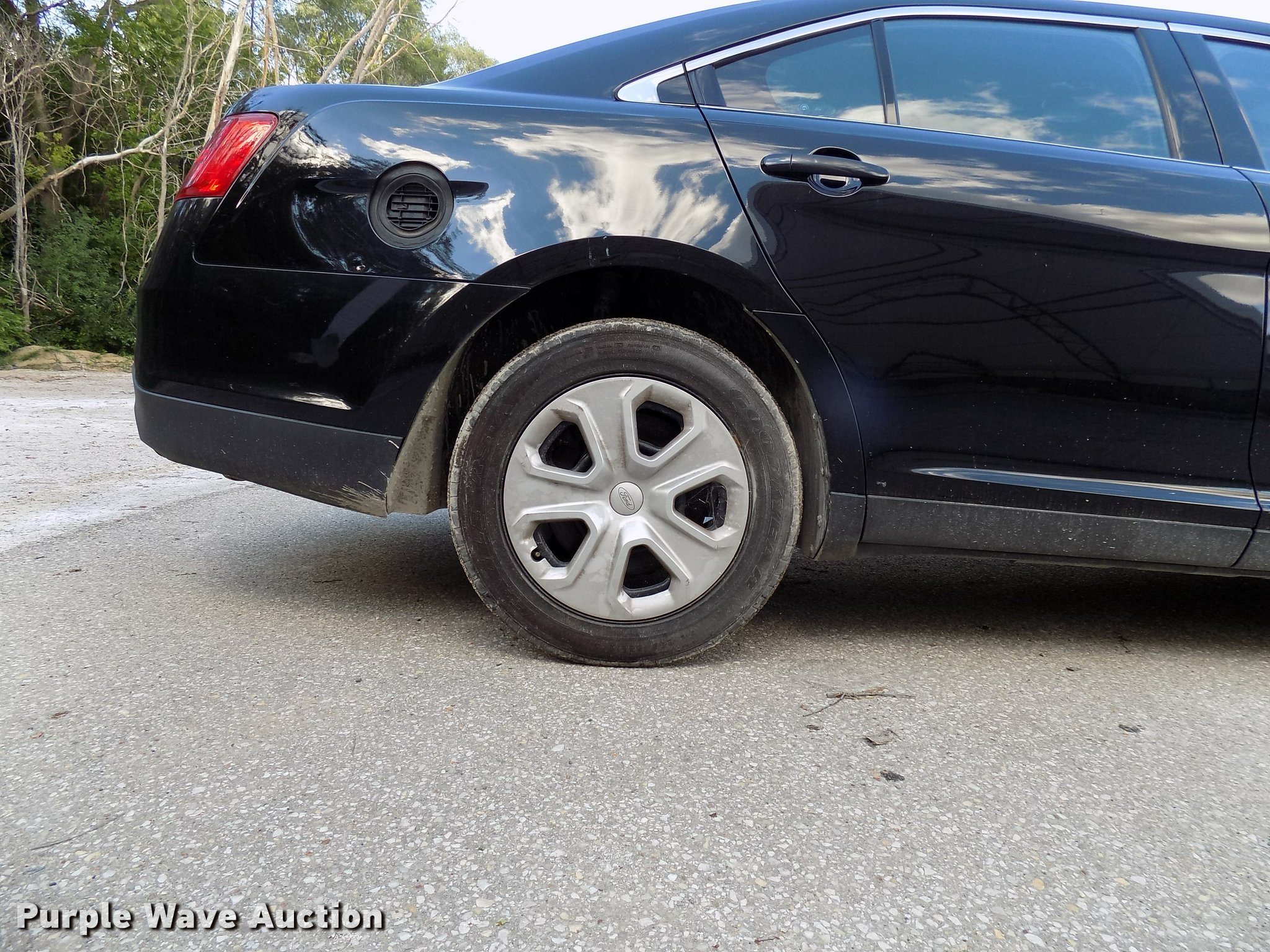 Purple Wave is selling a used Passenger Vehicle in Iowa. This item is a 2013 Ford Taurus Police Interceptor with the following: 132,976 miles on odometer, 3.5L V6 DOHC 24V gas engine, Automatic transmission, AC and heat, Tilt, Cruise, AM/FM/CD, Power windows, locks, mirrors, and seat, 245/55R18 tires, No gas cap, Hail damage