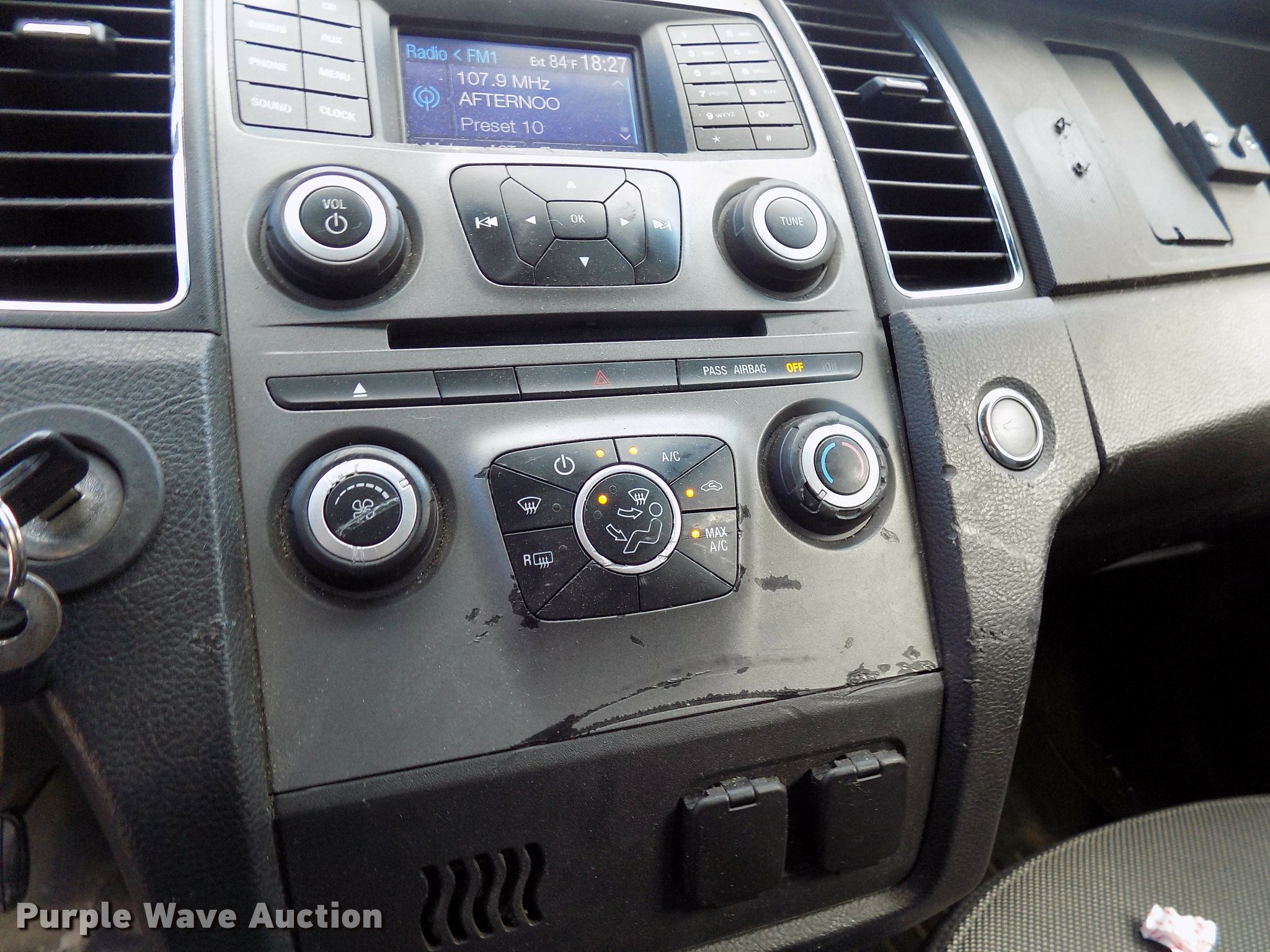 Purple Wave is selling a used Passenger Vehicle in Iowa. This item is a 2013 Ford Taurus Police Interceptor with the following: 78,963 miles on odometer, 3.5L V6 DOHC 24V gas engine, Automatic transmission, All wheel drive, AC and heat, Tilt, Cruise, AM/FM/CD, Power windows, locks, mirrors, and seat, Cloth interior, 245/55R18 tires, Hail damage