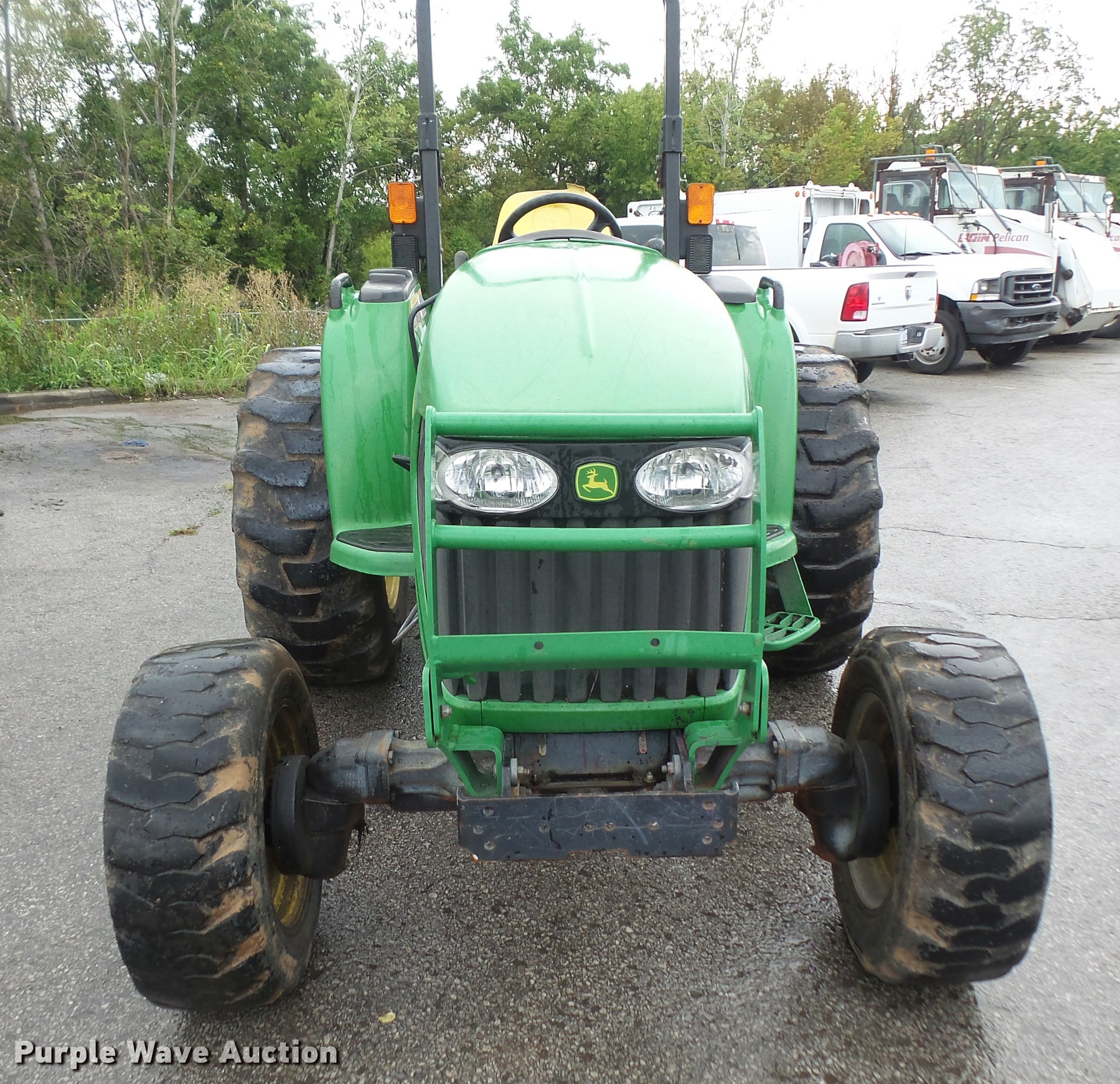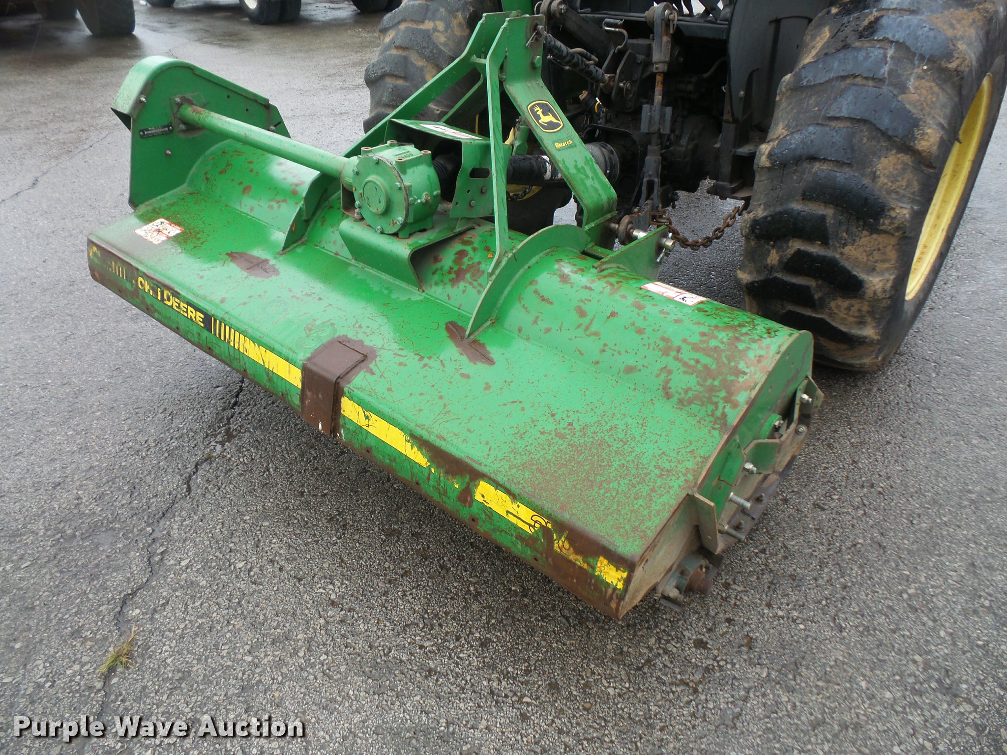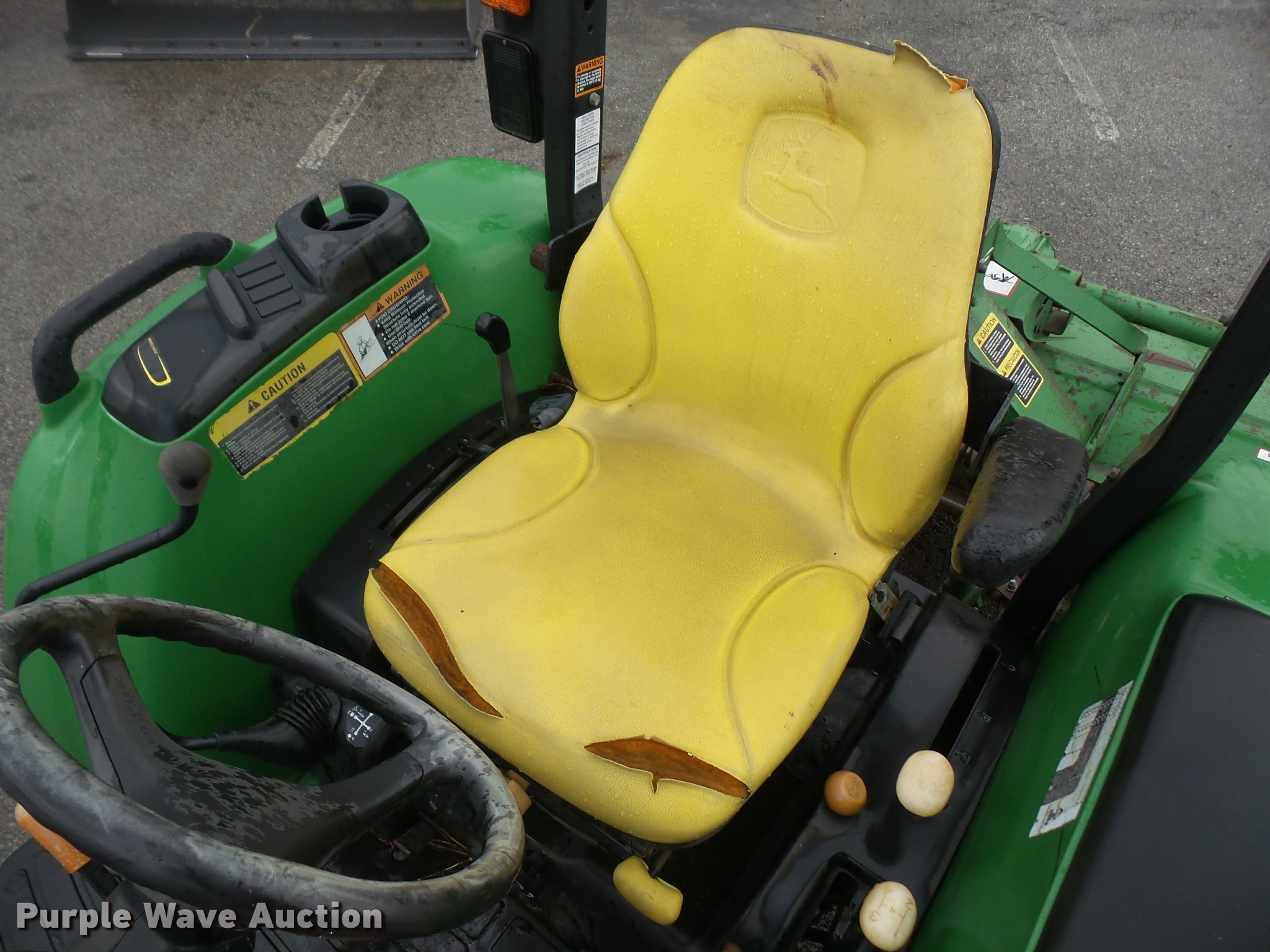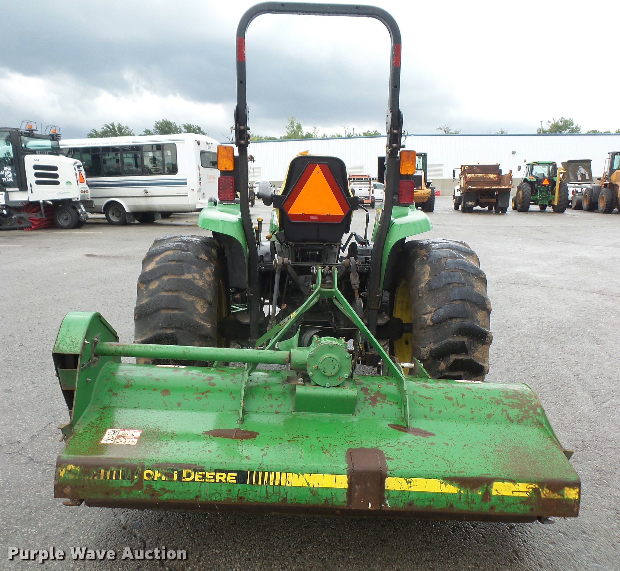 Purple Wave is selling a used Tractor in Kansas. This item is a 2005 John Deere 4120 MFWD tractor with the following: 3,261 hours on meter, John Deere 2.4L four cylinder turbo diesel engine, 35 HP, Power reverser transmission, 12F-12R gears, Suspension seat, Three point, Top link, 540 PTO, (2) front hydraulic remote sets, John Deere 370 flail mower, 540 PTO, Three point, 10-16.5 front tires, Serial LV4120P122447