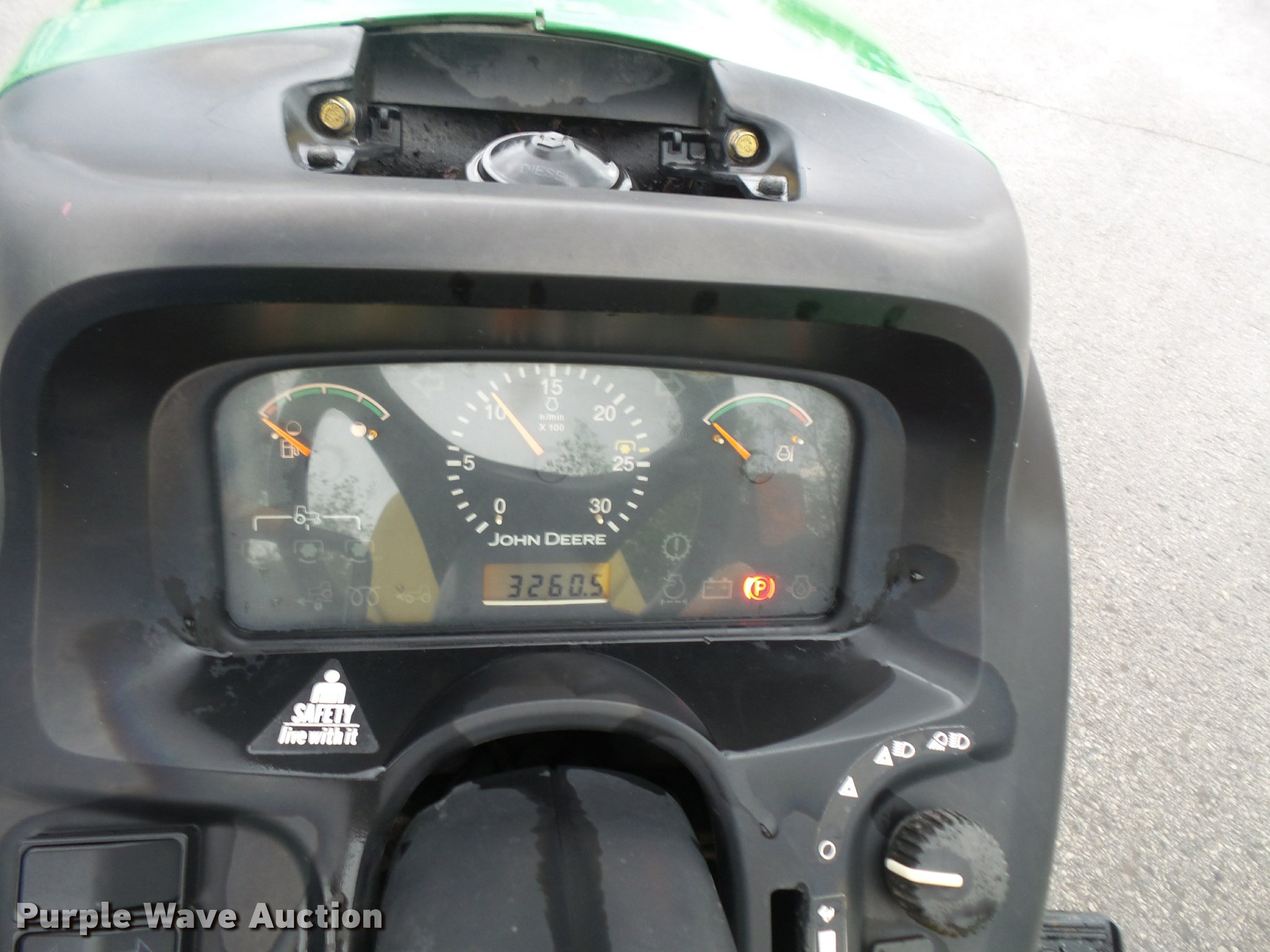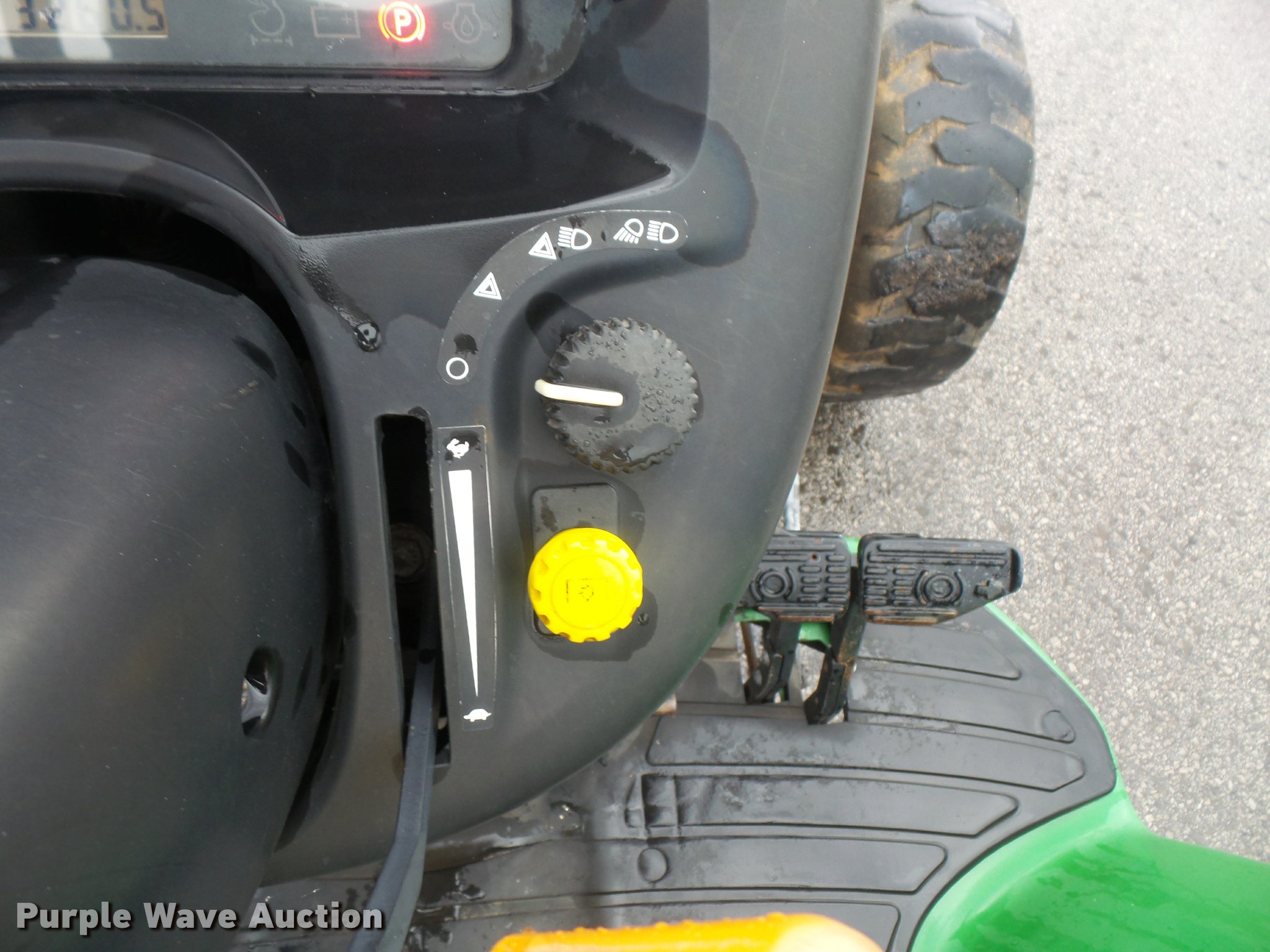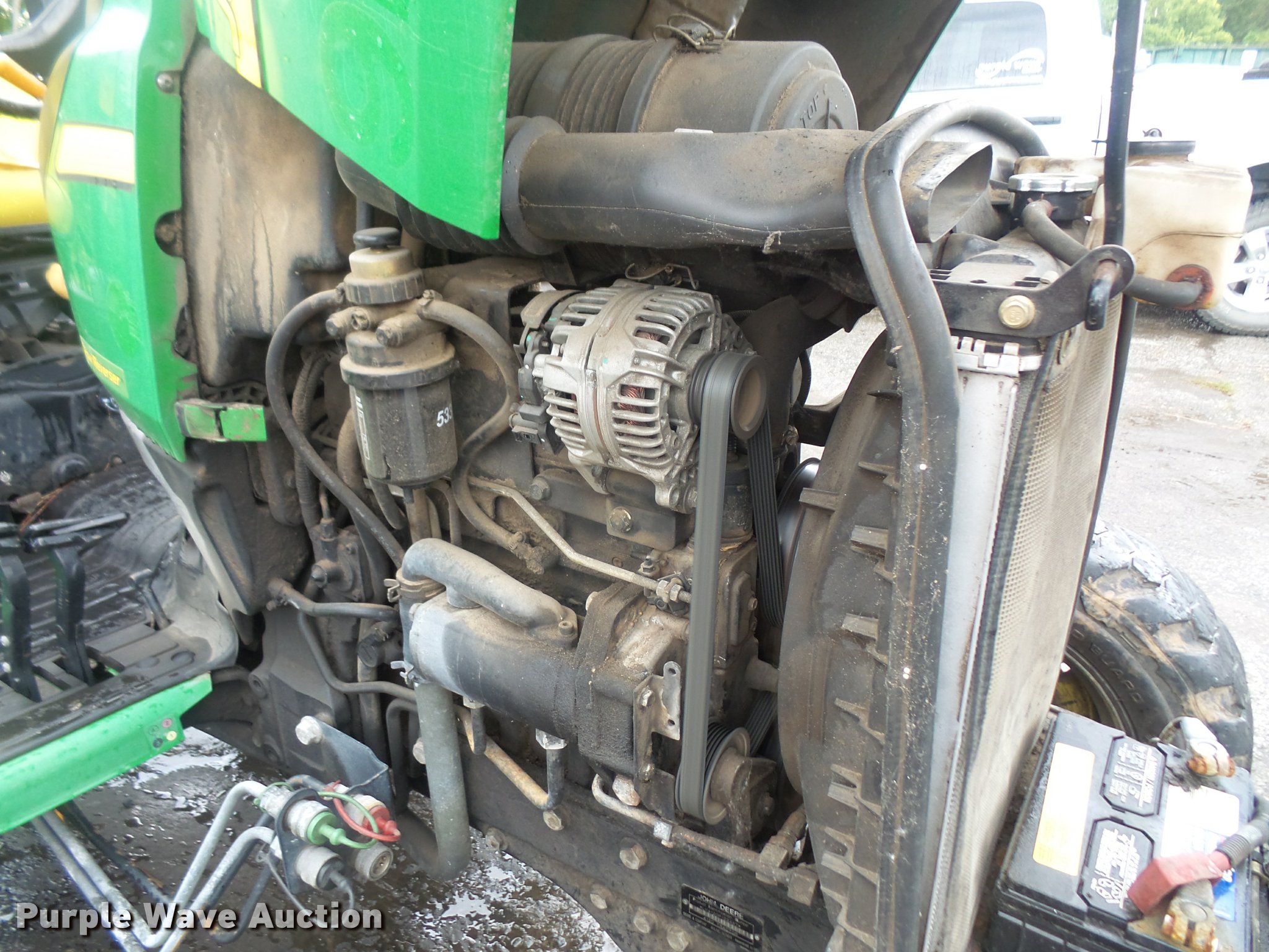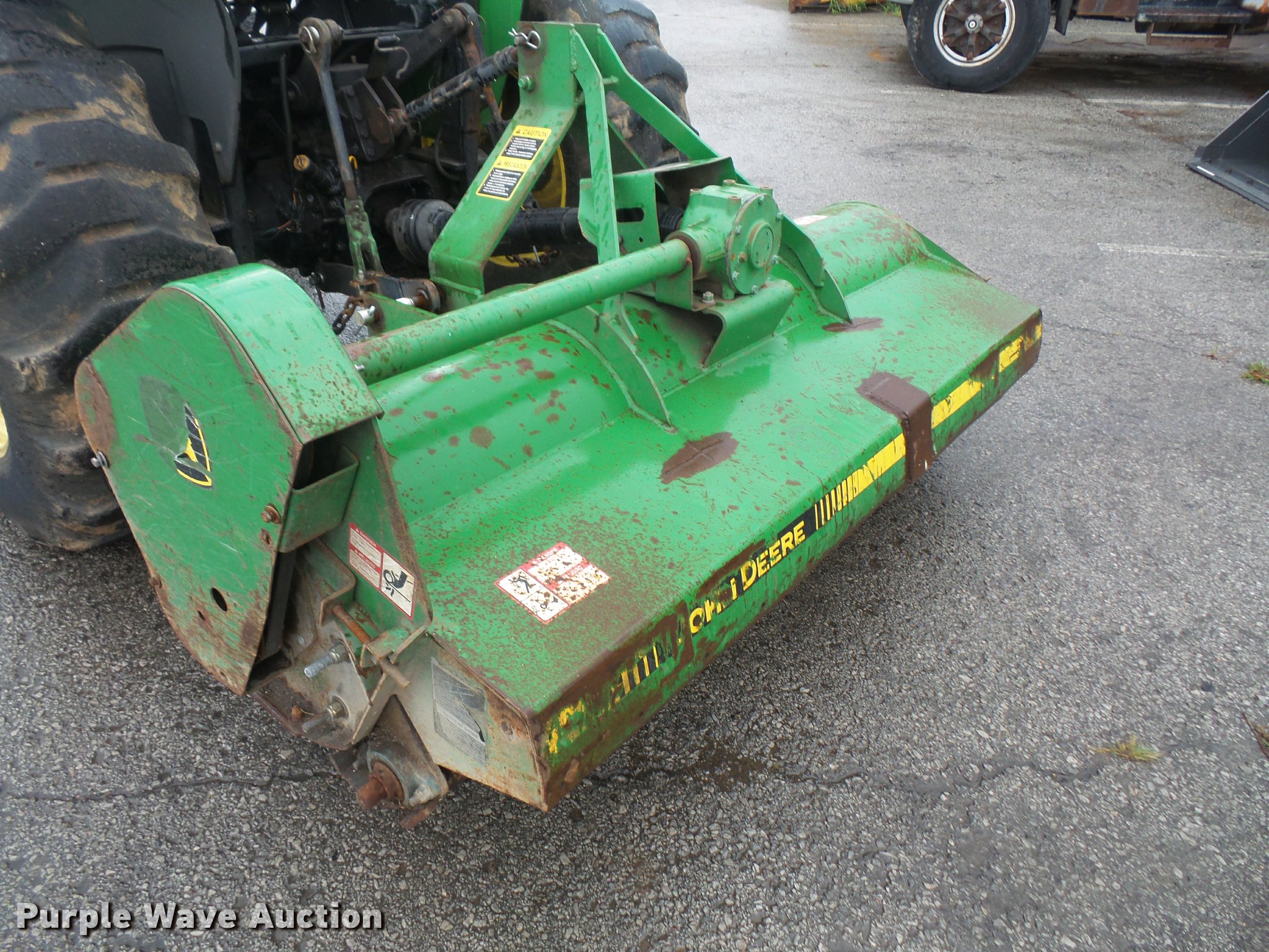 Purple Wave is selling a used Tractor in Kansas. This item is a 2005 John Deere 4120 MFWD tractor with the following: 3,261 hours on meter, John Deere 2.4L four cylinder turbo diesel engine, 35 HP, Power reverser transmission, 12F-12R gears, Suspension seat, Three point, Top link, 540 PTO, (2) front hydraulic remote sets, John Deere 370 flail mower, 540 PTO, Three point, 10-16.5 front tires, Serial LV4120P122447