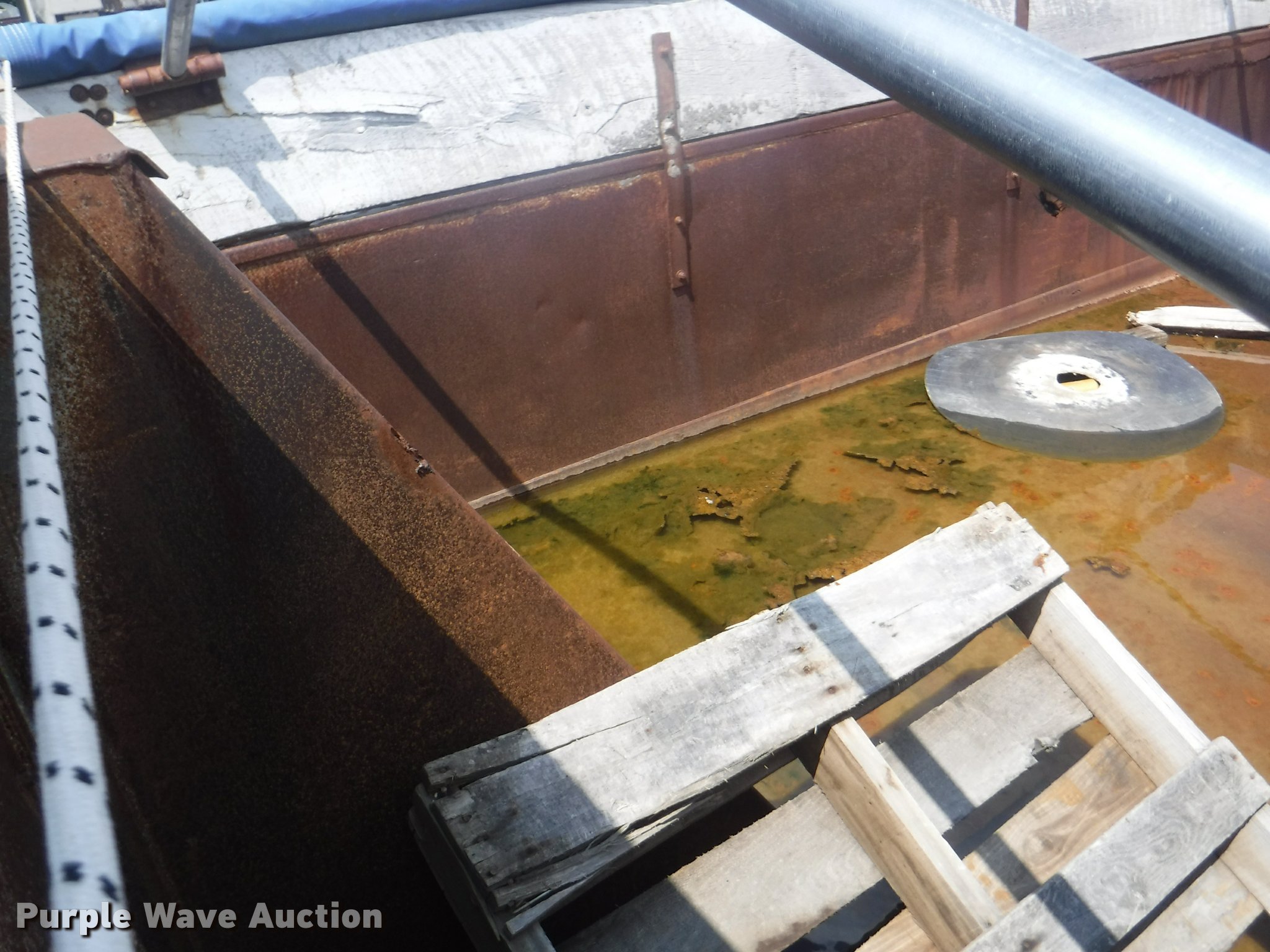 Dump bed. 15'L x 96"W, 32" side height, 14" side board height, Tarp Holes in tarp. Pottawatomie County. 405 Campbell St. Westmoreland, KS 66549