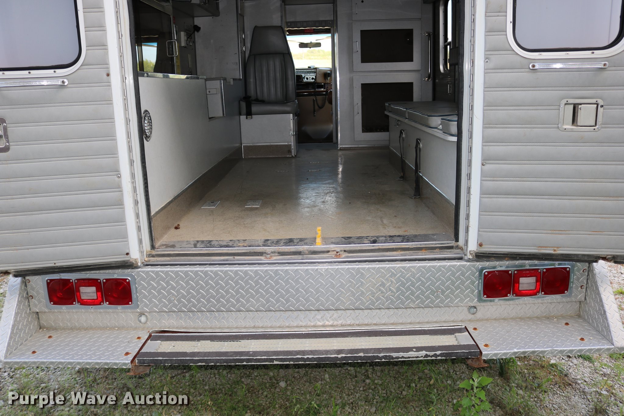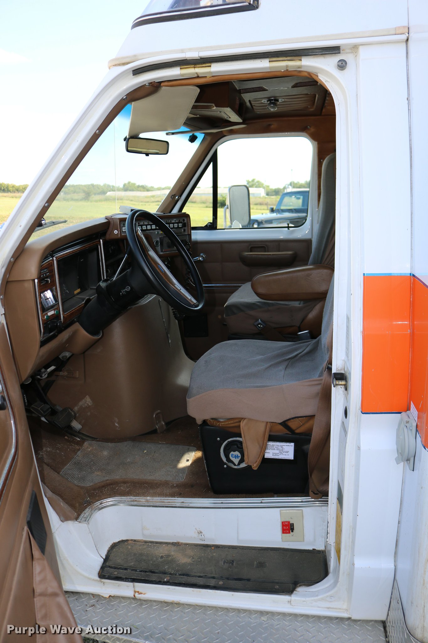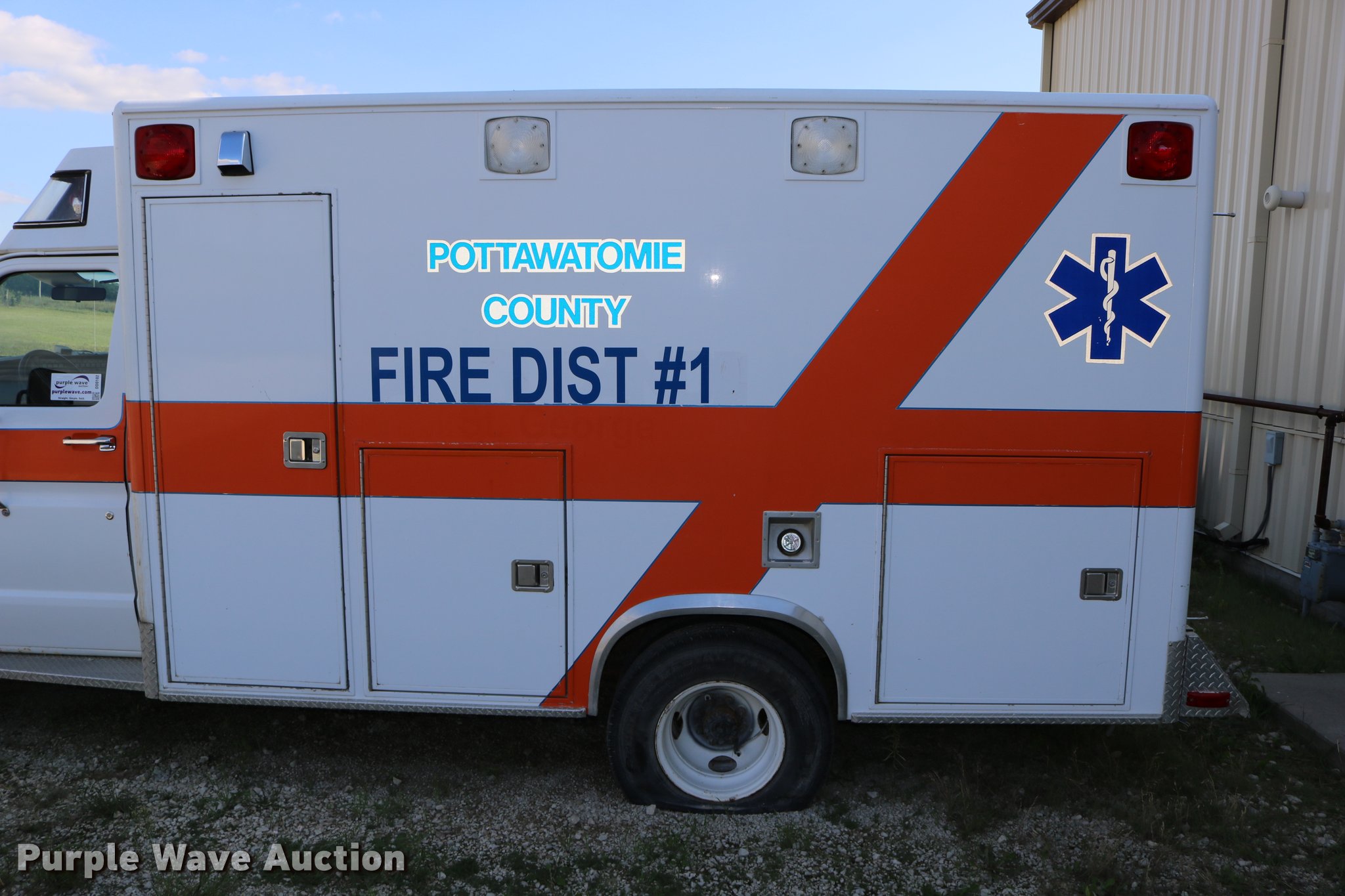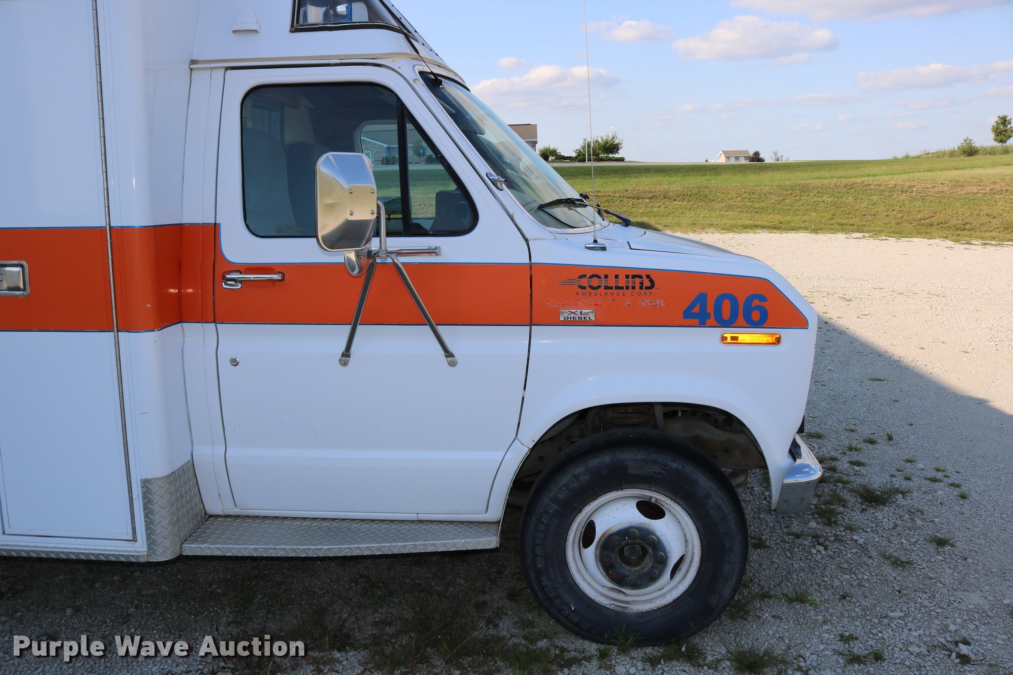 Purple Wave is selling a used Fire Truck or Emergency Vehicle in Kansas. This item is a 1988 Ford Econoline E350 ambulance with the following: 15,999 miles on odometer, 7.3L V8 OHV 16V diesel engine, Automatic transmission, Single axle, AC and heat, AM/FM, Emergency lights and sirens, Block heater, Collins ambulance body, (3) oxygen hookups, 138" wheelbase, 215/85R16 tires, GVWR 10,500 lbs, Bad valve on driver rear duals, Weak battery, Will not start, Unknown operating condition