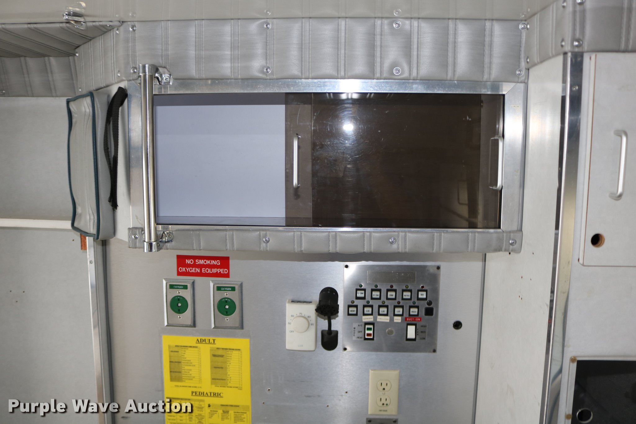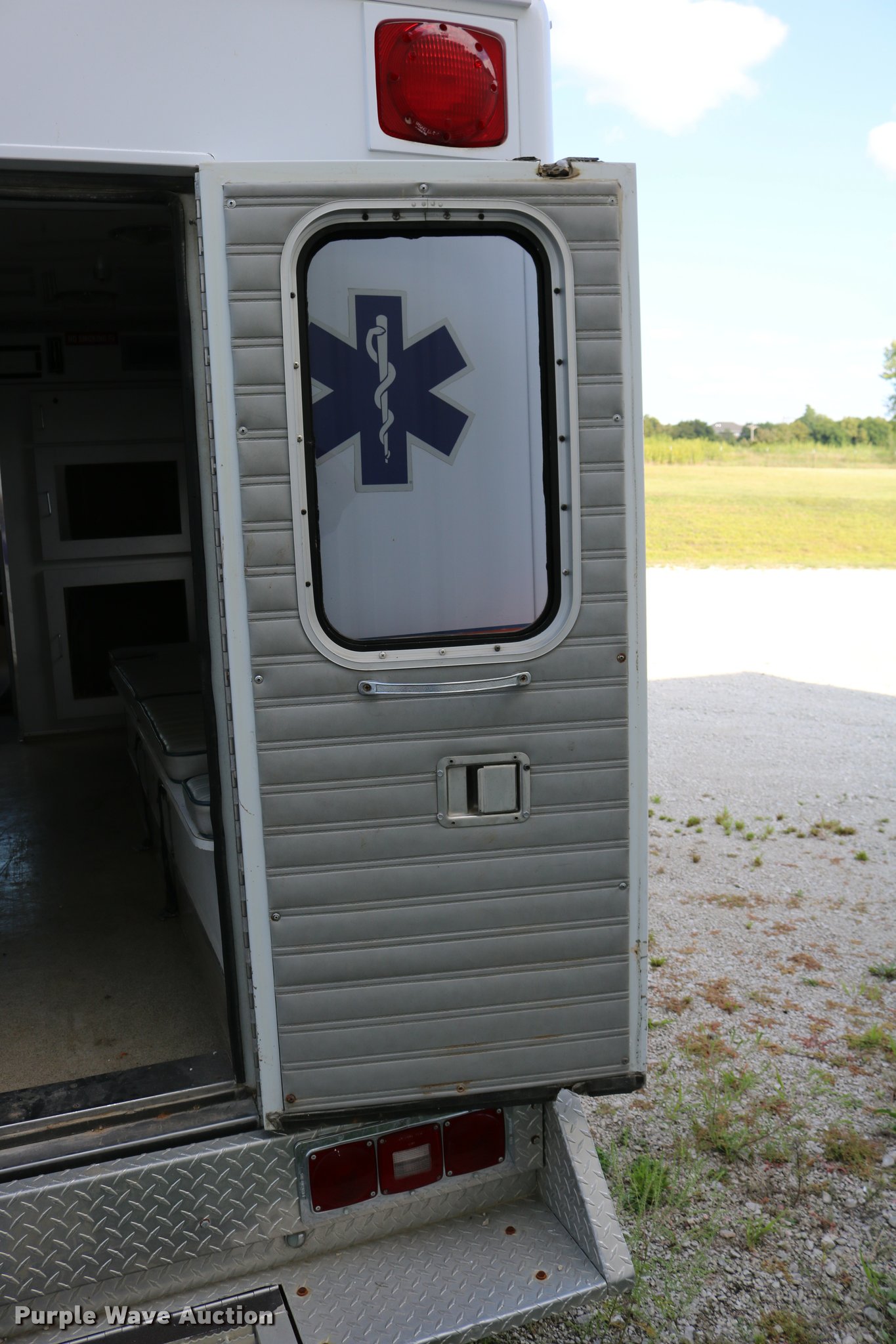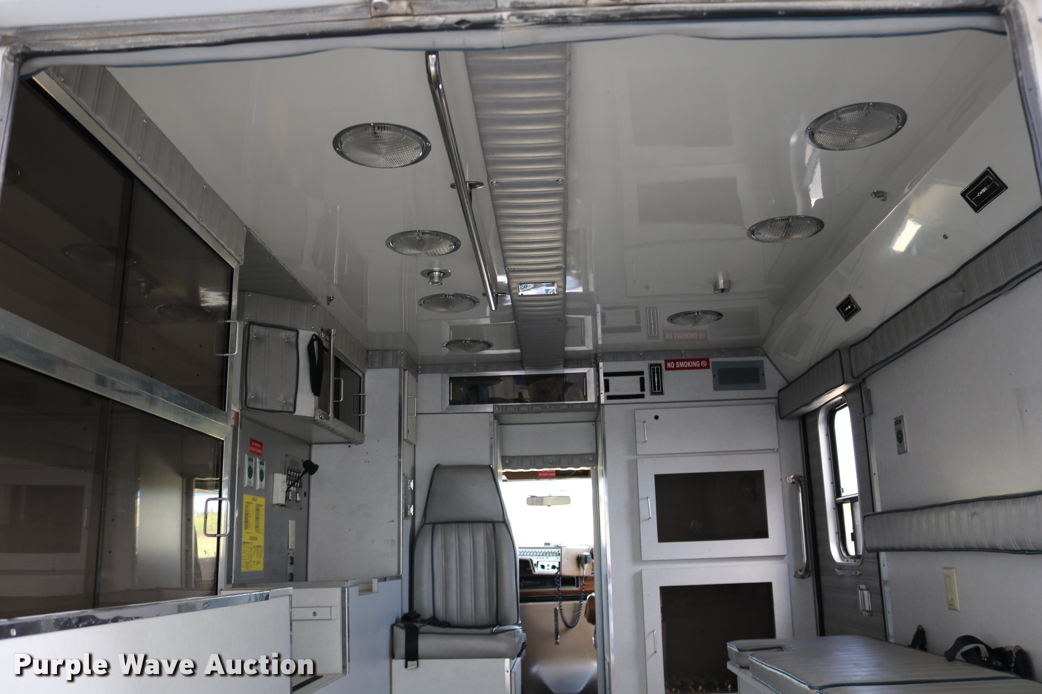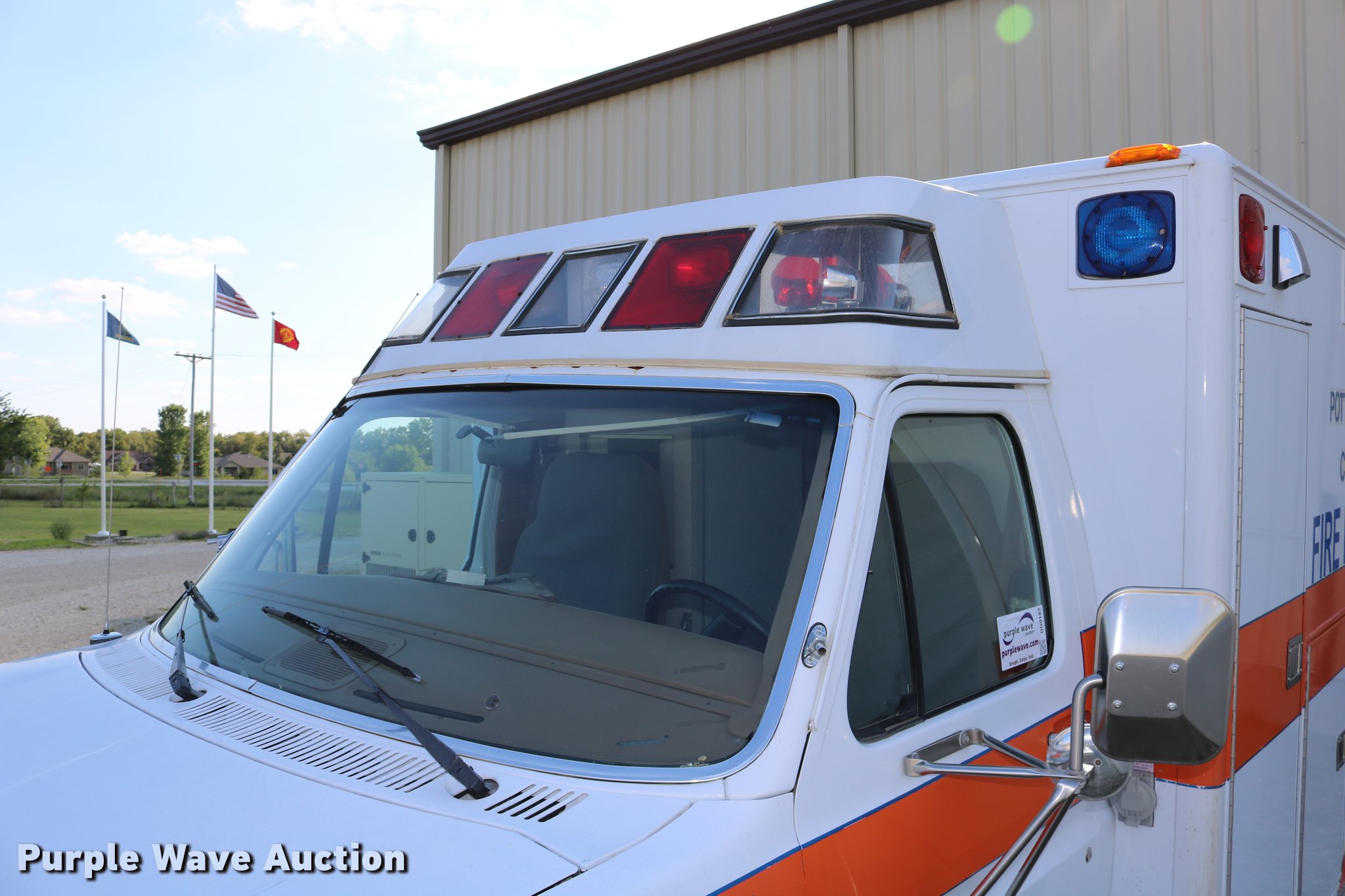 Purple Wave is selling a used Fire Truck or Emergency Vehicle in Kansas. This item is a 1988 Ford Econoline E350 ambulance with the following: 15,999 miles on odometer, 7.3L V8 OHV 16V diesel engine, Automatic transmission, Single axle, AC and heat, AM/FM, Emergency lights and sirens, Block heater, Collins ambulance body, (3) oxygen hookups, 138" wheelbase, 215/85R16 tires, GVWR 10,500 lbs, Bad valve on driver rear duals, Weak battery, Will not start, Unknown operating condition