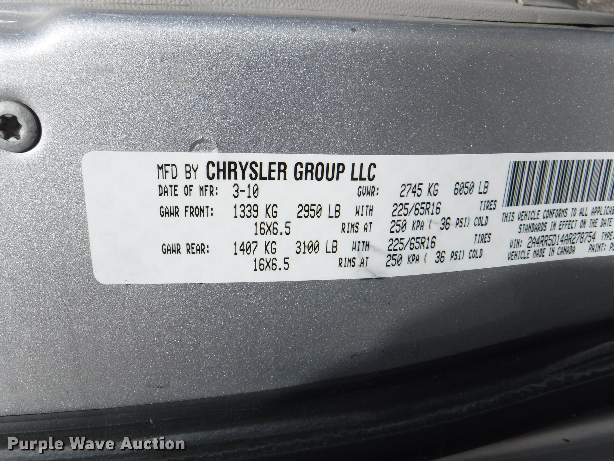 Purple Wave is selling a used Passenger Vehicle in Kansas. This item is a 2010 Chrysler Town & Country van with the following: 148,928 miles on odometer, Miles may vary, still in use, 3.8L V6 OHV 12V gas engine, Automatic transmission, AC and heat, Tilt, Cruise, AM/FM/CD, Power windows, locks, mirrors, and seat, Cloth interior, 225/65R16 tires, Decals will be removed prior to auction