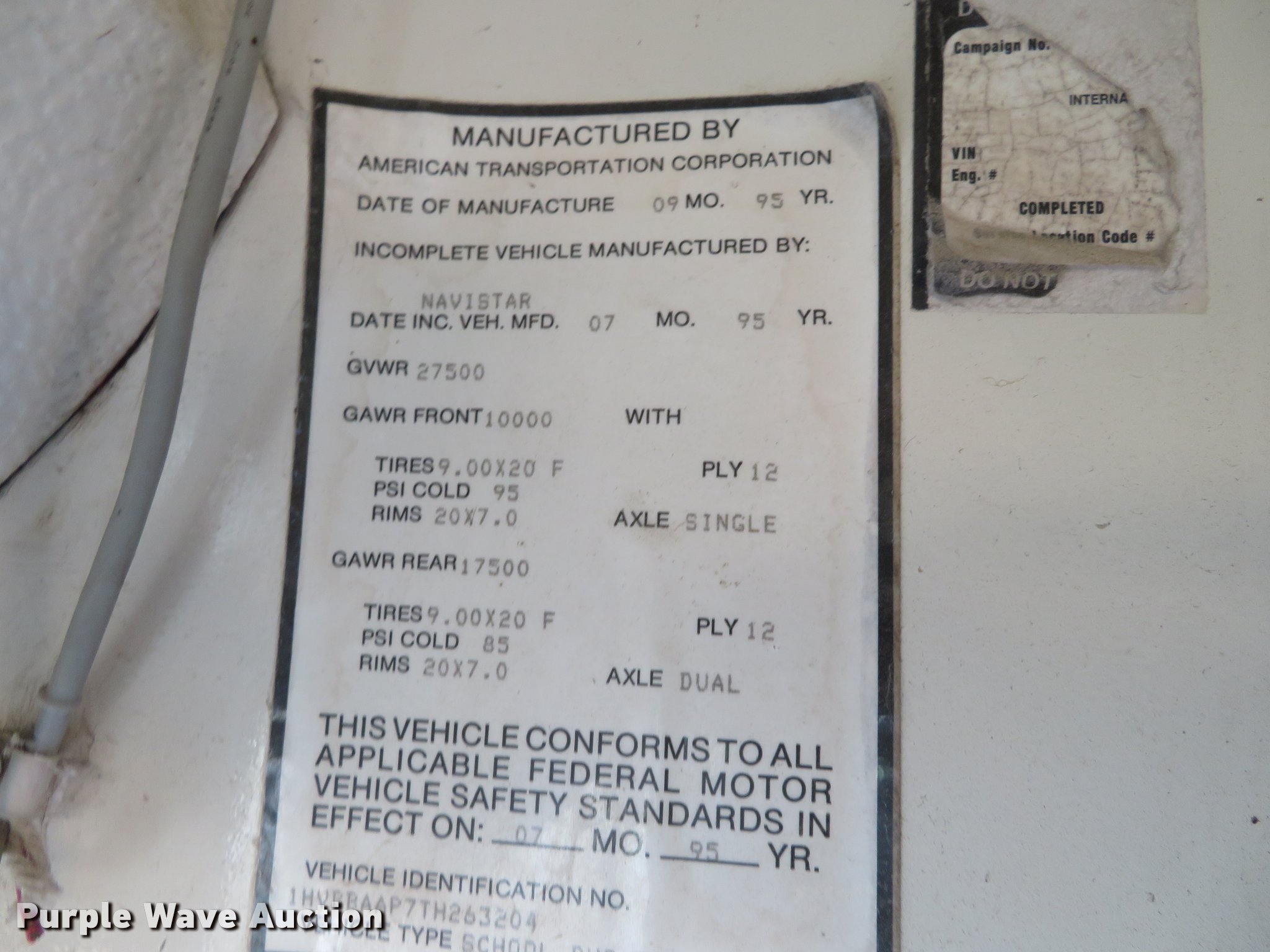 Purple Wave is selling a used Bus in Kansas. This item is a 1996 International 3800 school bus with the following: 122,776 miles on odometer, 8,697 hours on meter, International DT466 7.6L L6 diesel engine, No transmission, Manual windows and locks, Vinyl interior, 10R22.5 tires, Hole in engine block, Parts missing