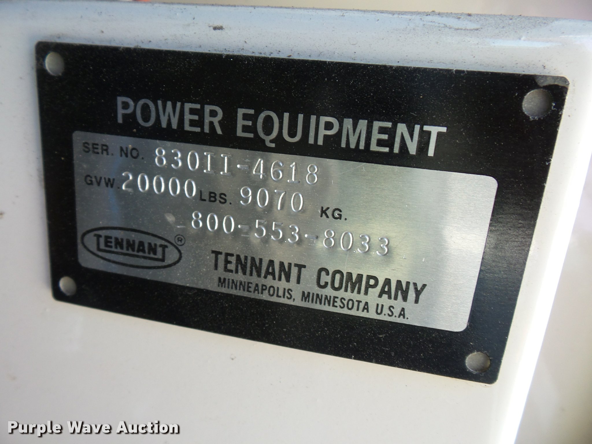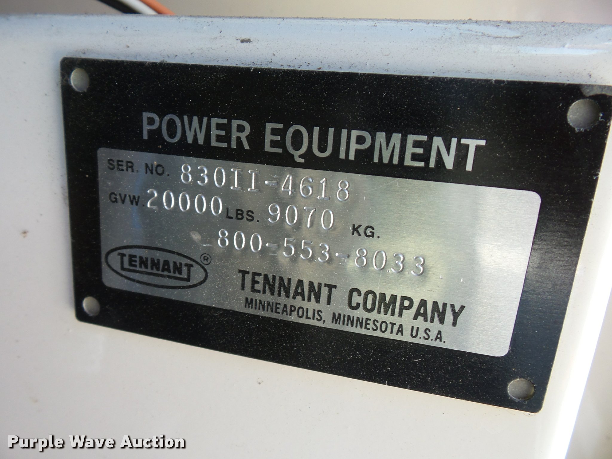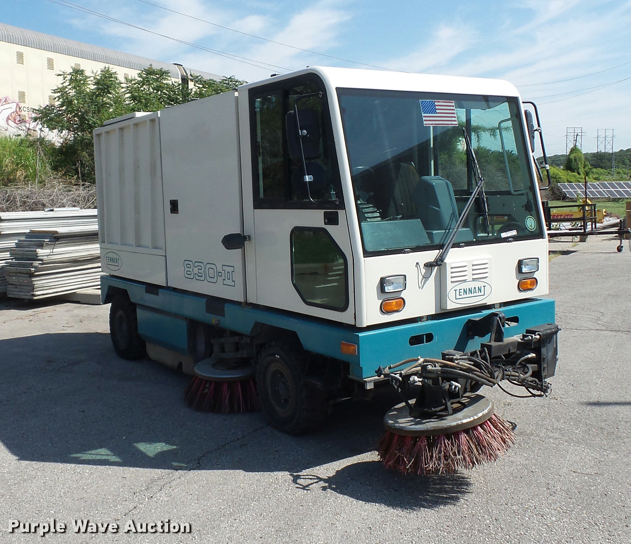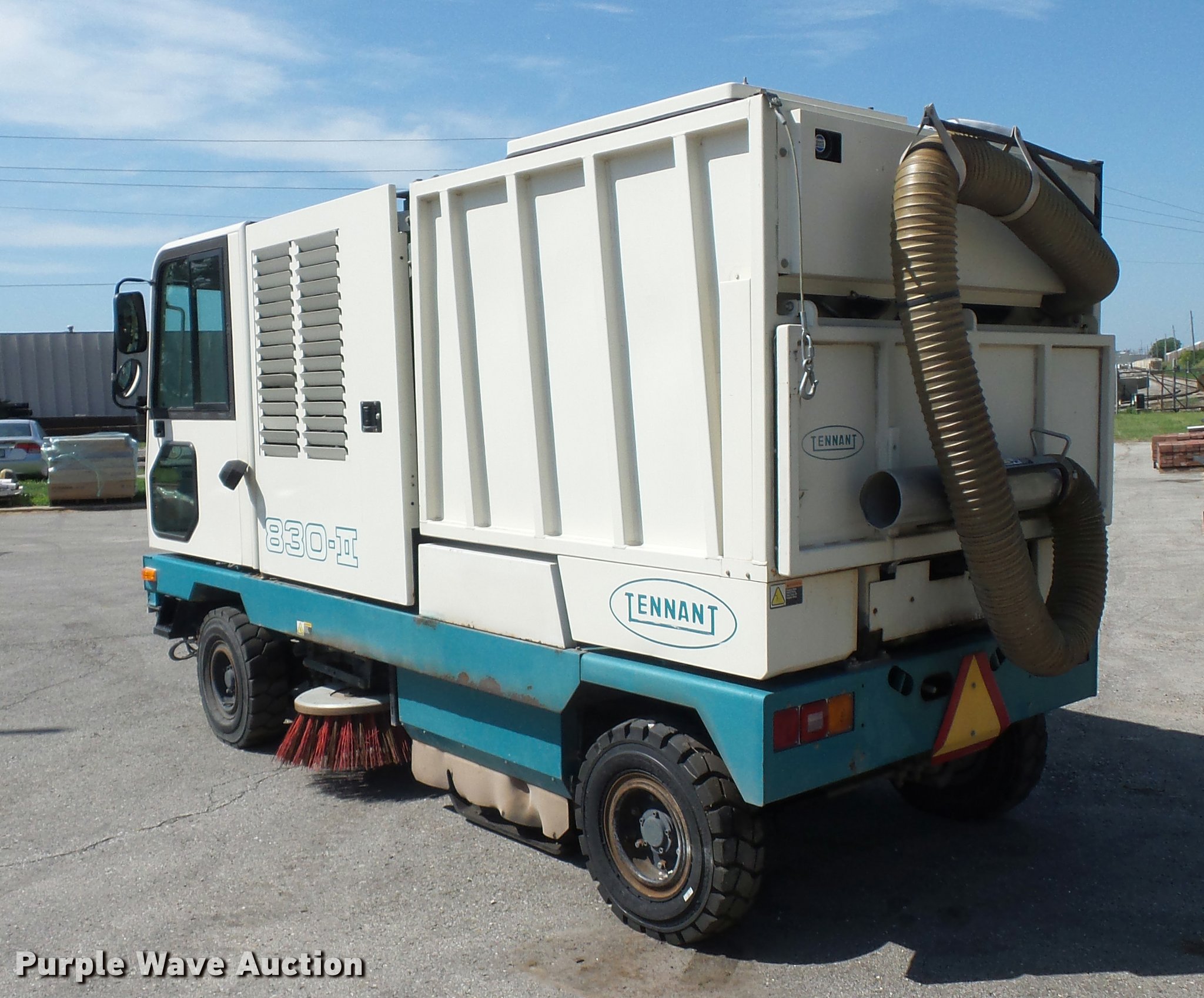 Purple Wave is selling a used Sweeper in Missouri. This item is a Tennant 830 Series II street sweeper with the following: 24,704 miles on odometer, 5,029 hours on meter, Diesel engine, Hydrostatic transmission, AC and heat, AM/FM, Hydraulic dump, 7-12 tires, GVW 20,000 lbs, Serial 830II-4618