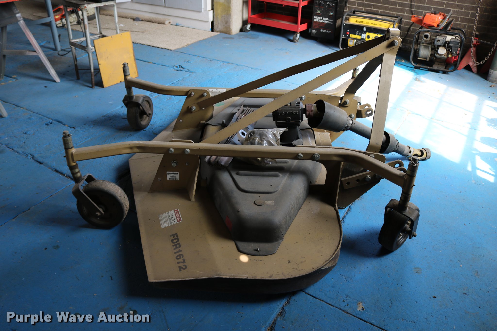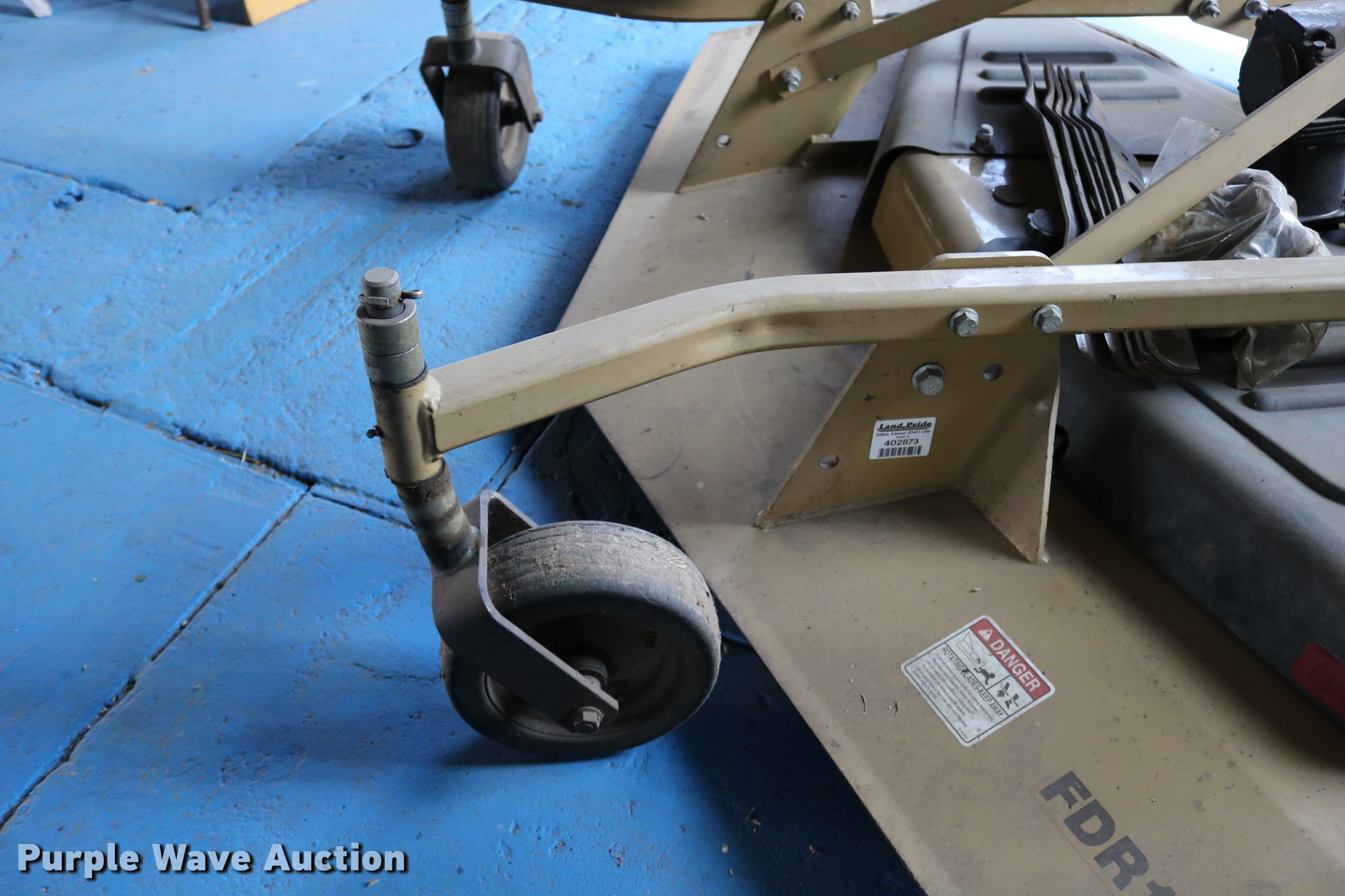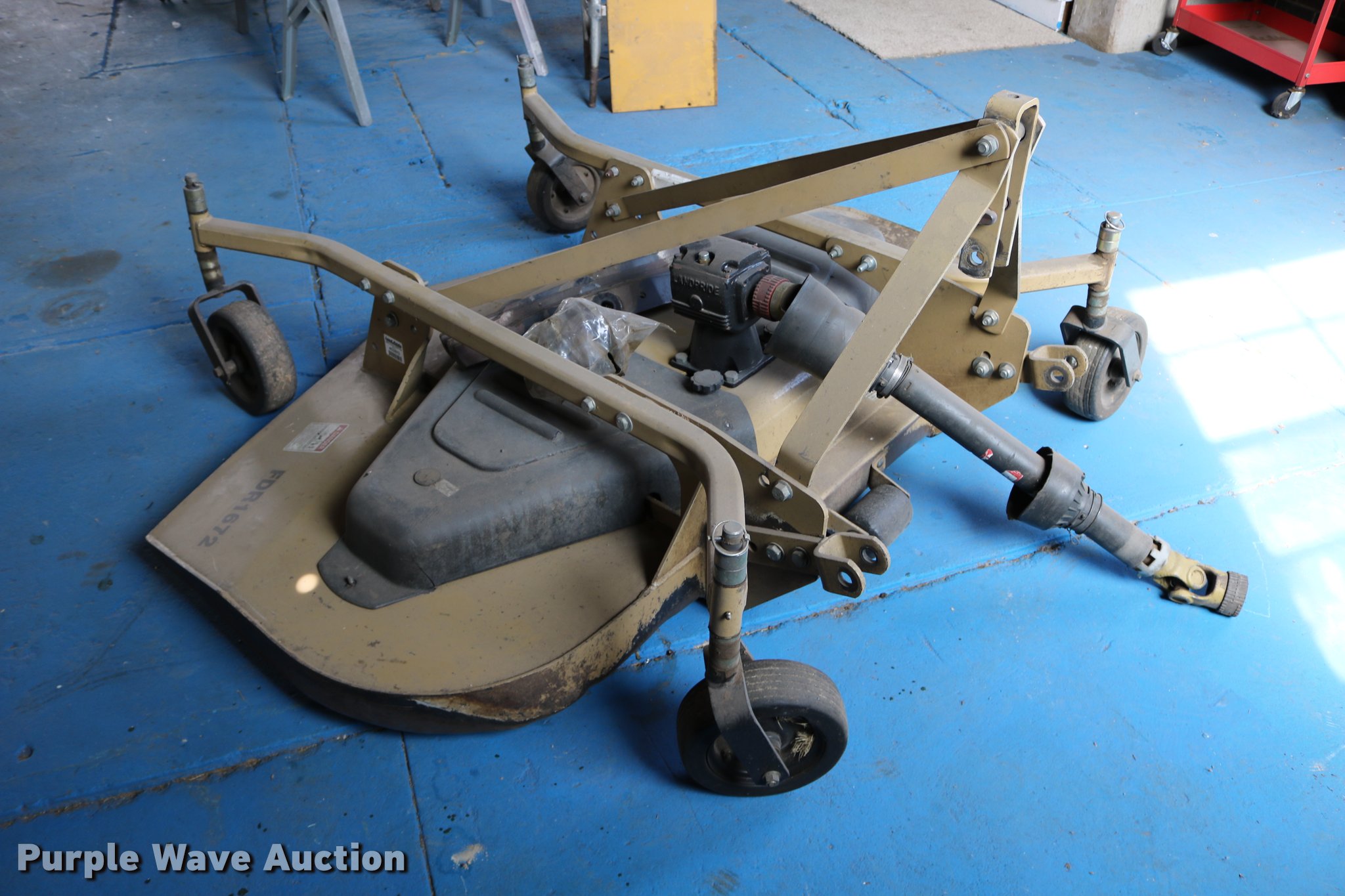 Purple Wave is selling a used Mower, Cutter, Shredder in Kansas. This item is a Land Pride FDR1672 finish mower with the following: 6'W, 540 PTO, Three point, 3 1/4" x 9 1/2" solid tires, (6) extra blades, Serial 402873