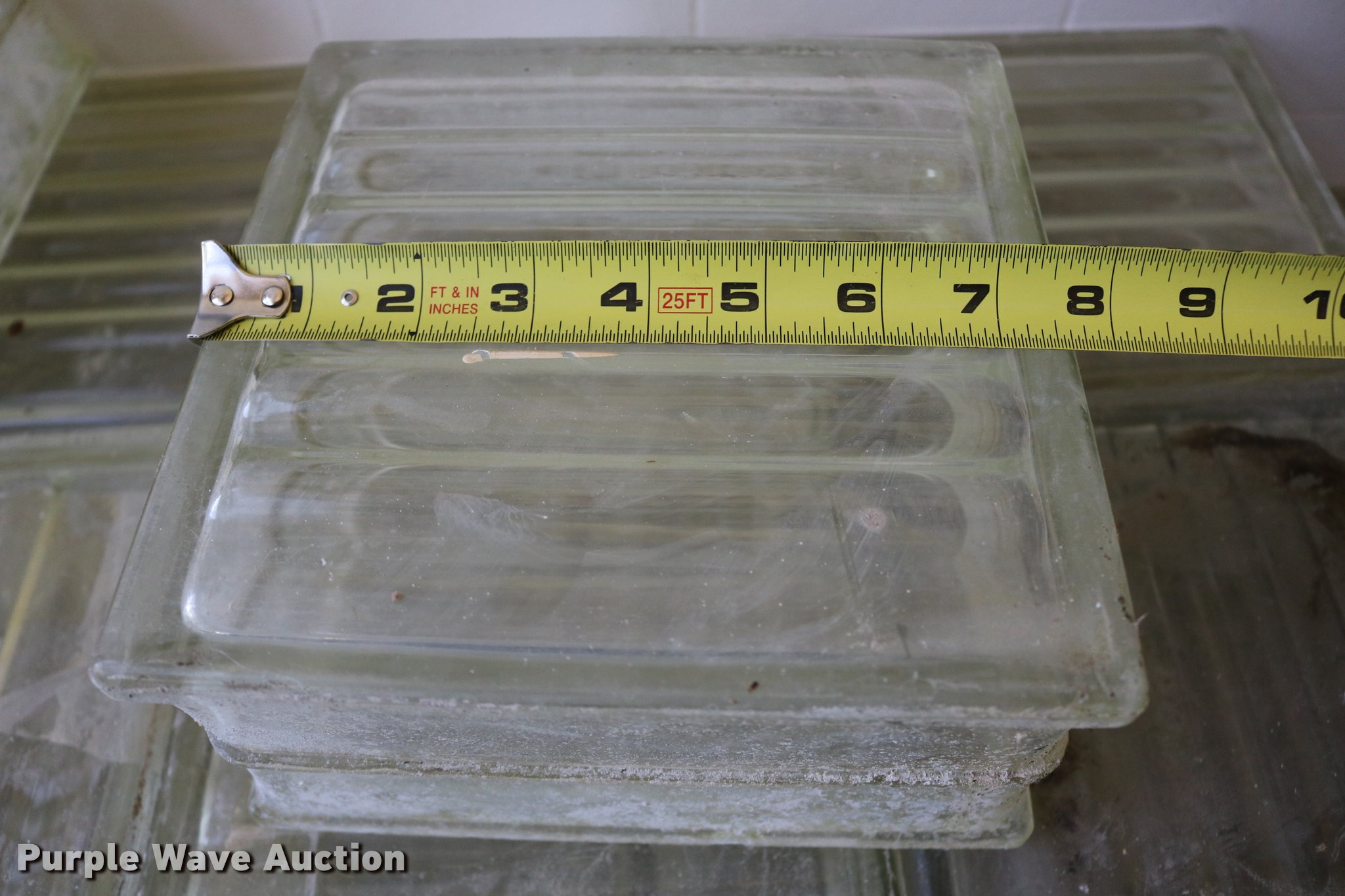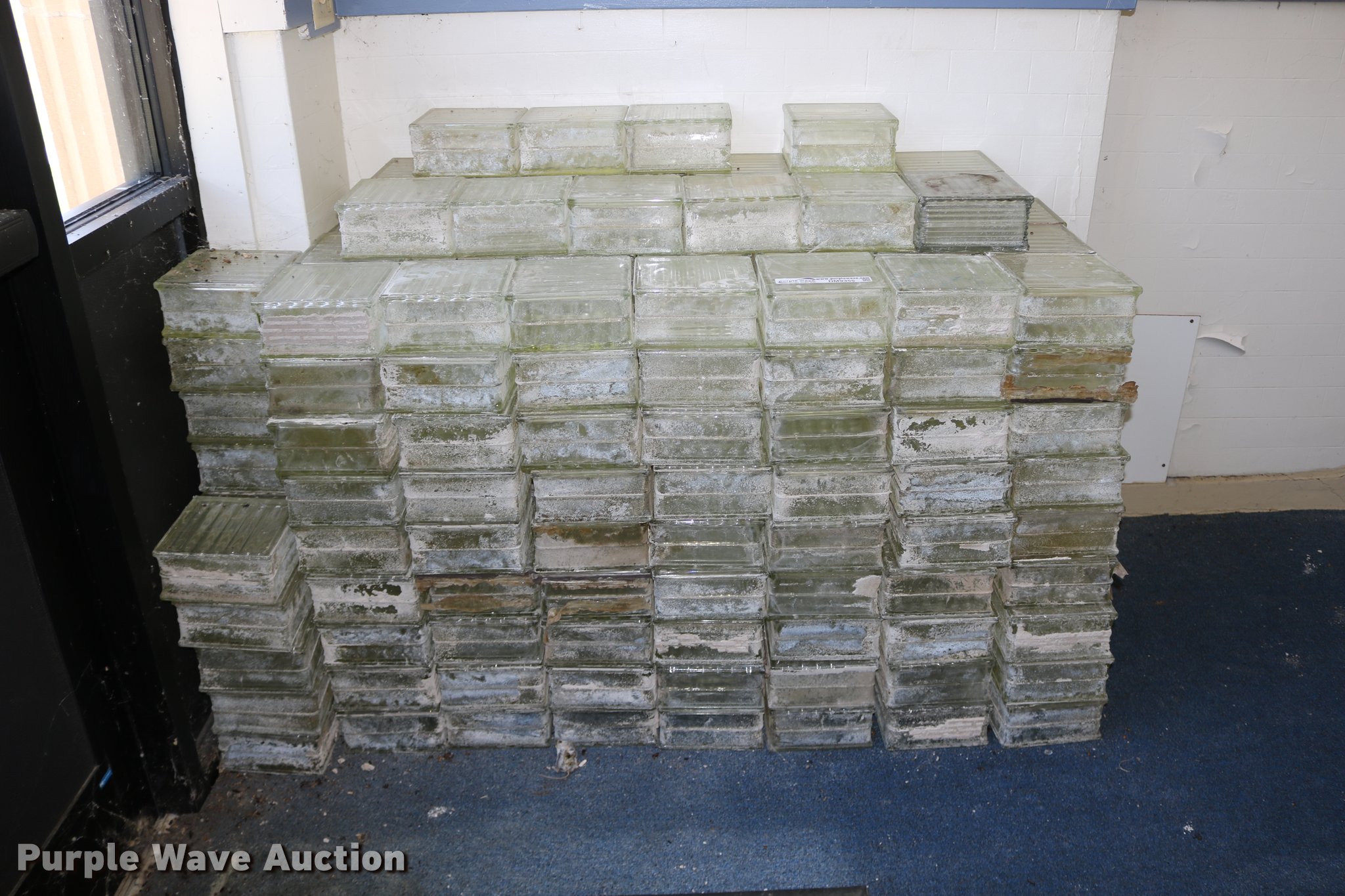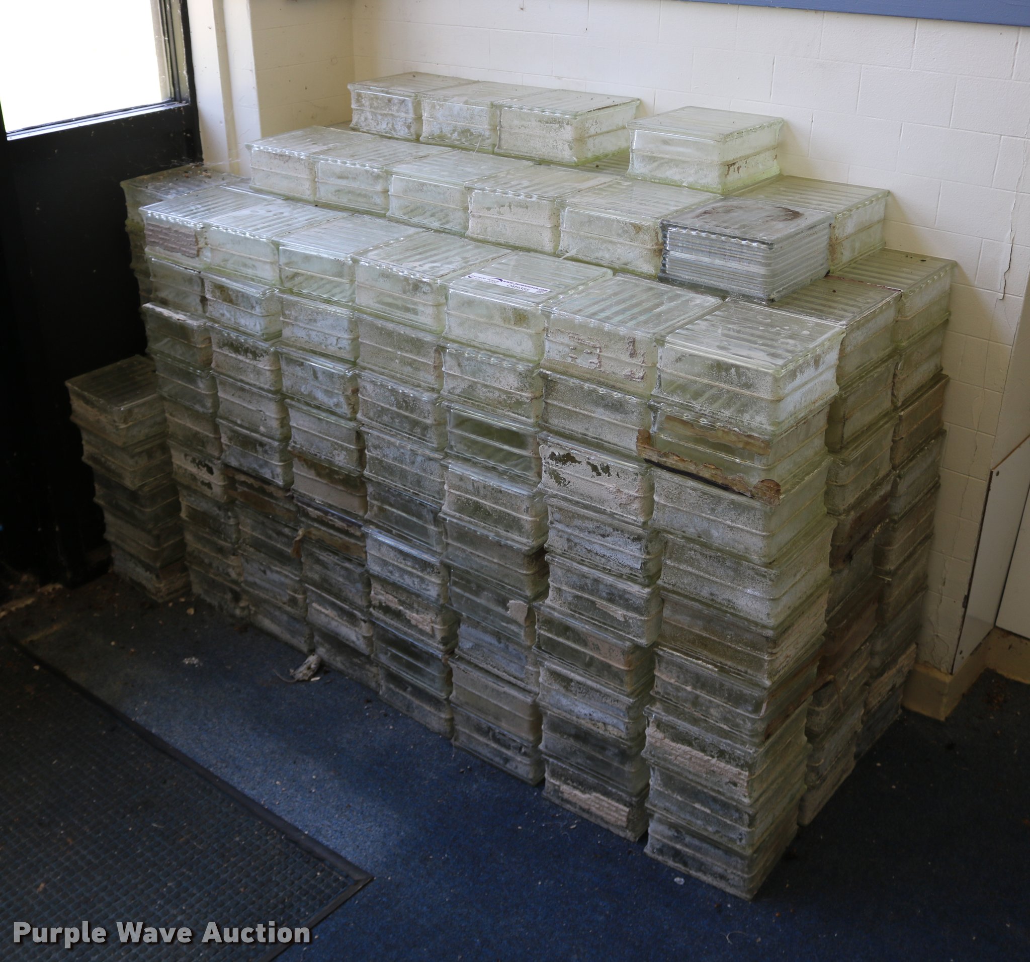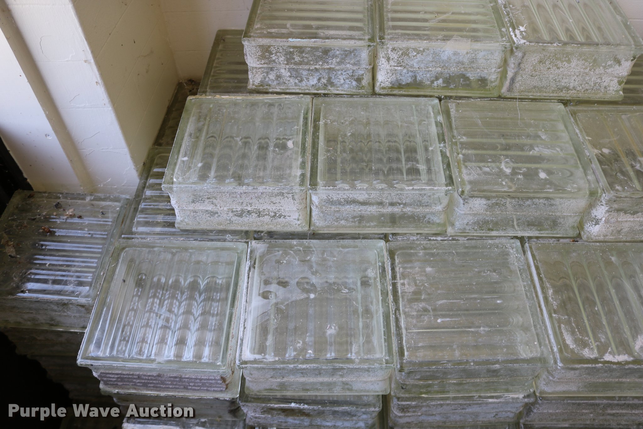 Purple Wave is selling a used Building Materials in Kansas. This item is a (215) glass blocks with the following: 7 3/4" x 7 3/4" x 3 13/16", Some may be chipped
