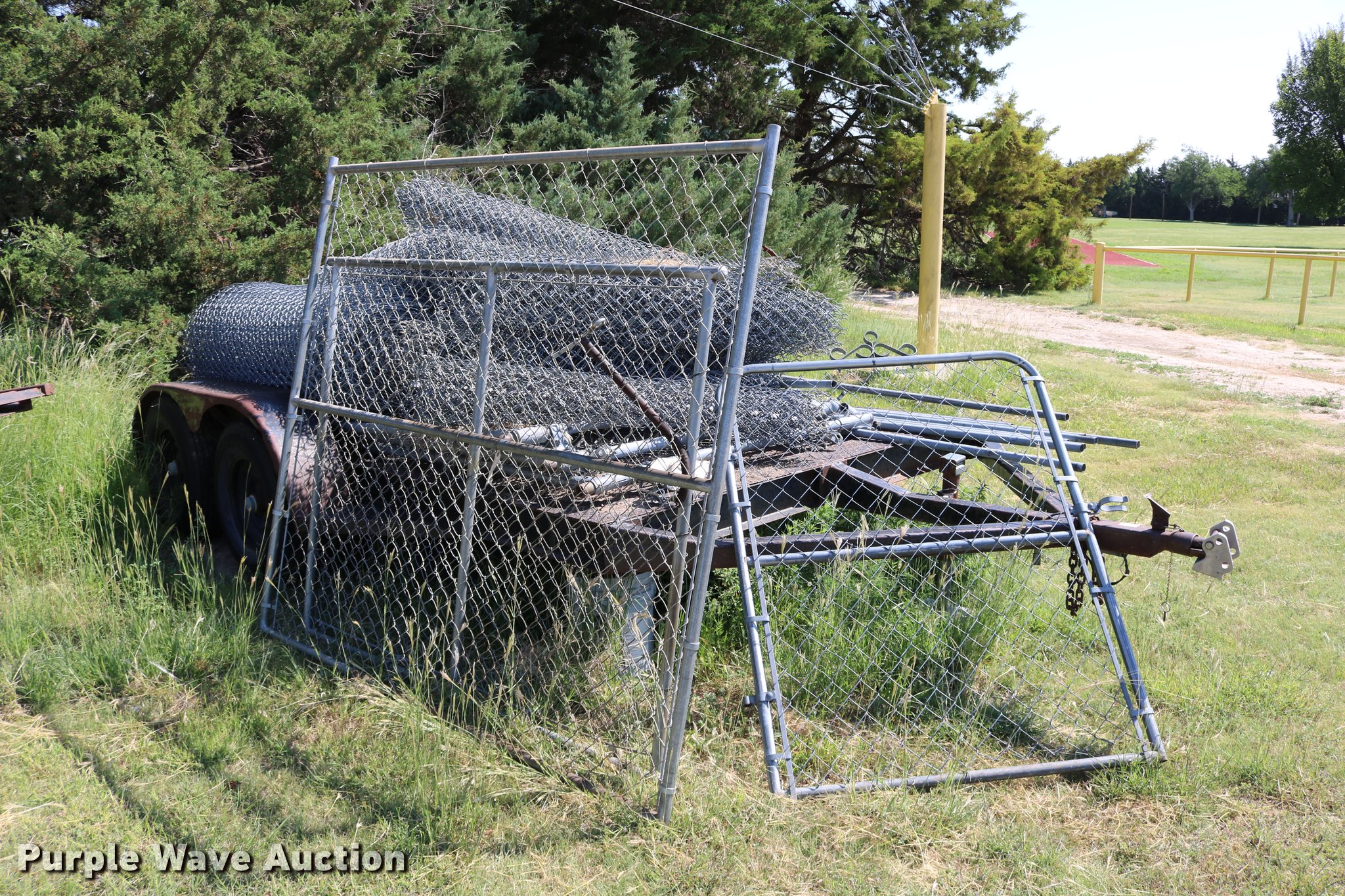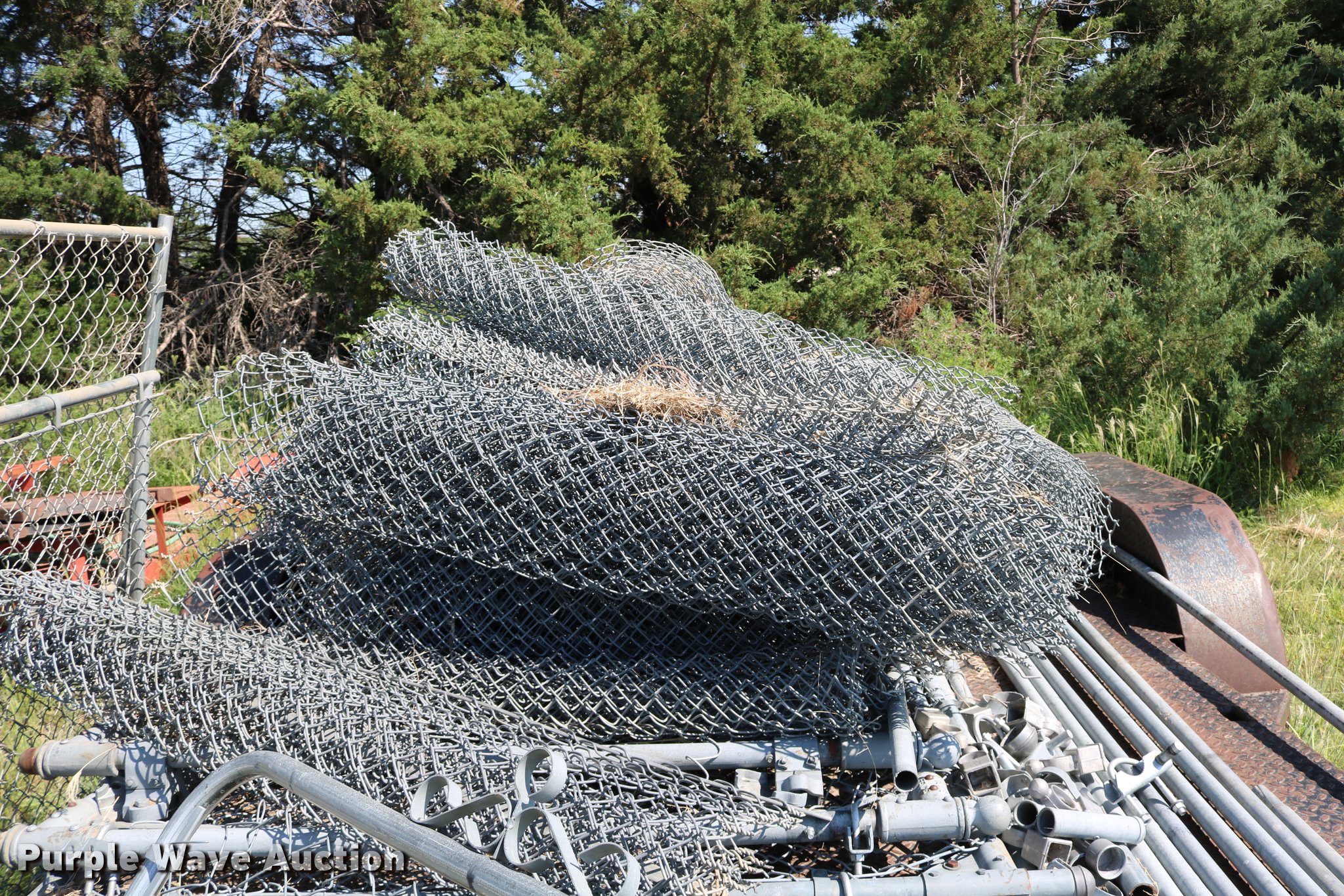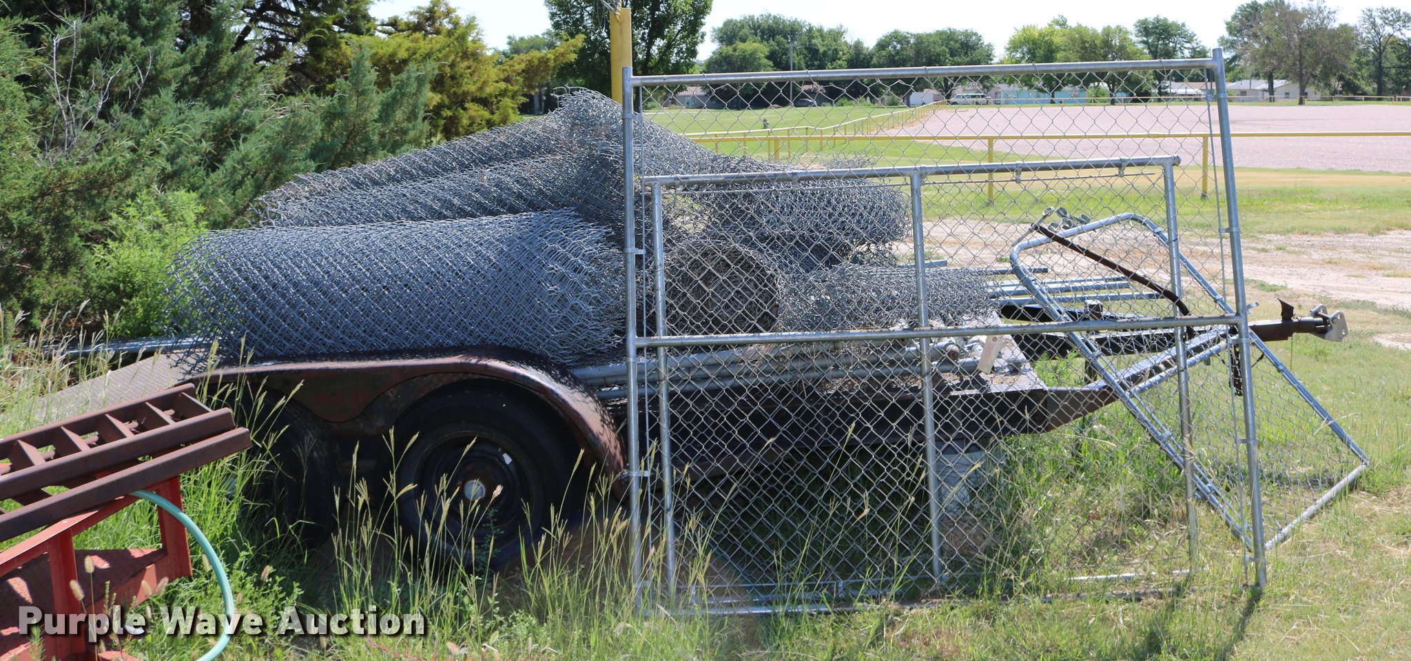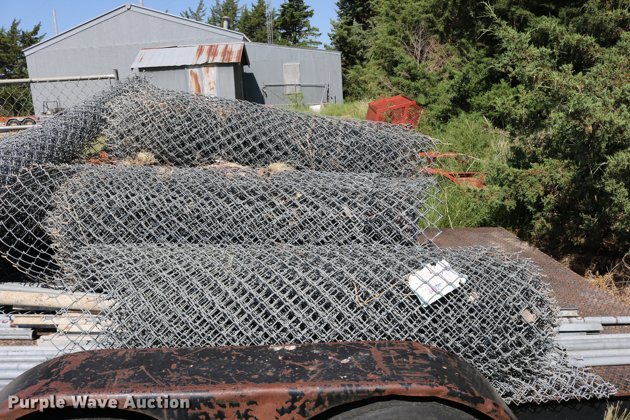 Purple Wave is selling a used Fencing Materials in Kansas. This item is a Chainlink fencing with the following: (7) gates, 5'H fence, Posts, Top rail holders, Assorted hardware, Trailer not included