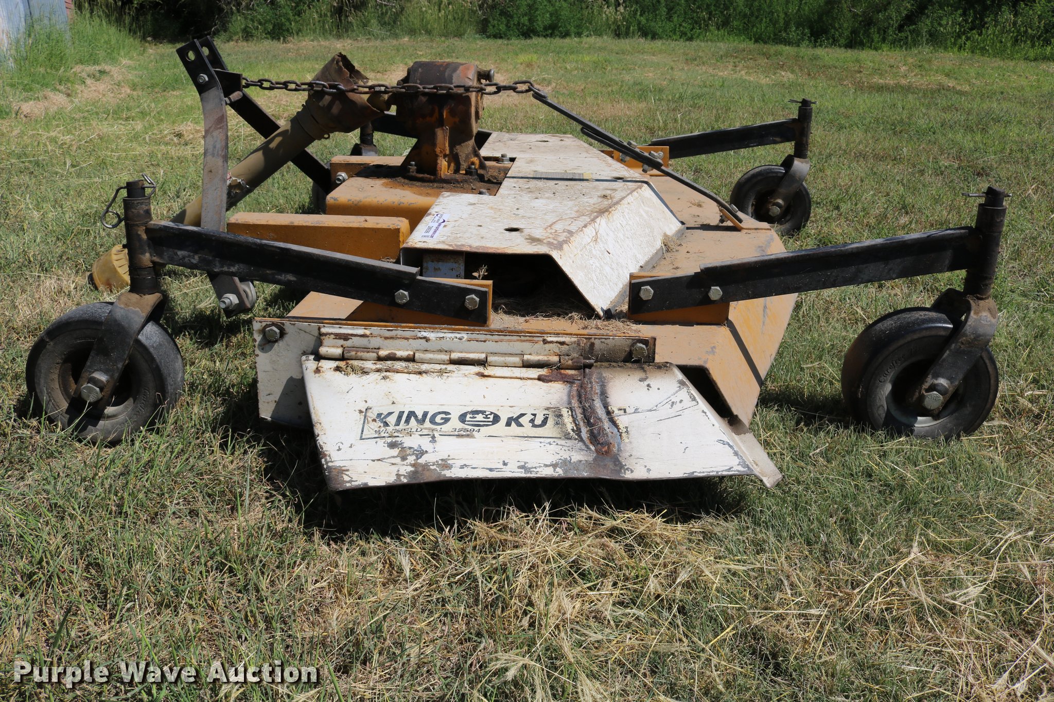 Purple Wave is selling a used Mower, Cutter, Shredder in Kansas. This item is a 1996 King Kutter FM-60 finish mower with the following: 5'W, 540 PTO, Three point, (4) 9-3.50-4 NHS solid tires, Serial 01404