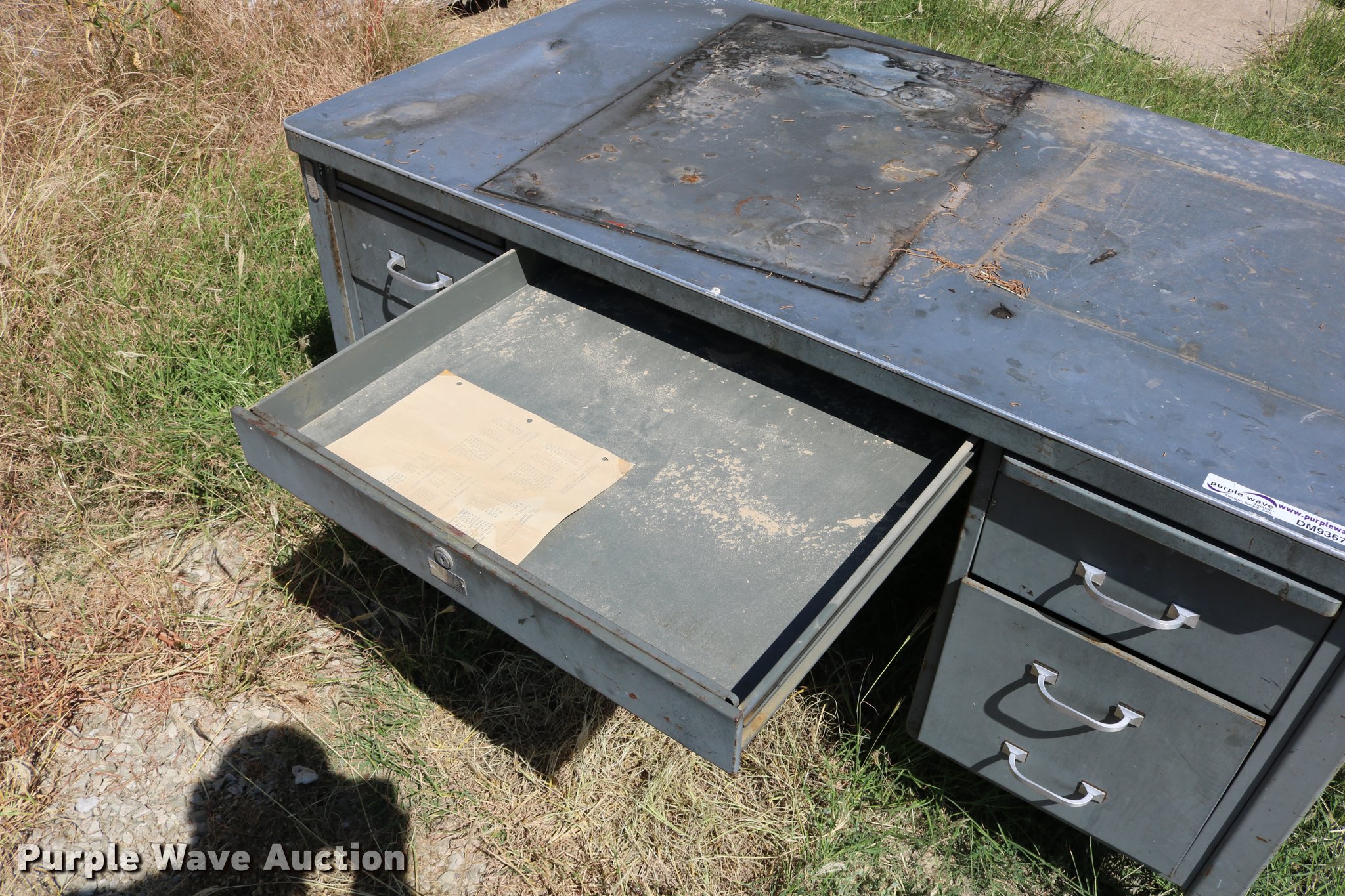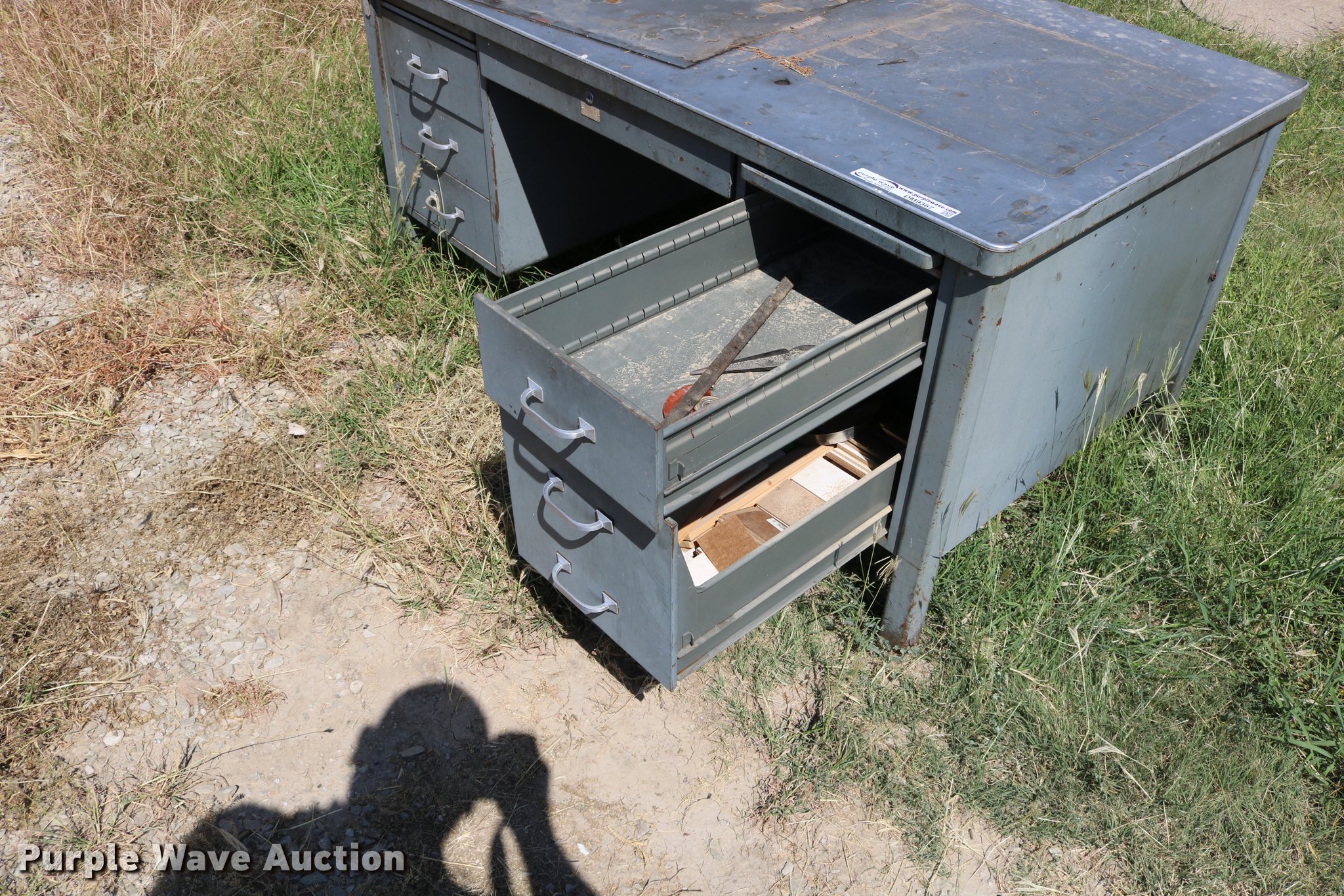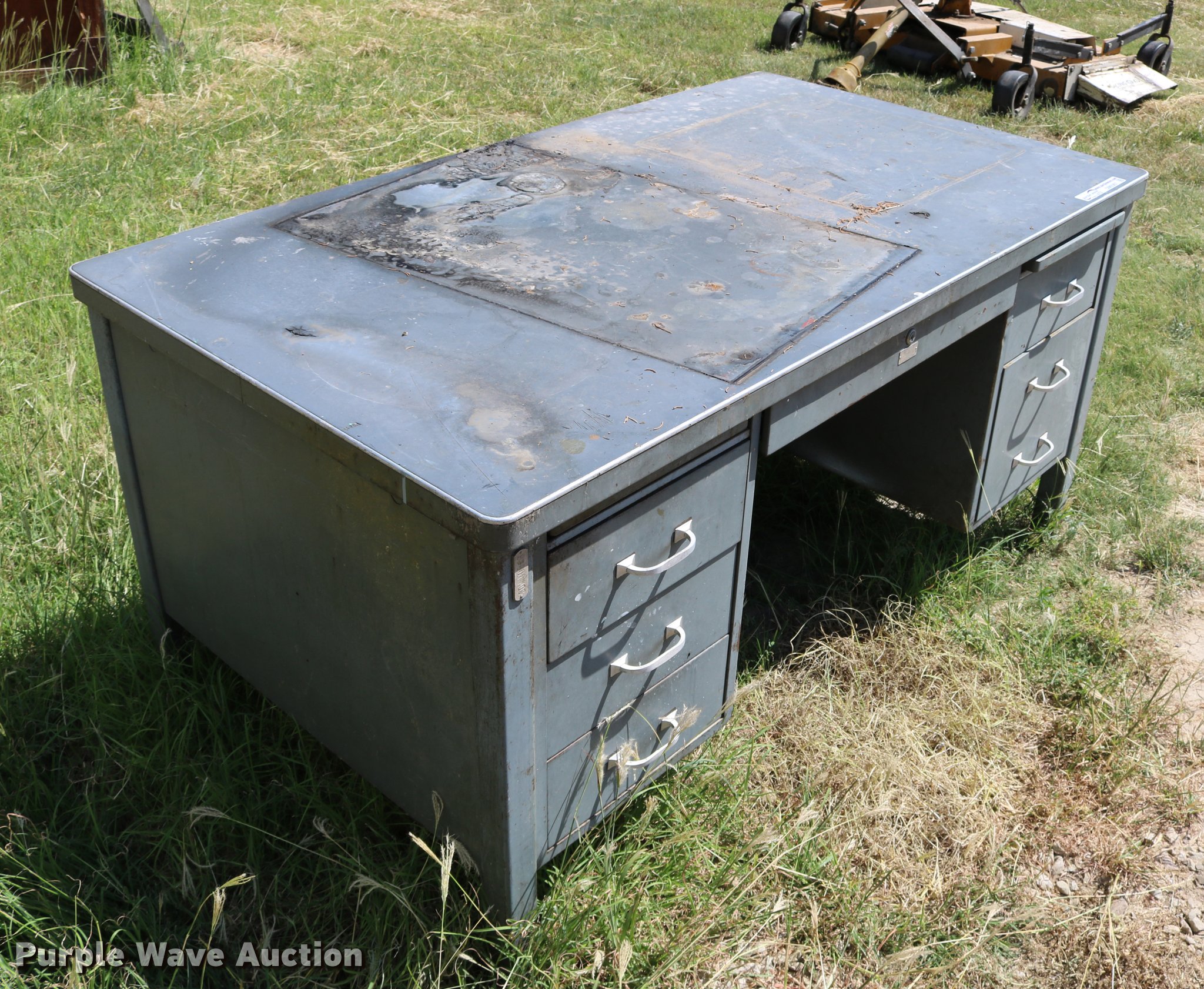 Purple Wave is selling a used Furniture in Kansas. This item is a Metal desk with the following: 34" x 60", 30"H, Six drawer
