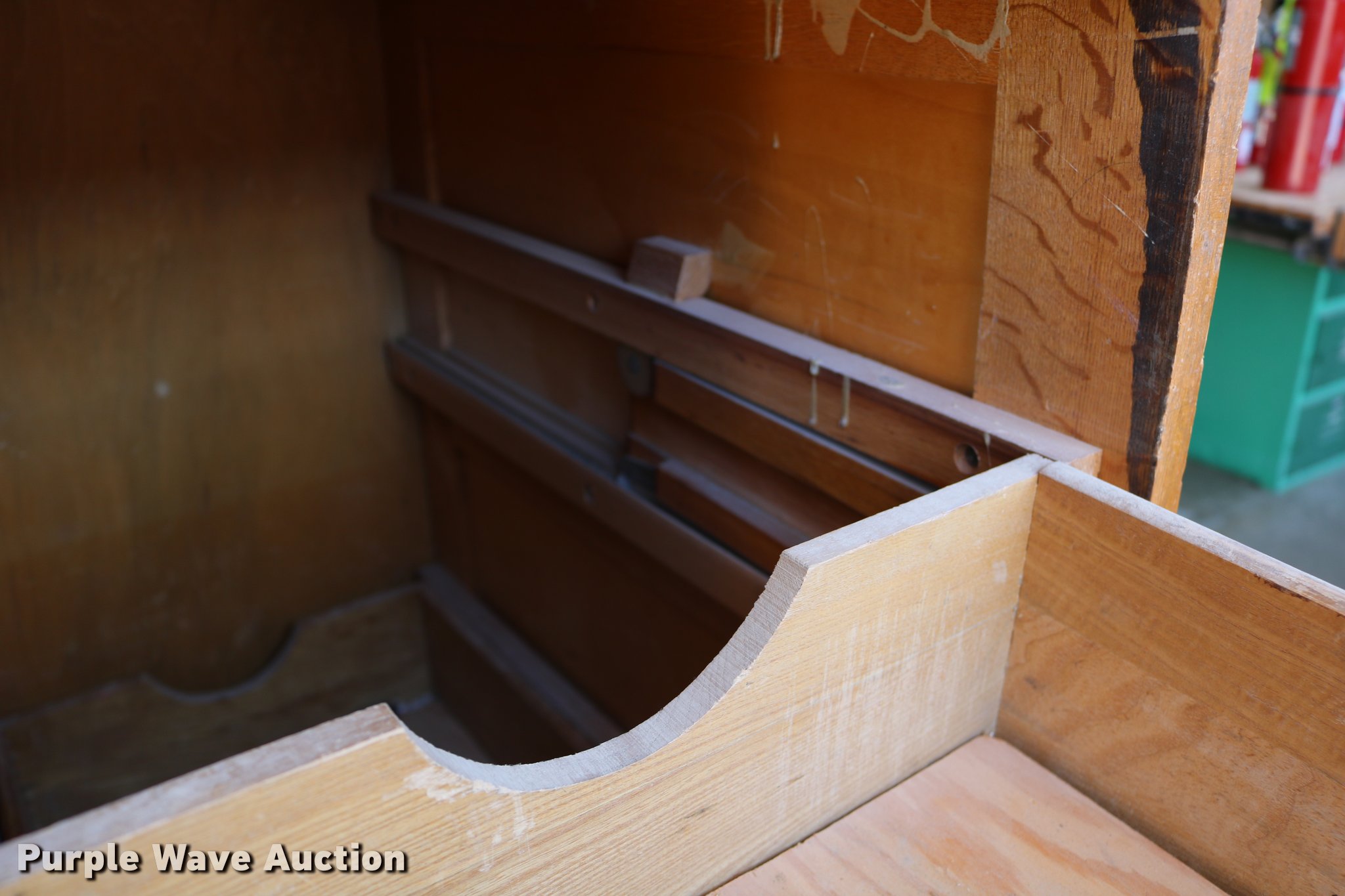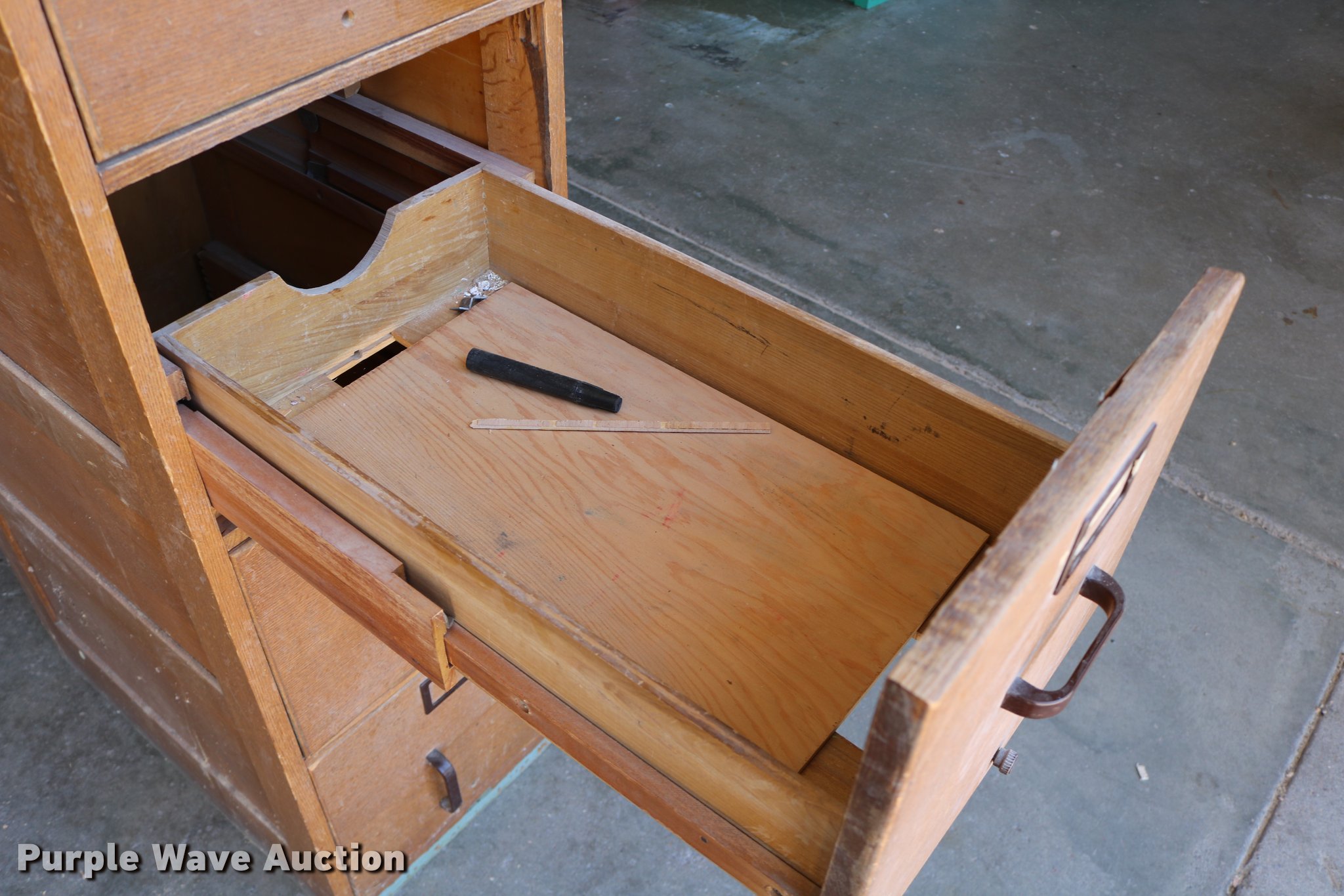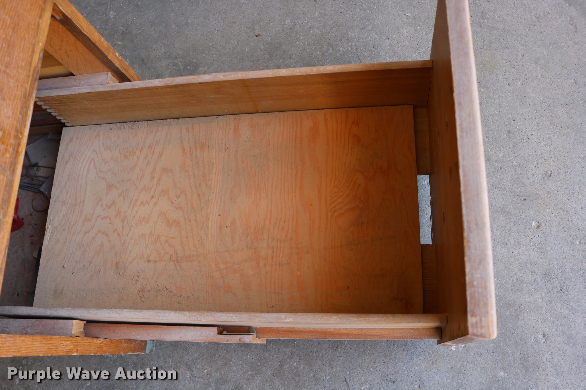 Purple Wave is selling a used Office Supplies and Equip. in Kansas. This item is a Glode Wernicke four drawer wood filing cabinet with the following: 16"W x 25"D x 52.5"H