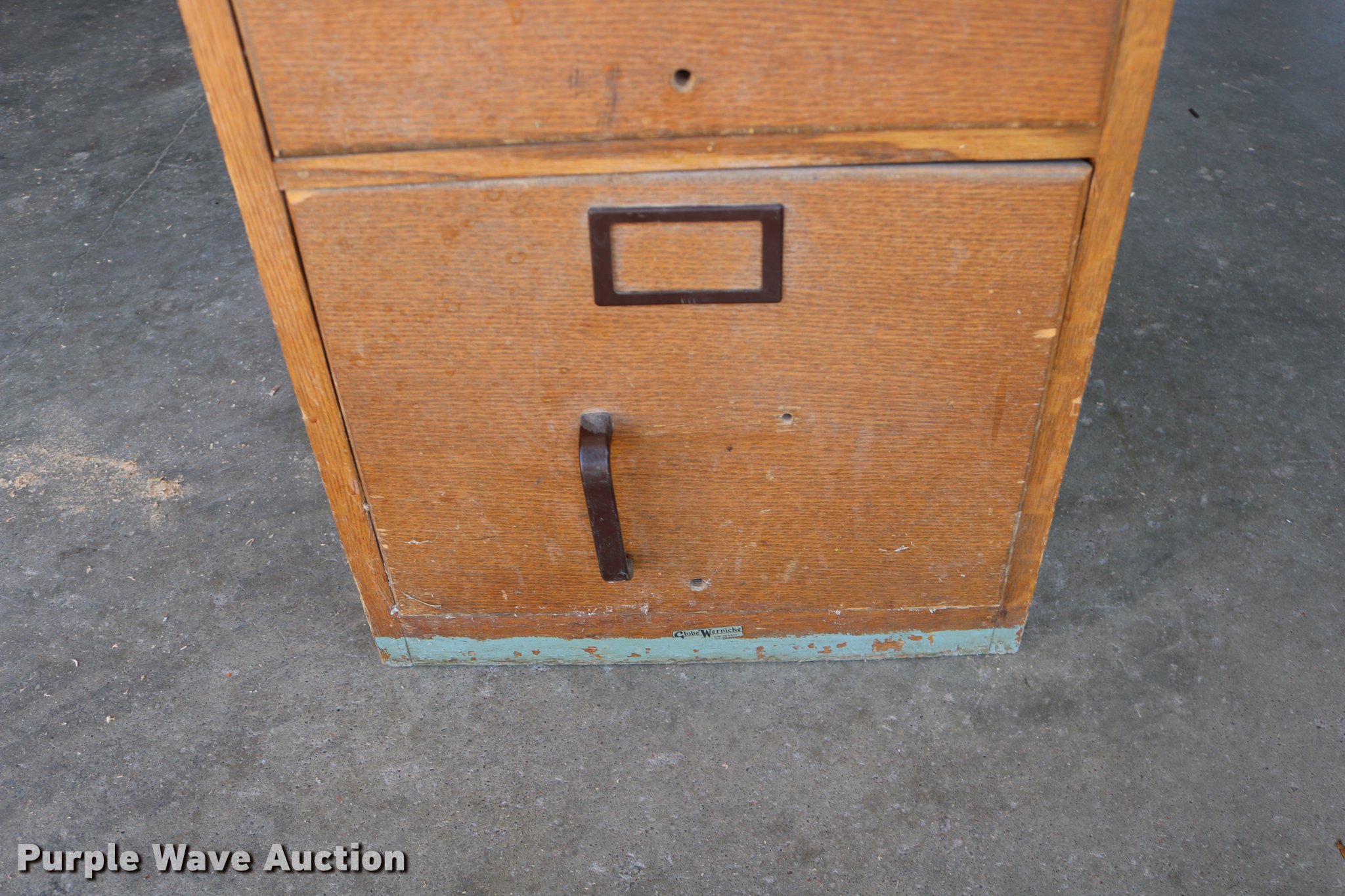 Glode Wernicke four drawer wood filing cabinet. 16"W x 25"D x 52.5"H. USD 281. 101 W Main St. Hill City, KS 67642