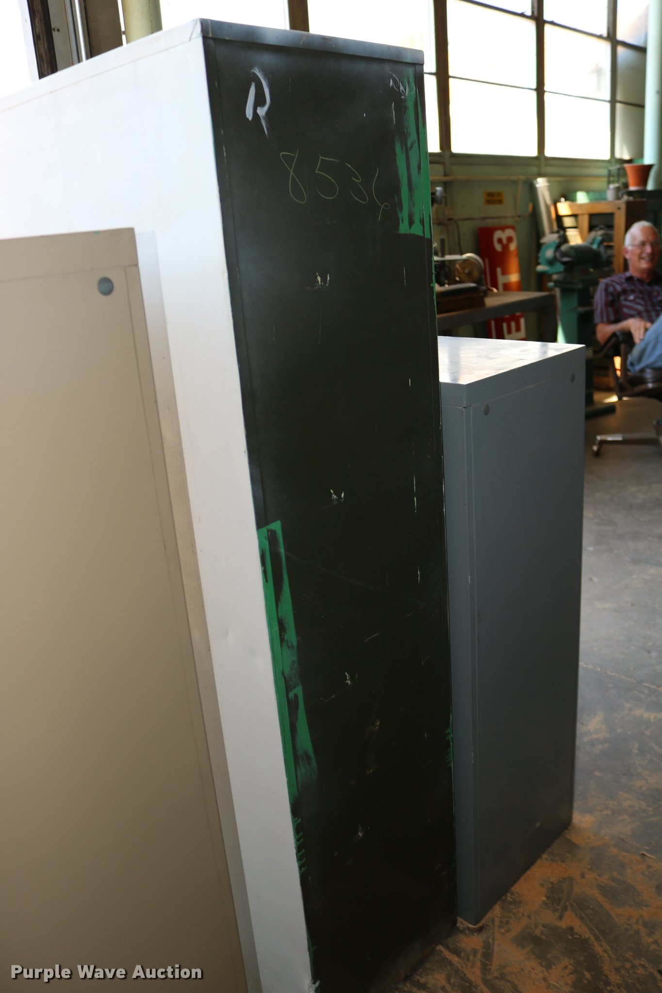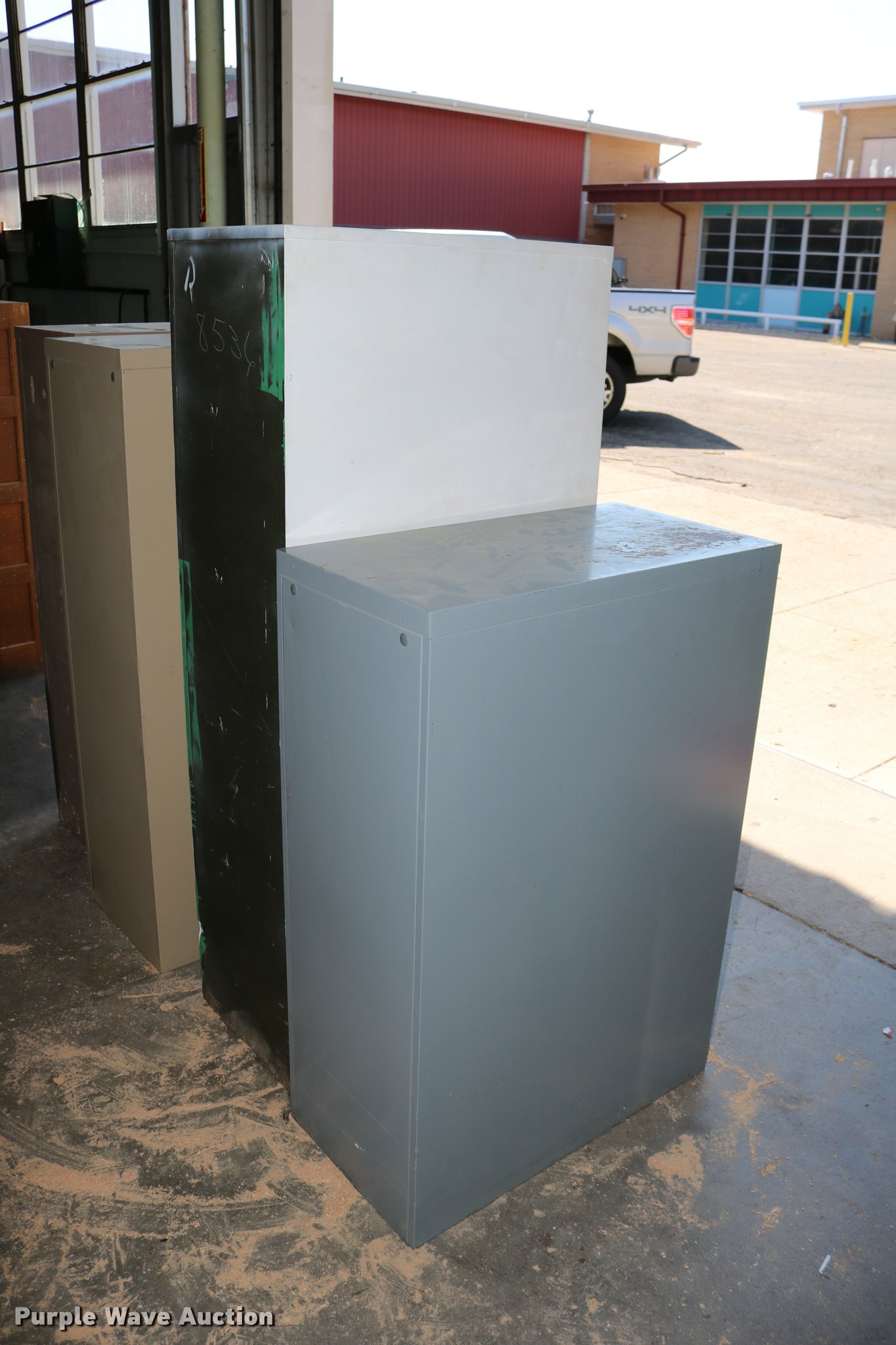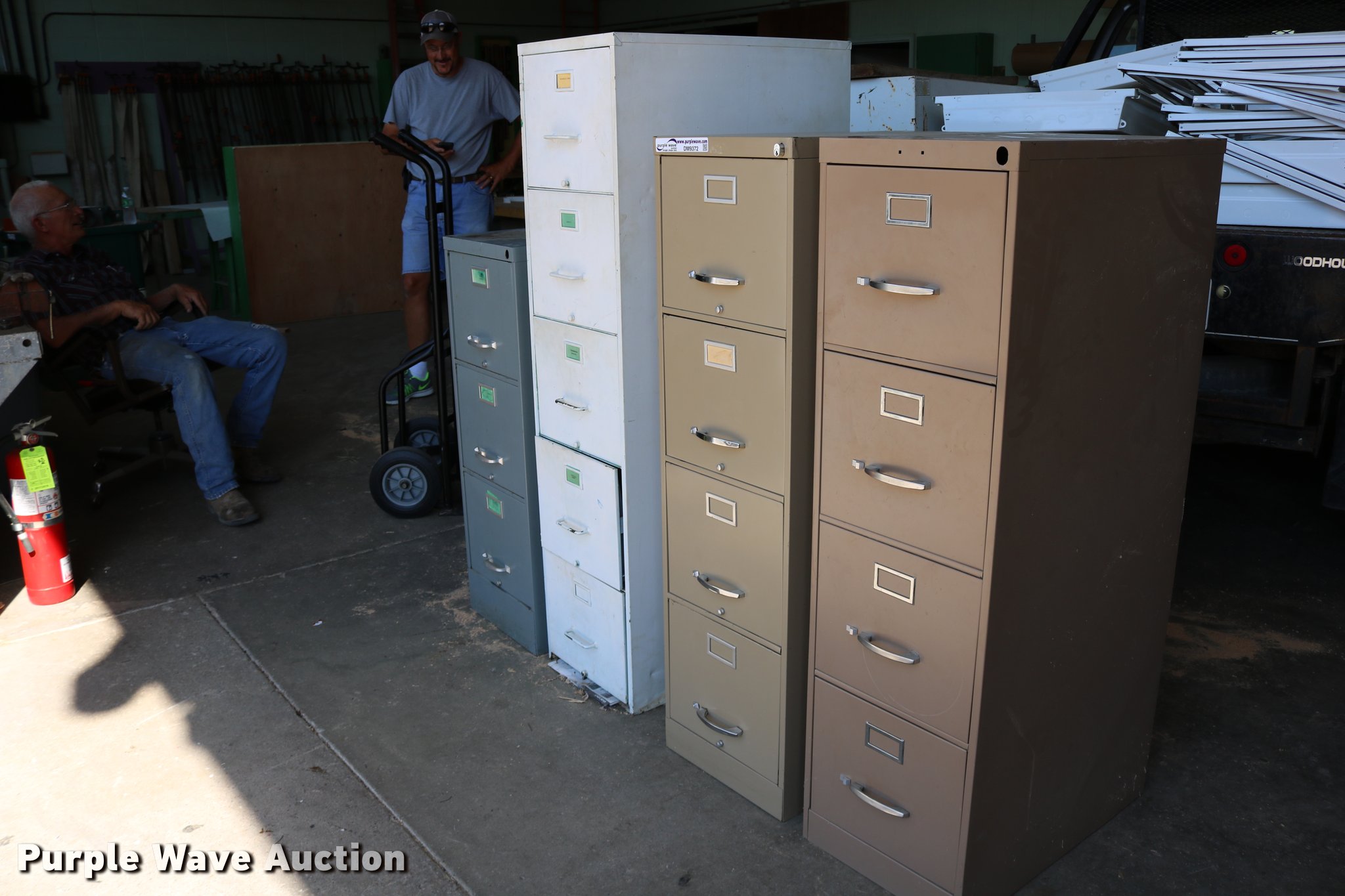 Purple Wave is selling a used Office Supplies and Equip. in Kansas. This item is a (4) metal file cabinets with the following: One cabinet locked, No keys